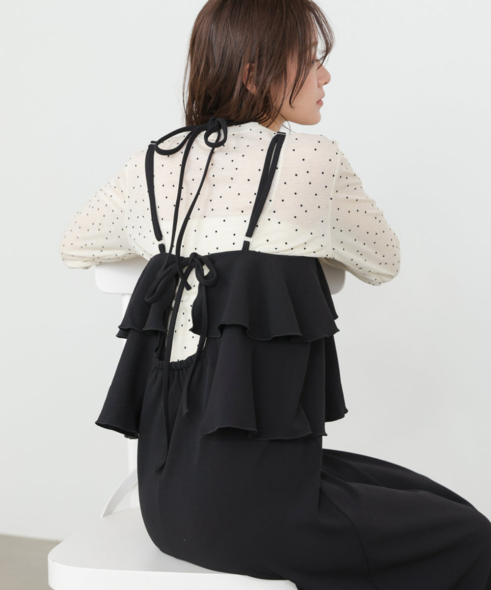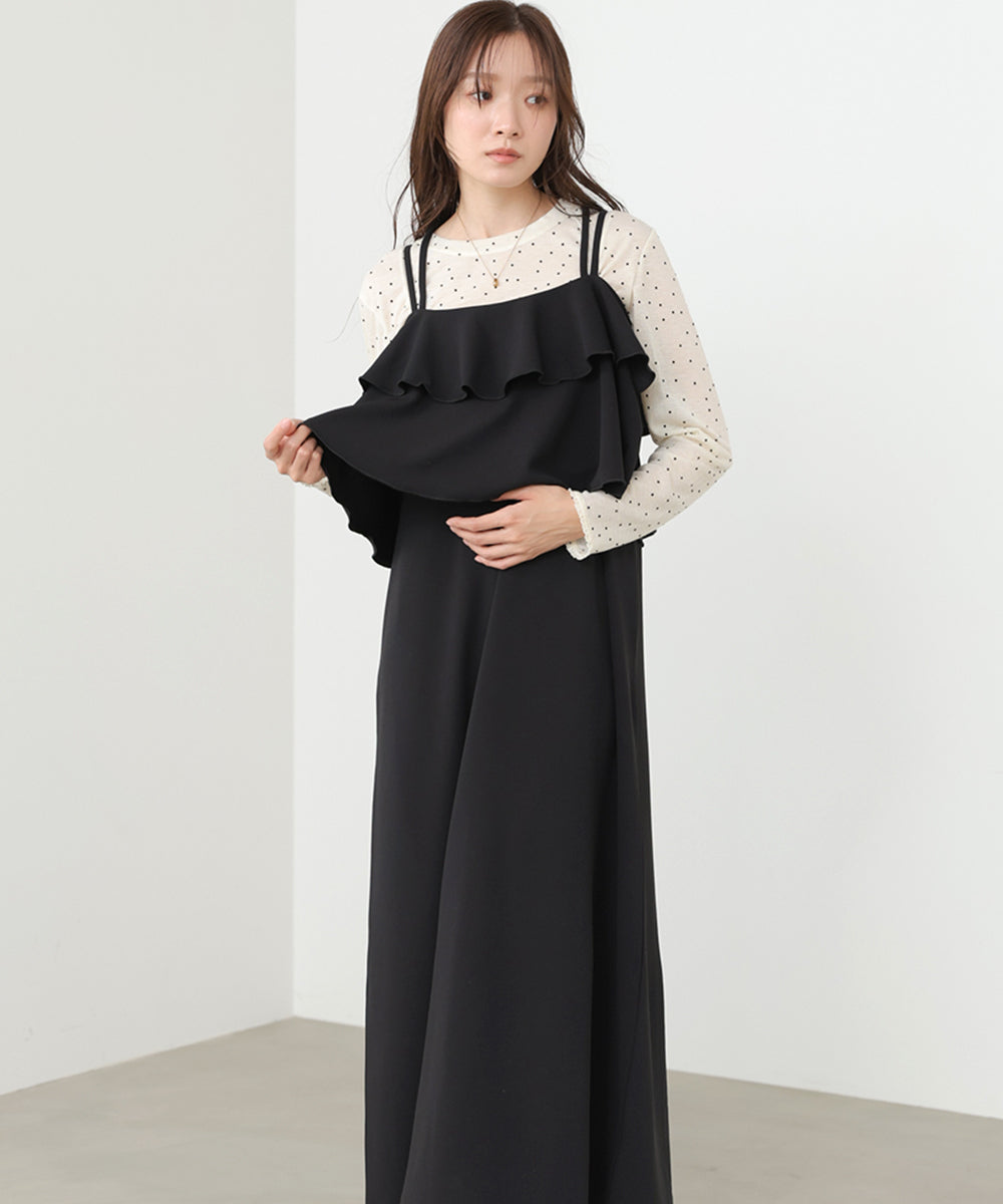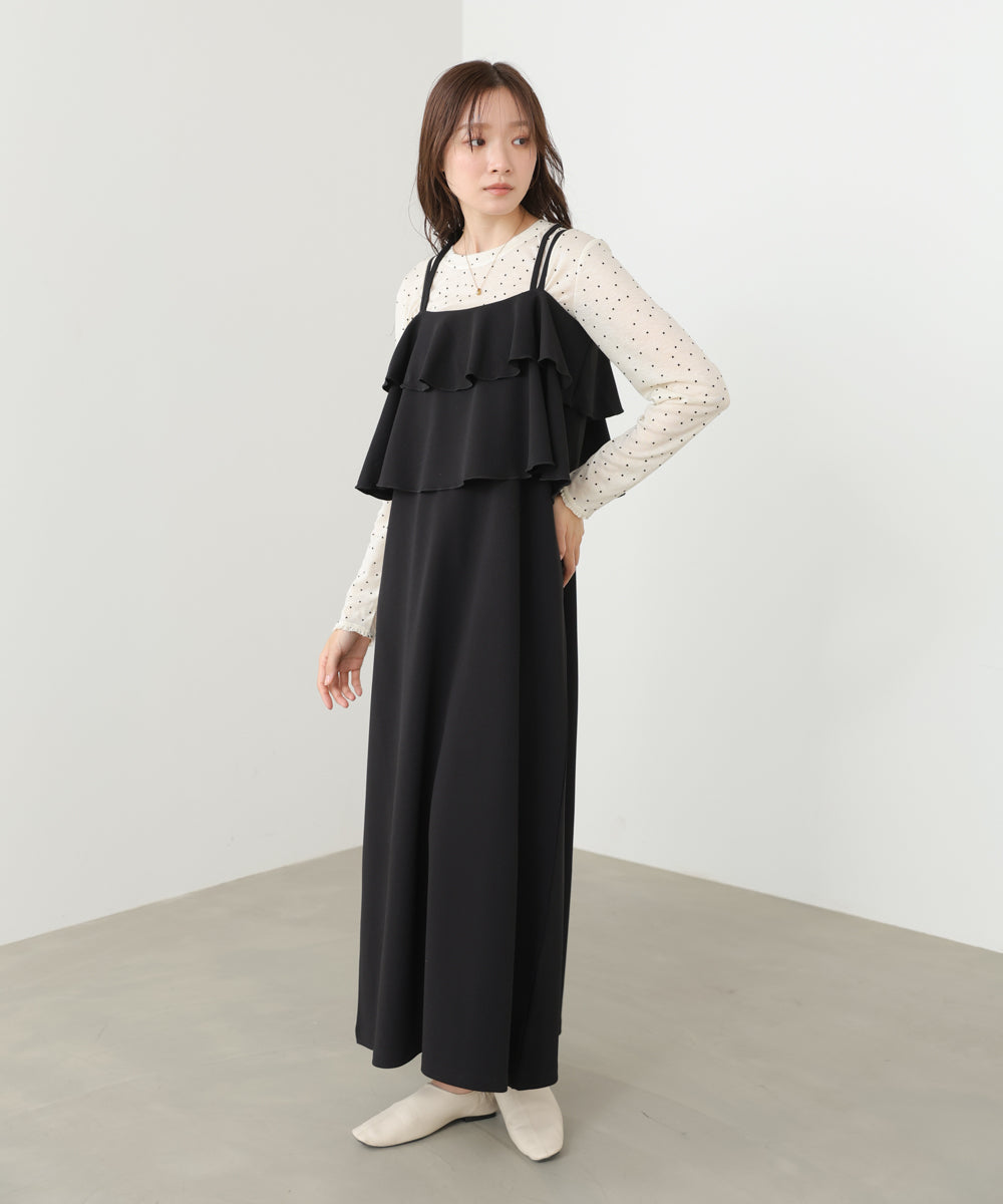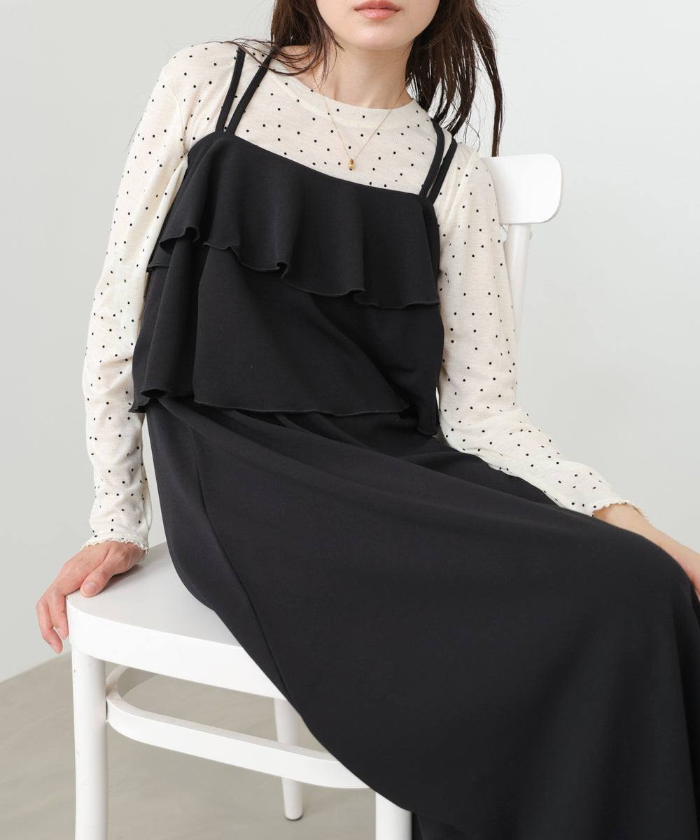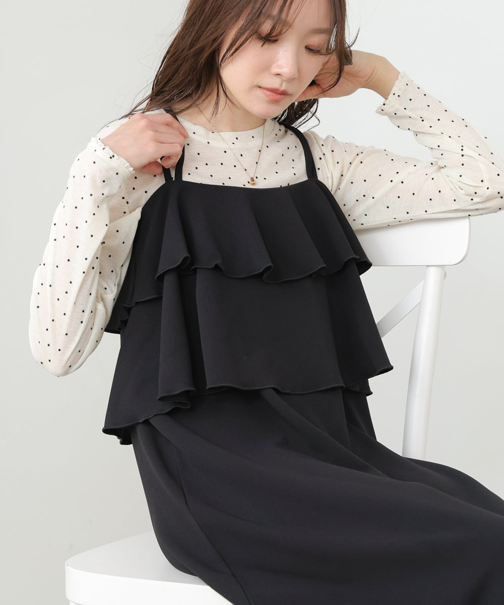 【選べるサイズ/イージーケア】ティアードキャミワンピース【イージージョーゼットシリーズ】