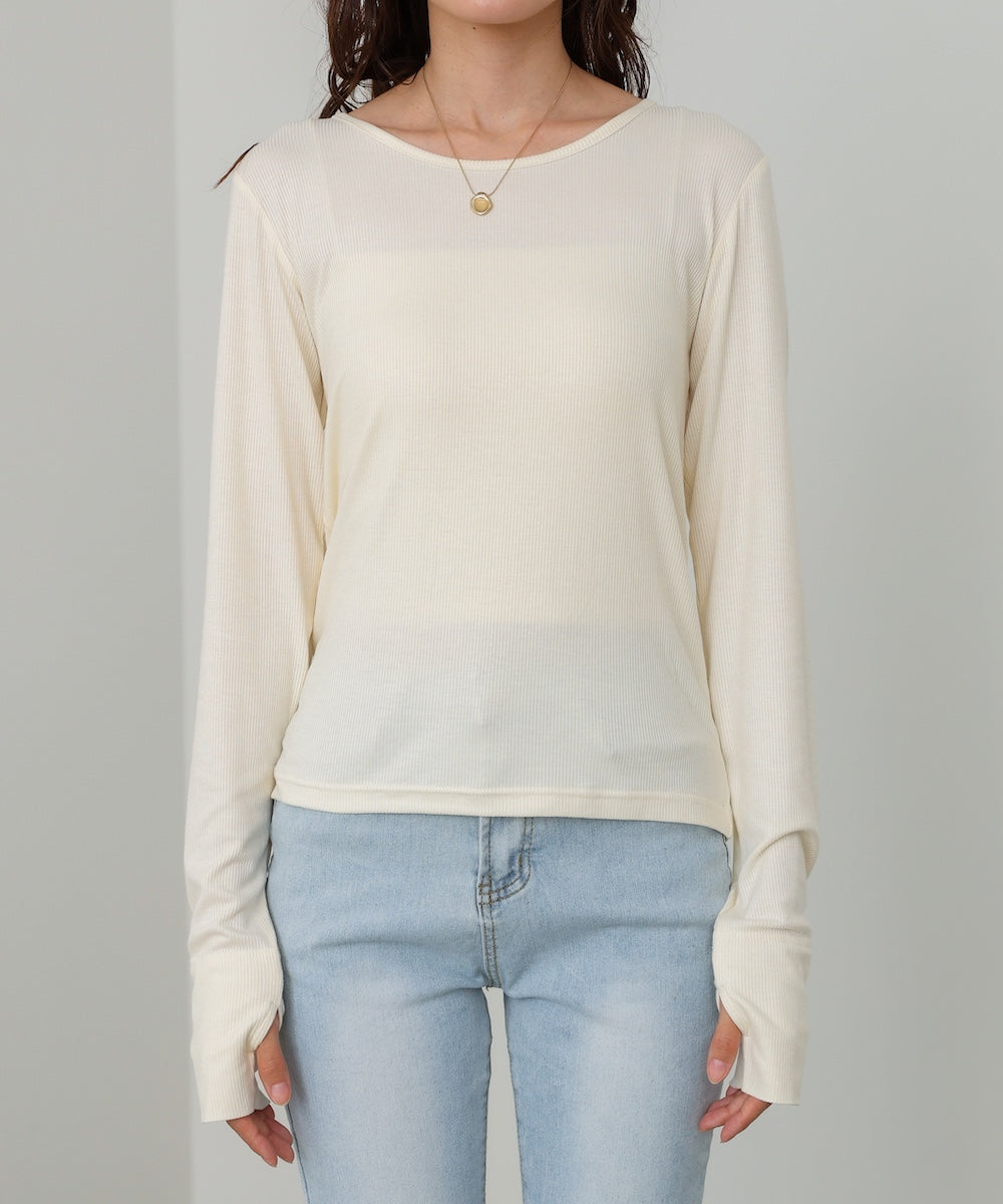 【2026SS】袖配色クルーネックリブニットトップス