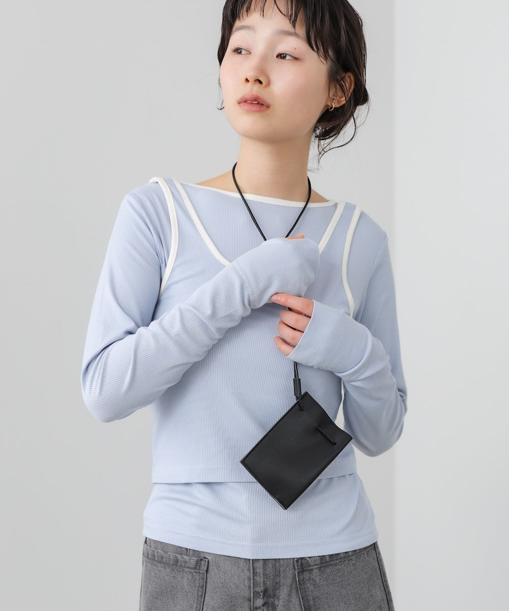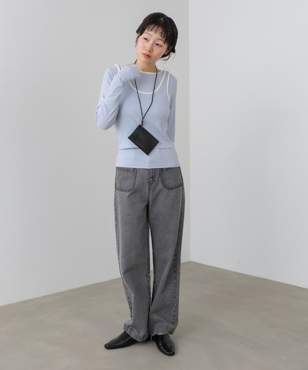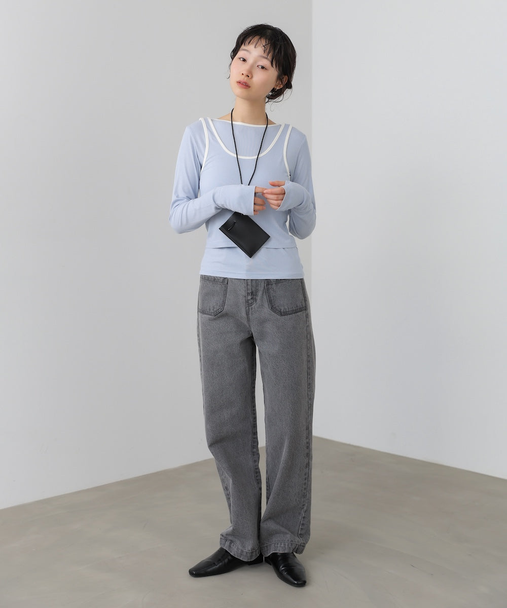 配色パイピングがさりげなく映える、レイヤードが完成するトップス&タンクのSET。シンプルながらも、首元やラインにメリハリがあり、着るだけでこなれた印象に。インナーにはサムホールがついています。タンクトップはボタン付きで長さ調節ができるため、インナーの見せ方を気分やコーデに合わせてアレンジ可能です。裾部分にはギャザーが入っていてこなれ感を演出します。アイボリー・チャコール・ブルーそれぞれに、白の配色が映え、程よく抜け感のある大人カジュアルな雰囲気を楽しめます。