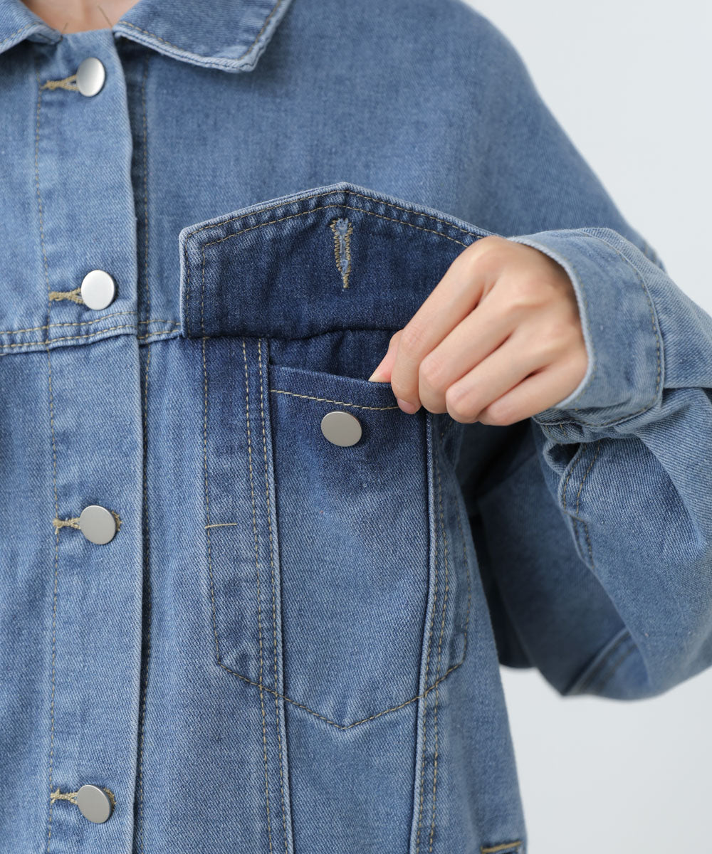 Babから大人の抜け感漂うリラックスシルエットのデニムジャケットが新登場!ざっくり羽織れるサイズ感でインナーを選ばない優秀な1枚です。ベーシックで飽きがこず、ライナーなどが付いていない分シーズンレスでお召し頂けるのも魅力的。フロントボタンを閉めて頂くと、ビッグシルエットのデニムシャツのようにお召し頂け マニッシュな着こなしに。定番で万能に合わせやすいインディゴと、ケミカル加工を施したこなれ感たっぷりのブルーの2カラーをご用意いたしました。