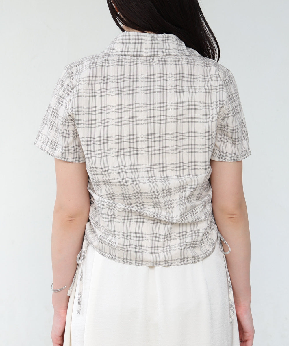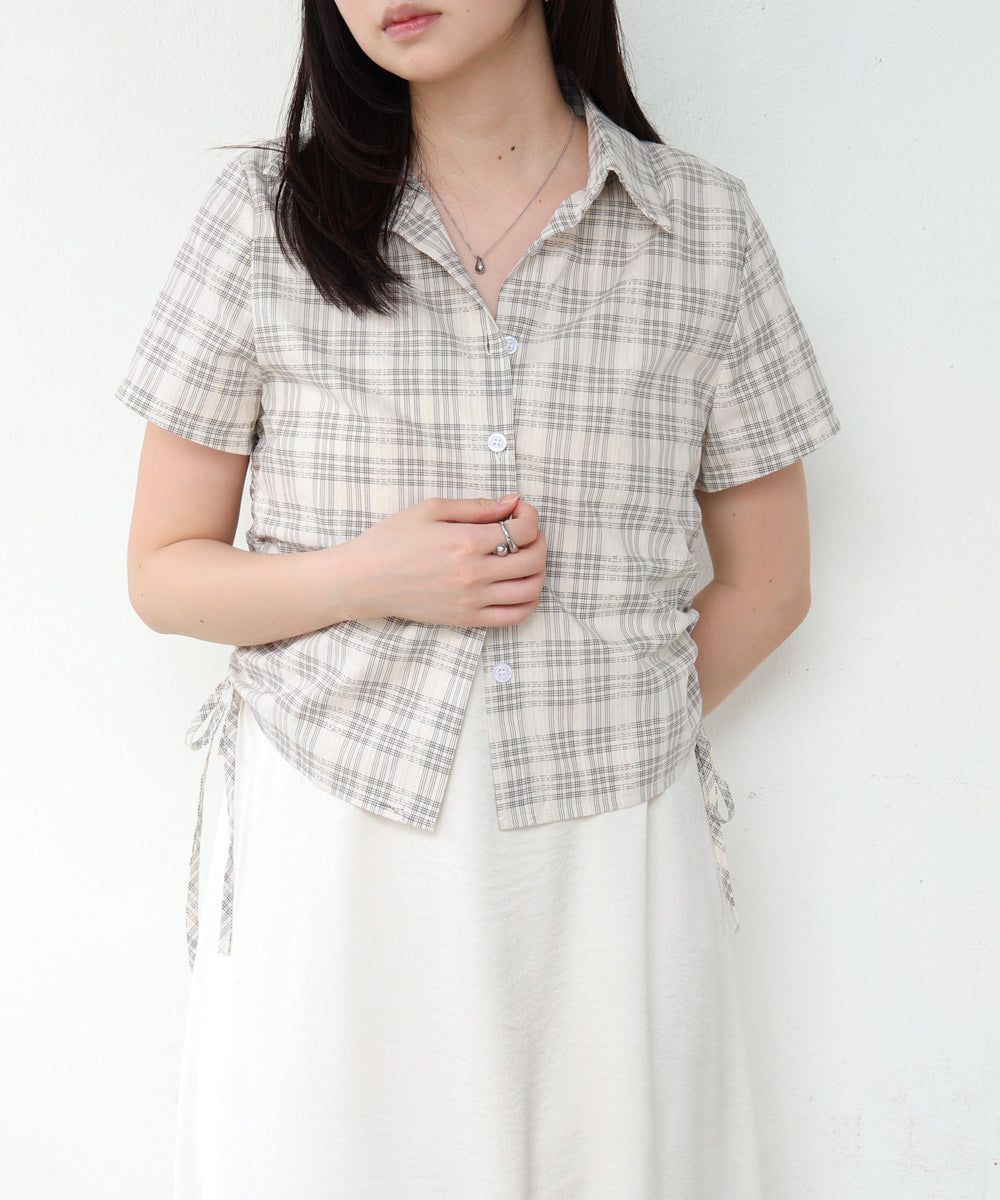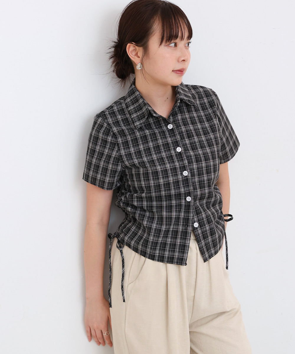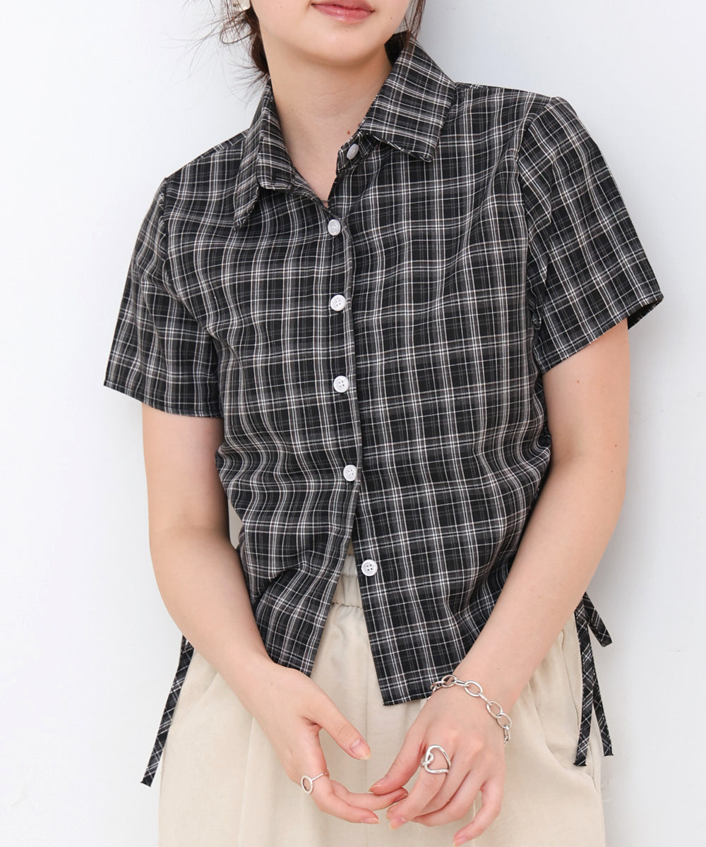 サイドリボンアソートチェックブラウス