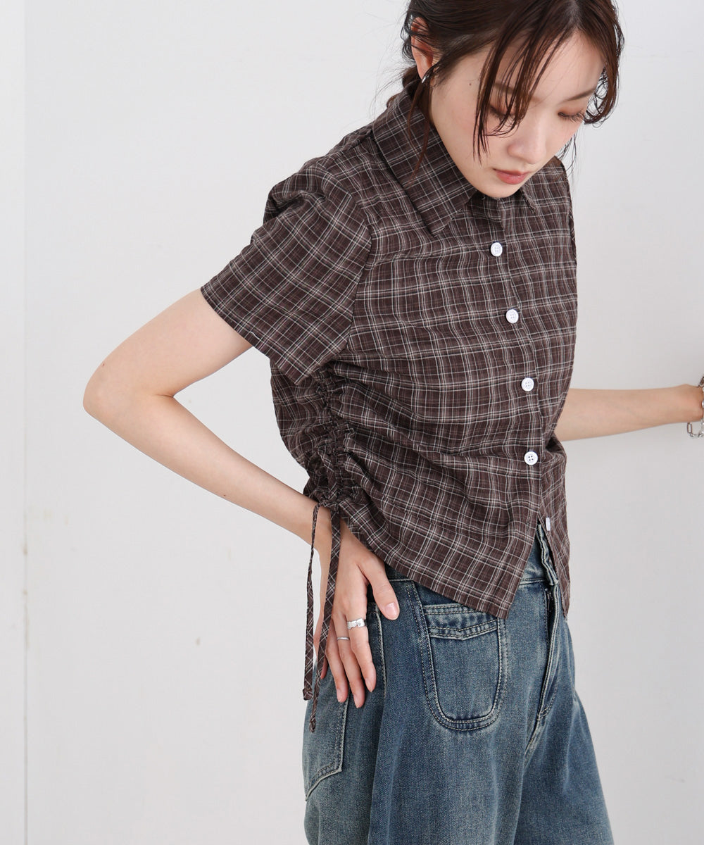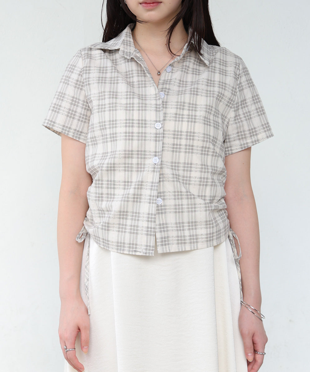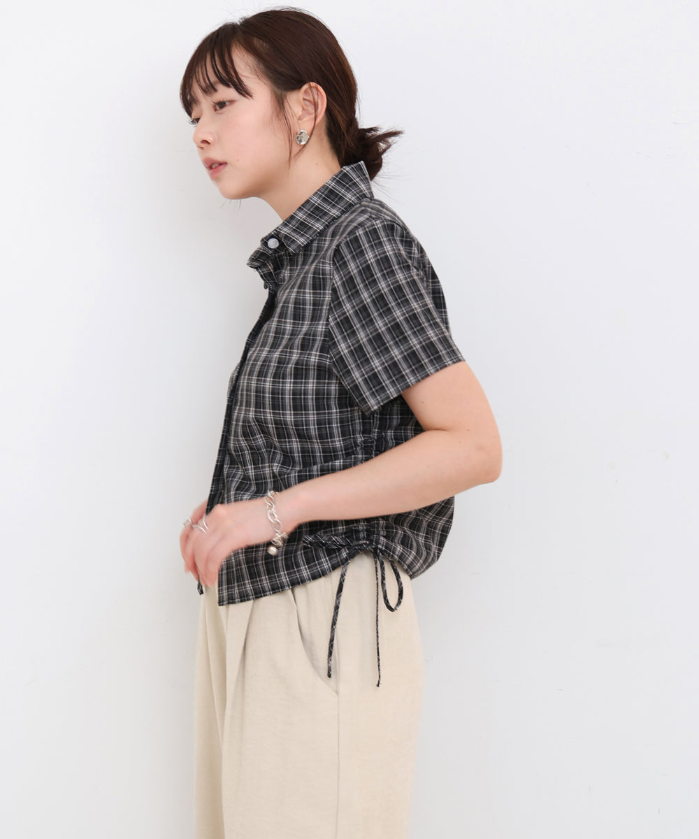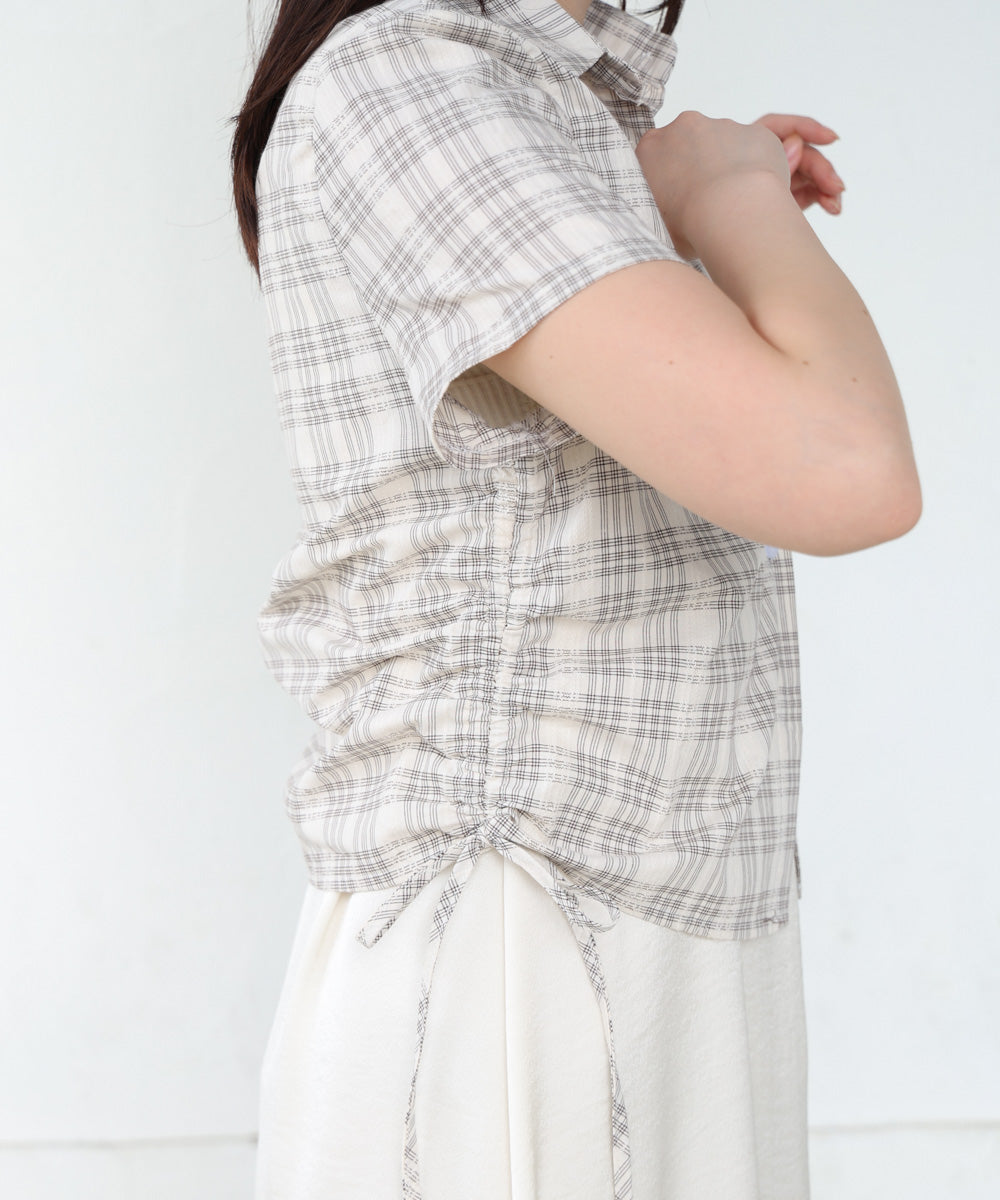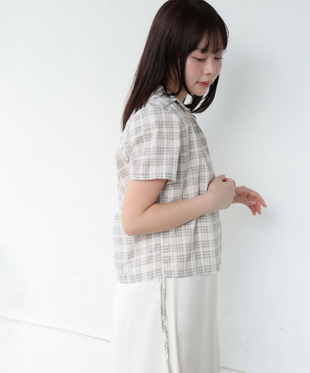 サイドリボンアソートチェックブラウス