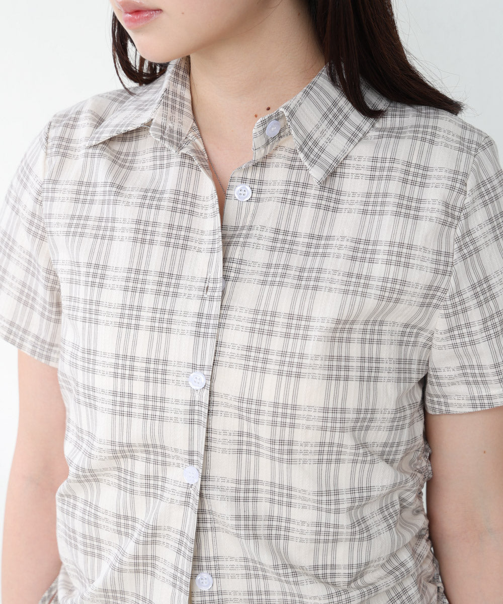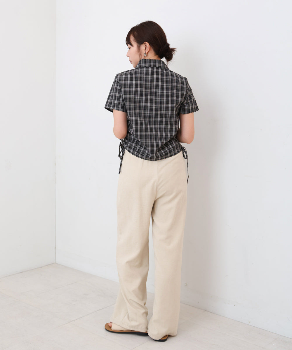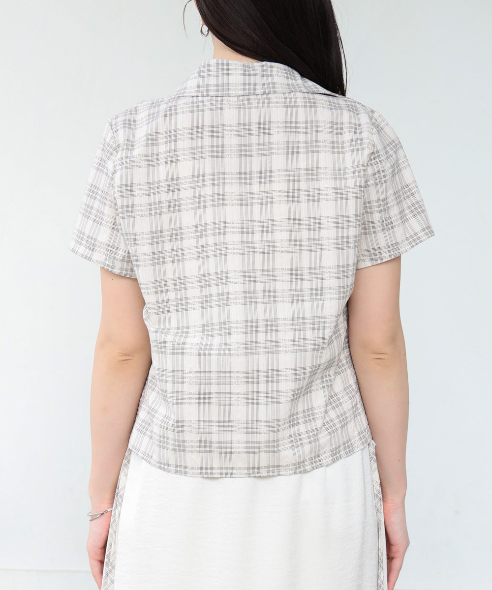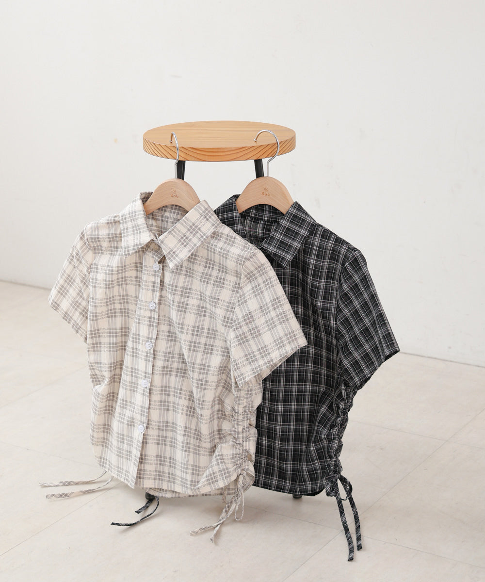 サイドリボンアソートチェックブラウス