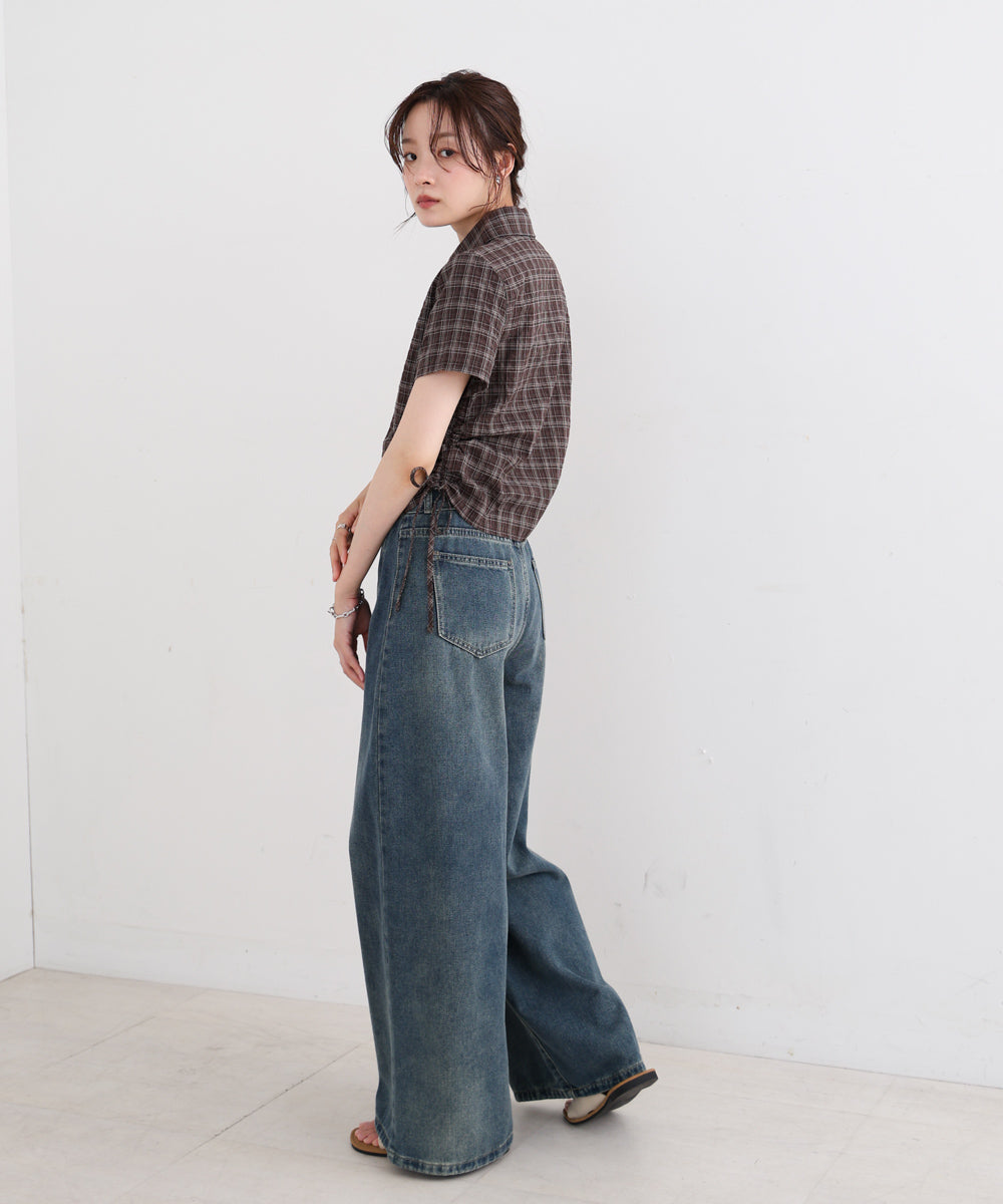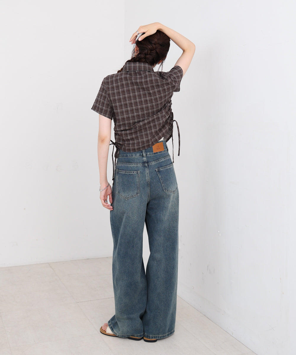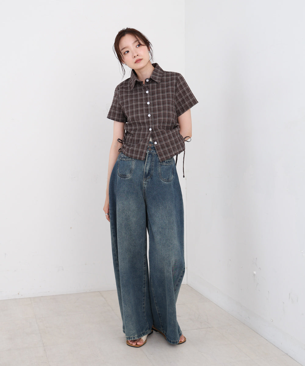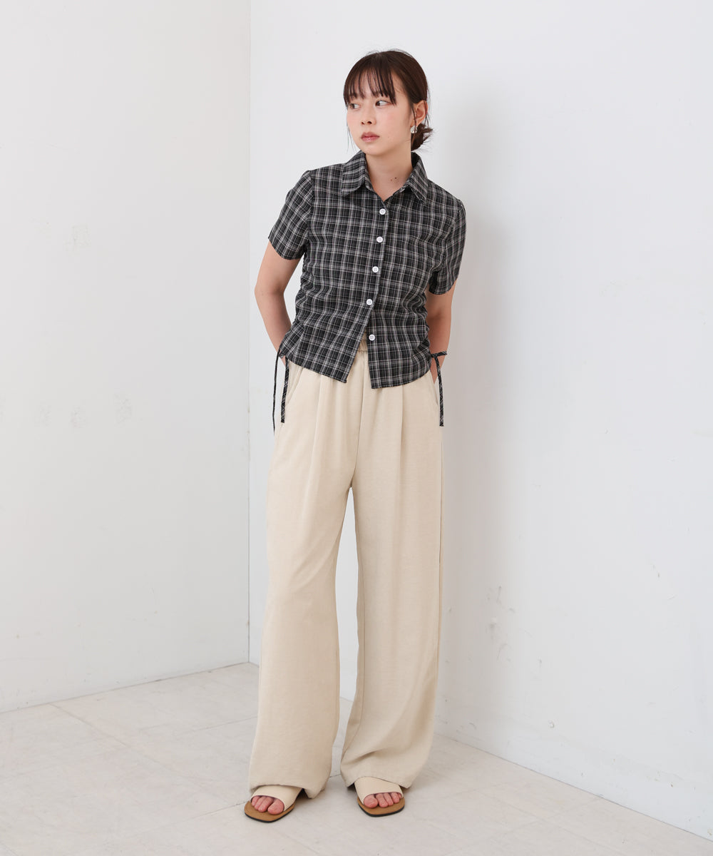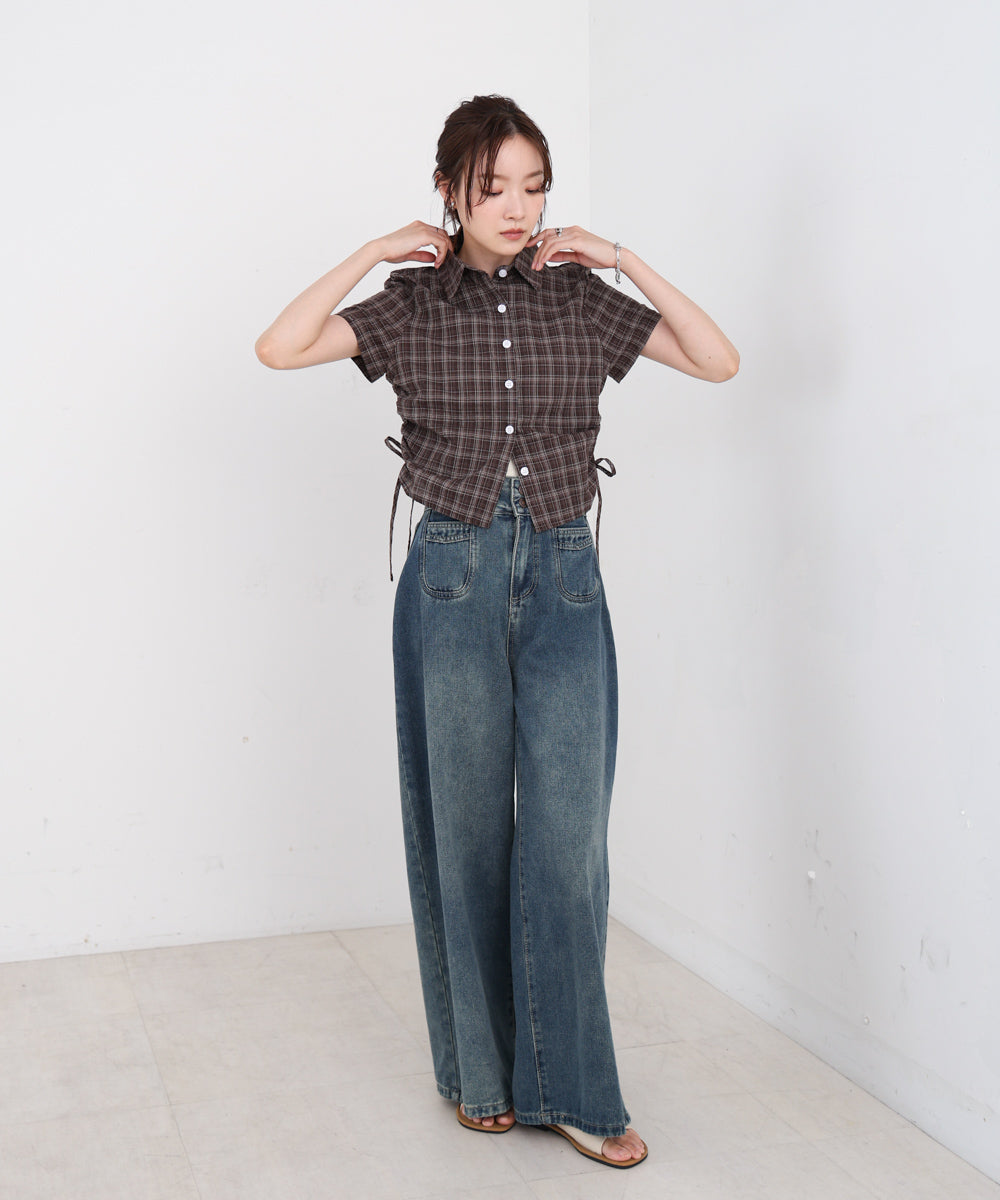 サイドリボンアソートチェックブラウス