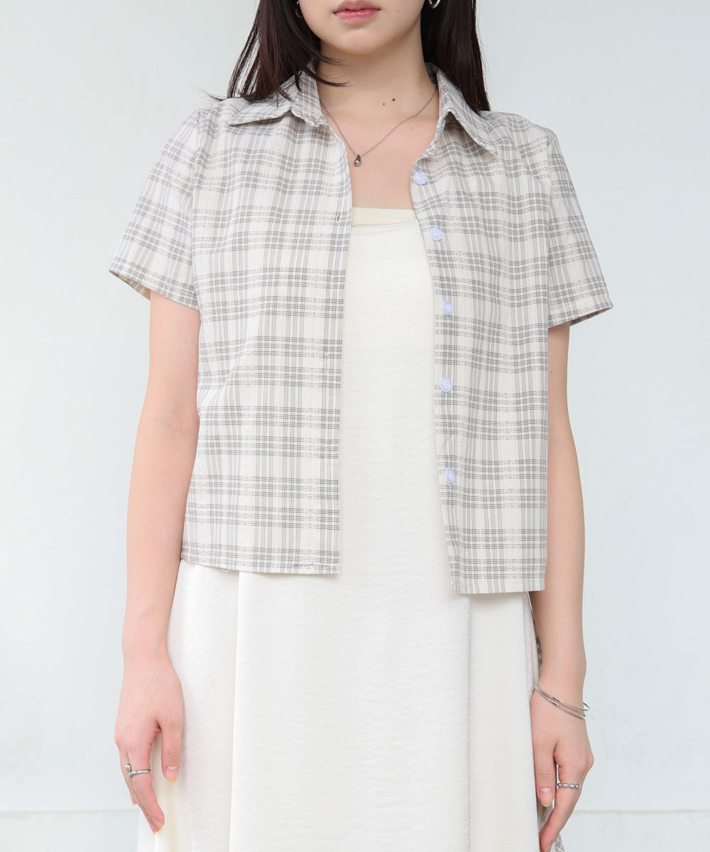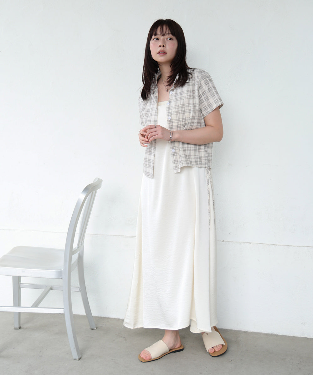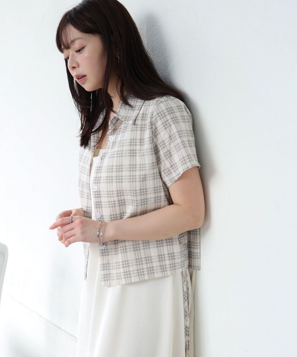 チェック前開きビスチェ風チュニック
