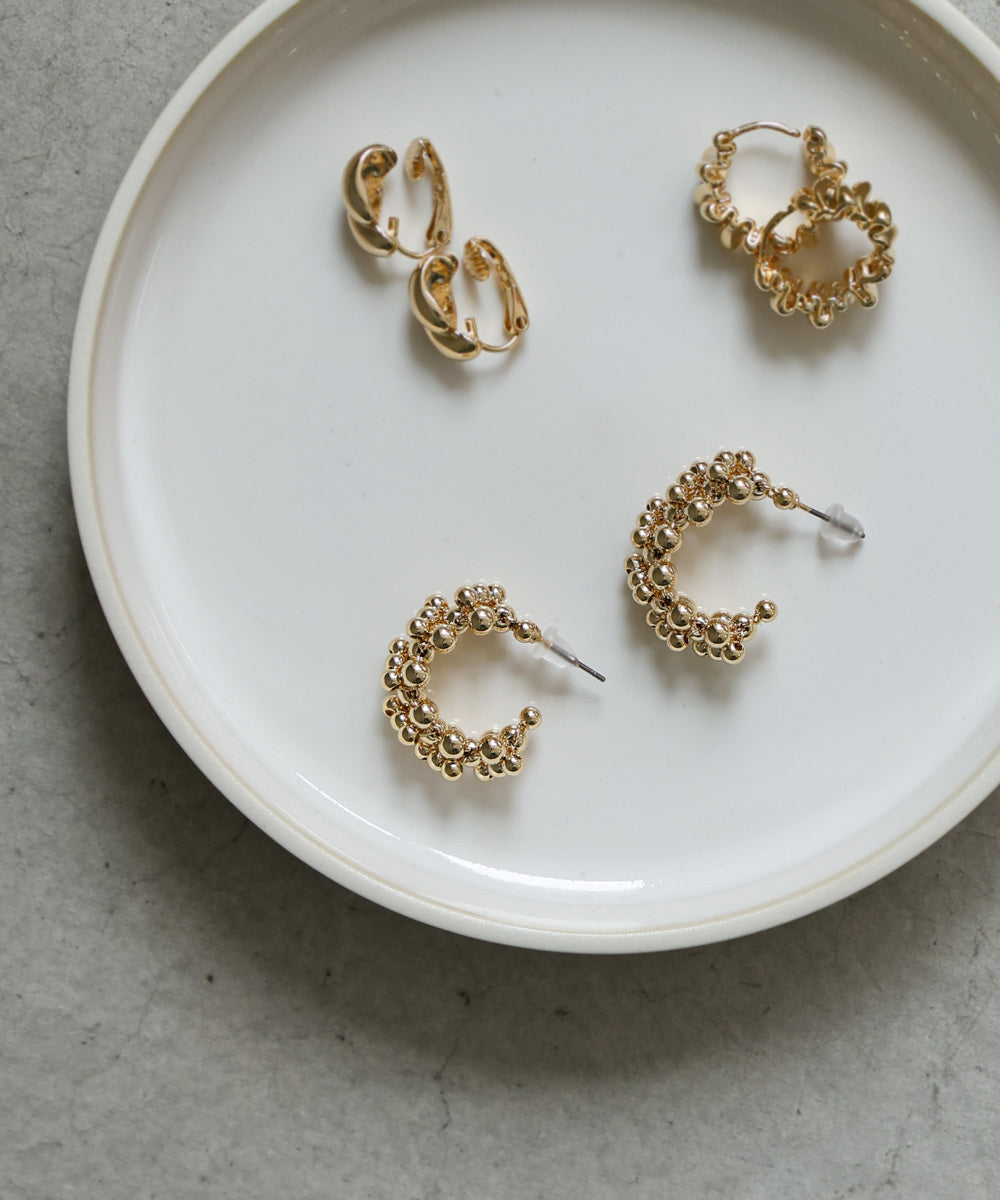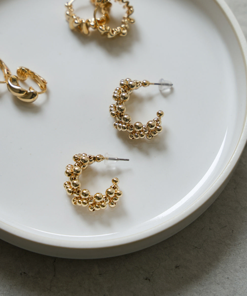 ランダムなボールデザインで動きと立体感のあるピアスが登場。