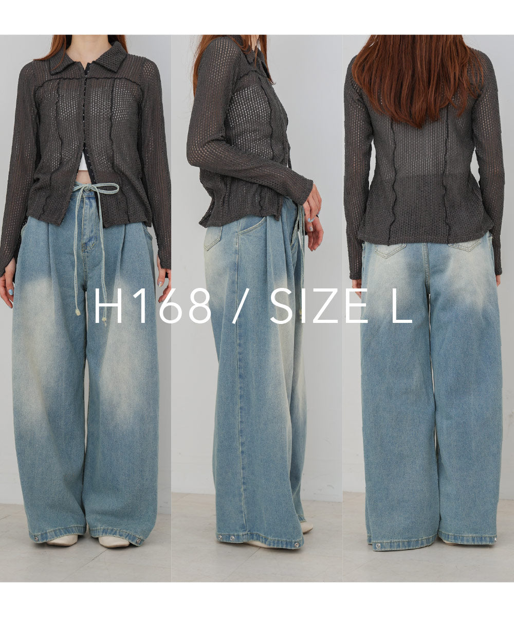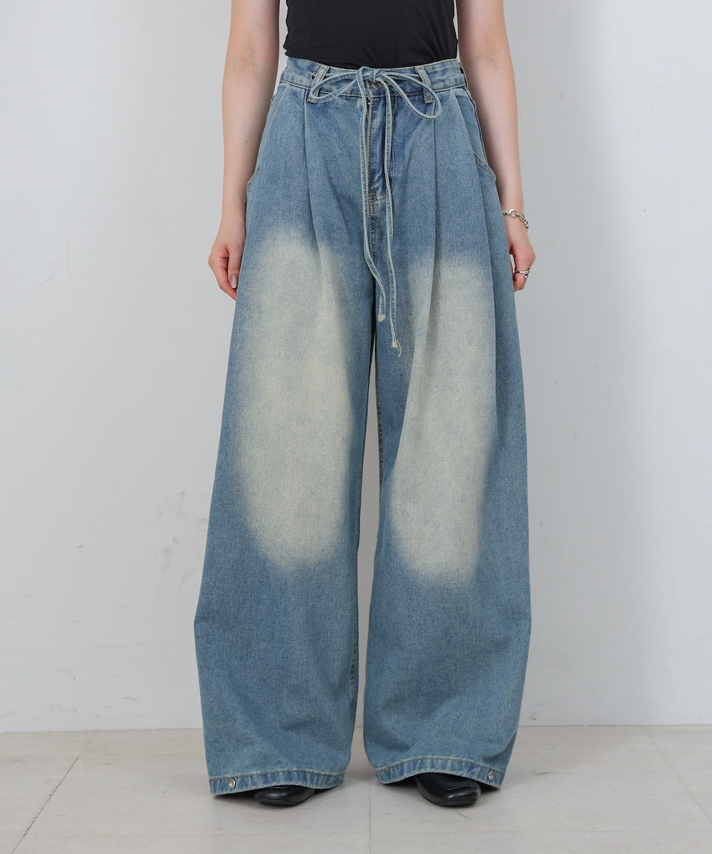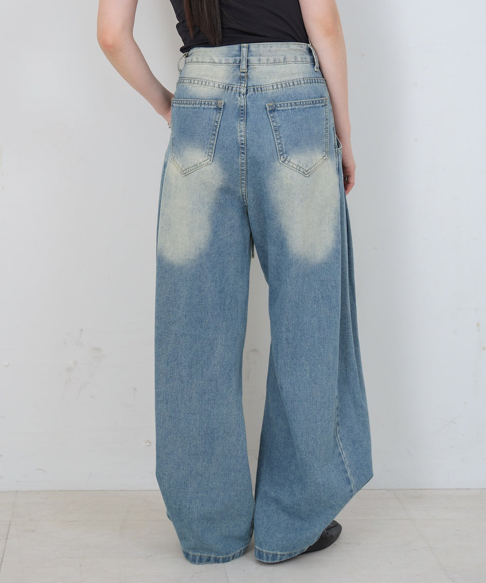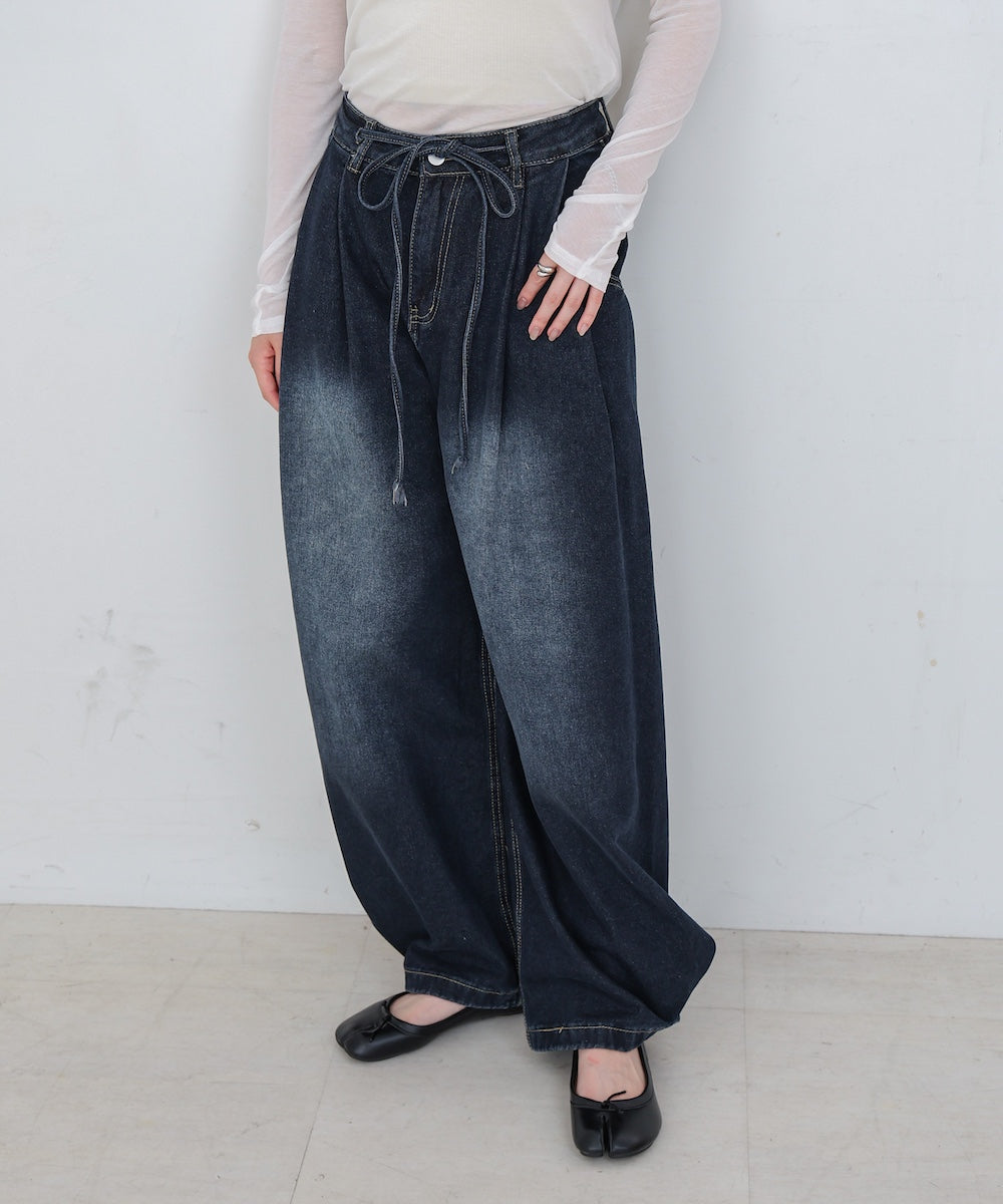【M・Lサイズ展開】ウエストデザイン ルーズデニムパンツ