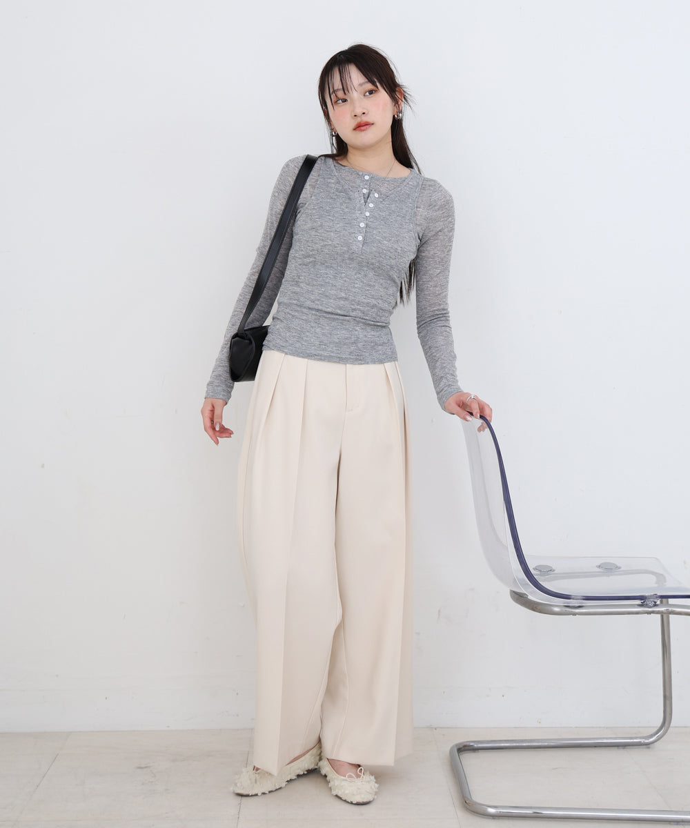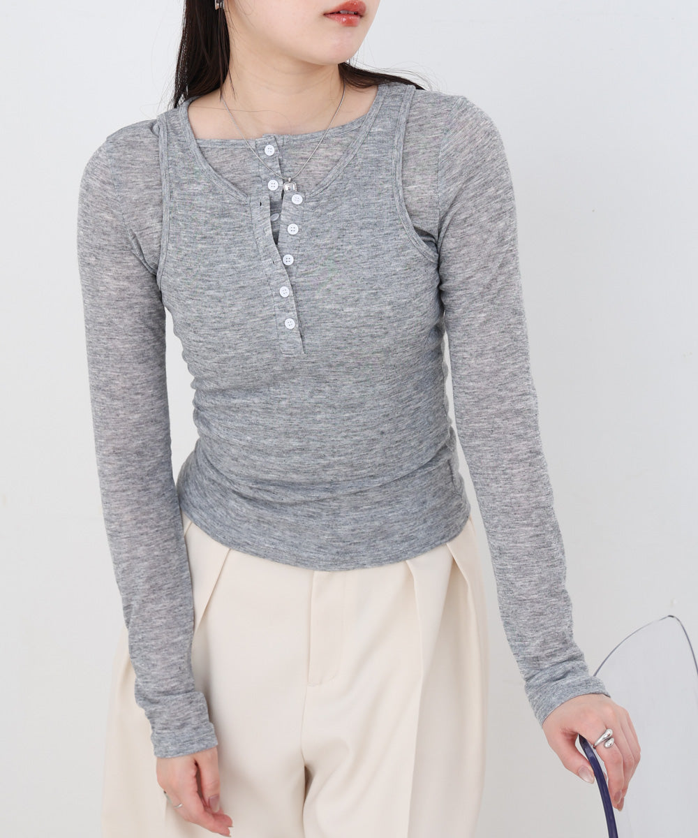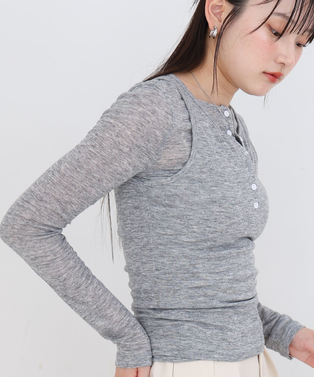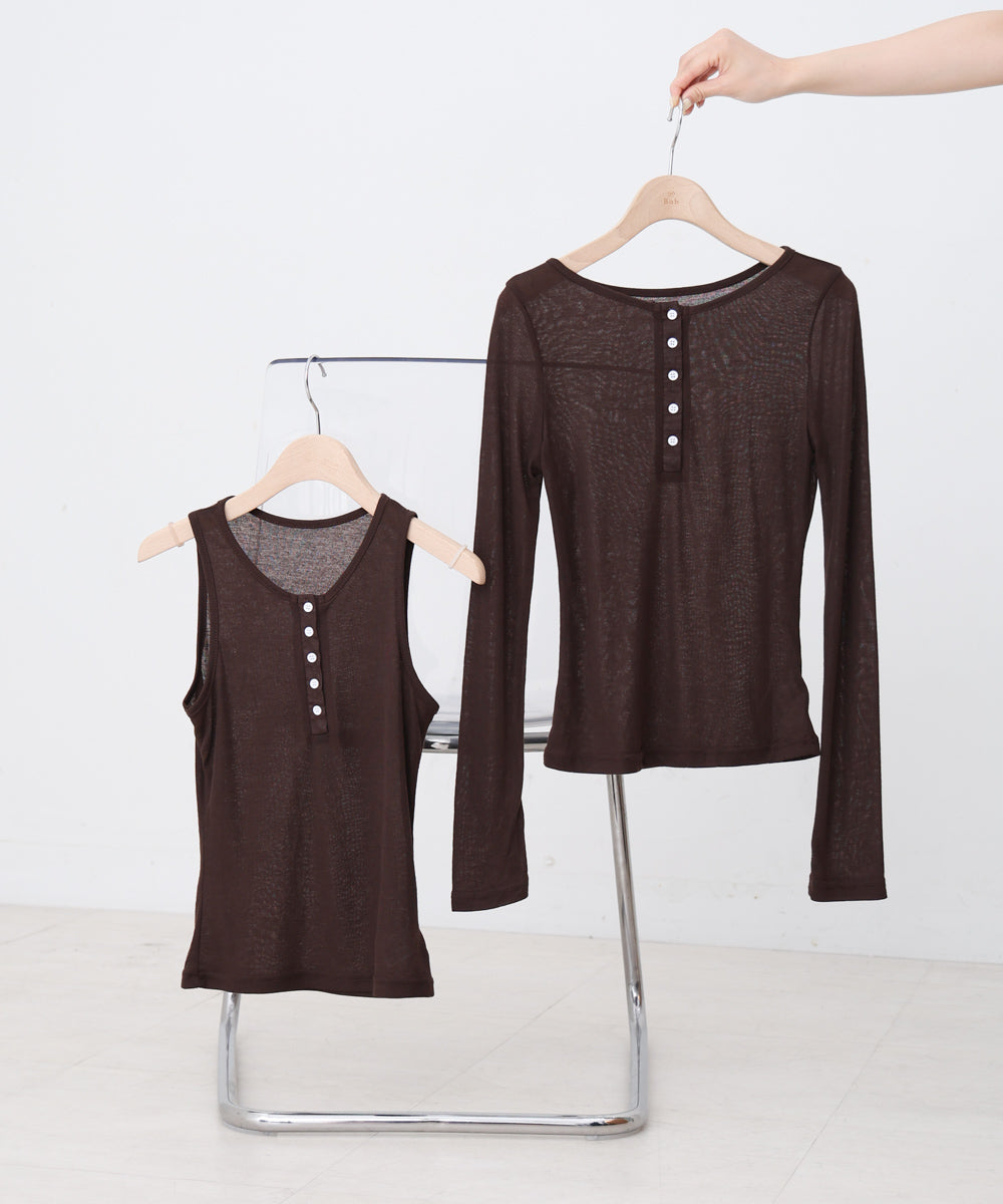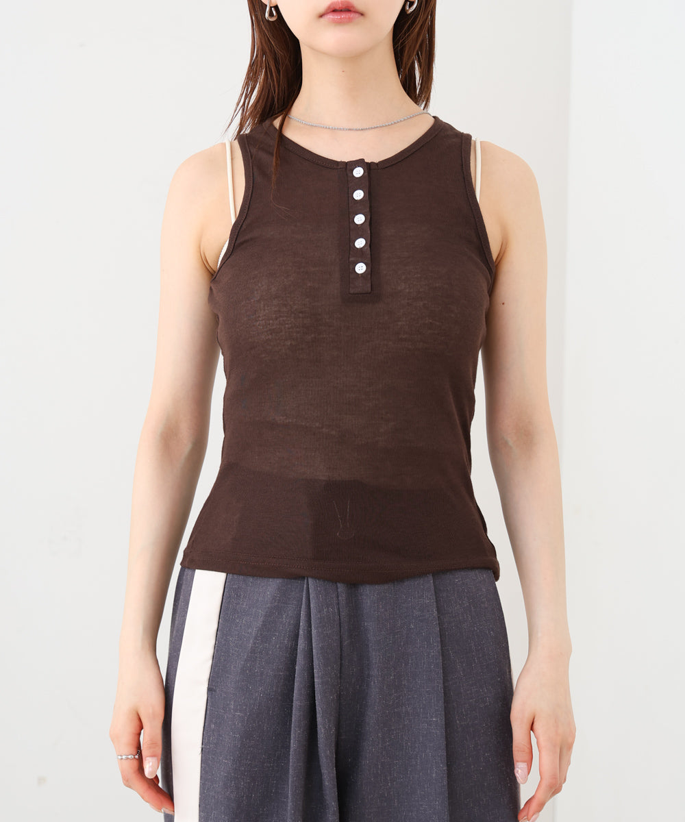 ボタンタンクセット ヘンリーネックトップス