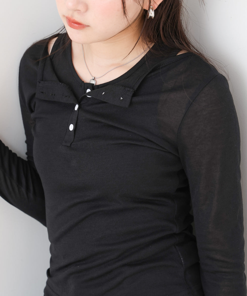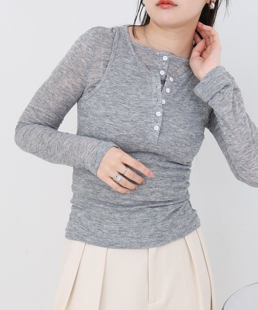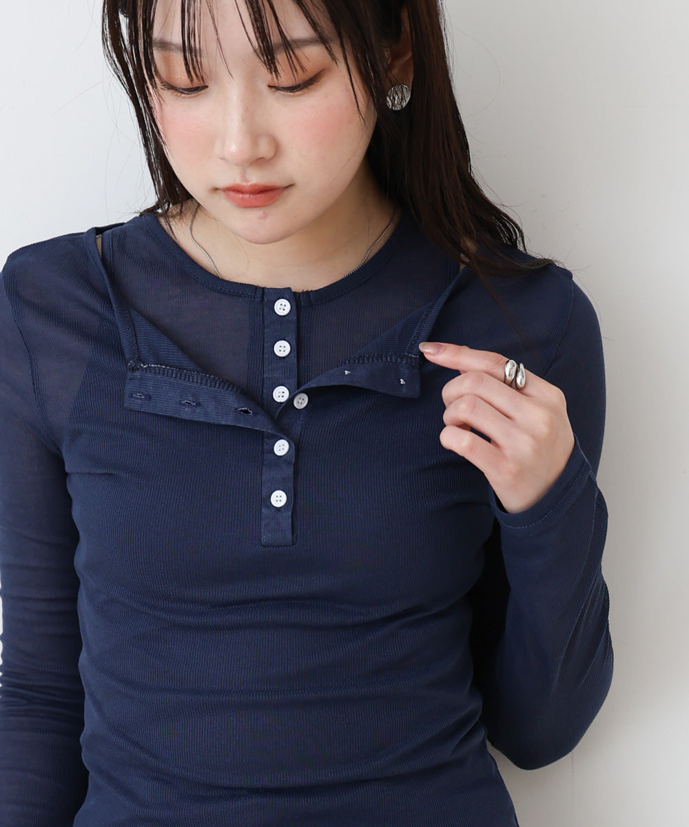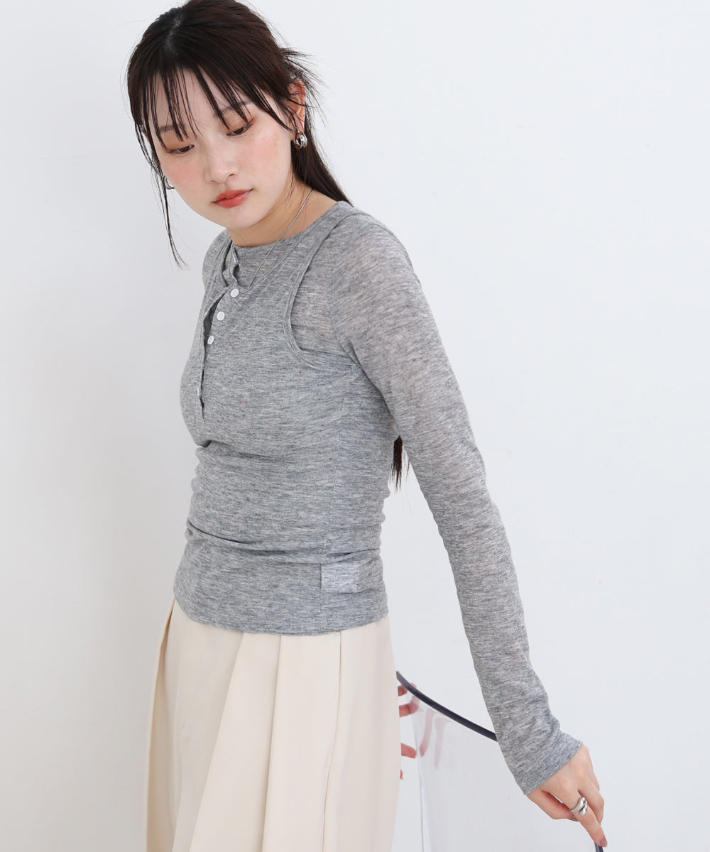 ボタンタンクセット ヘンリーネックトップス