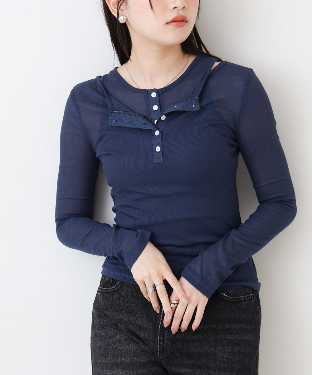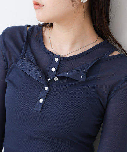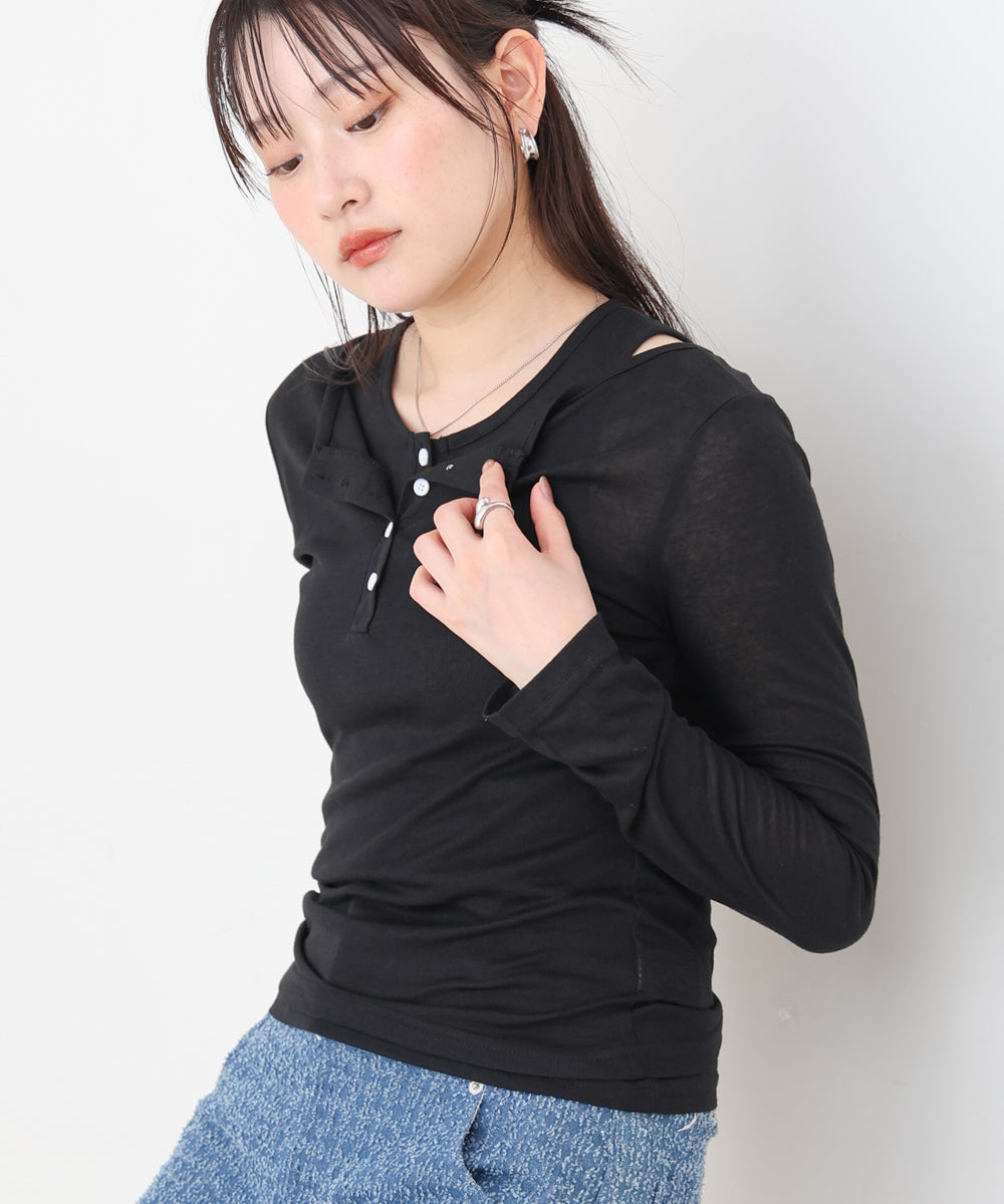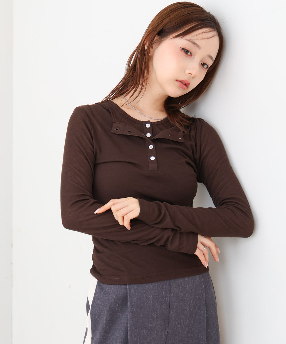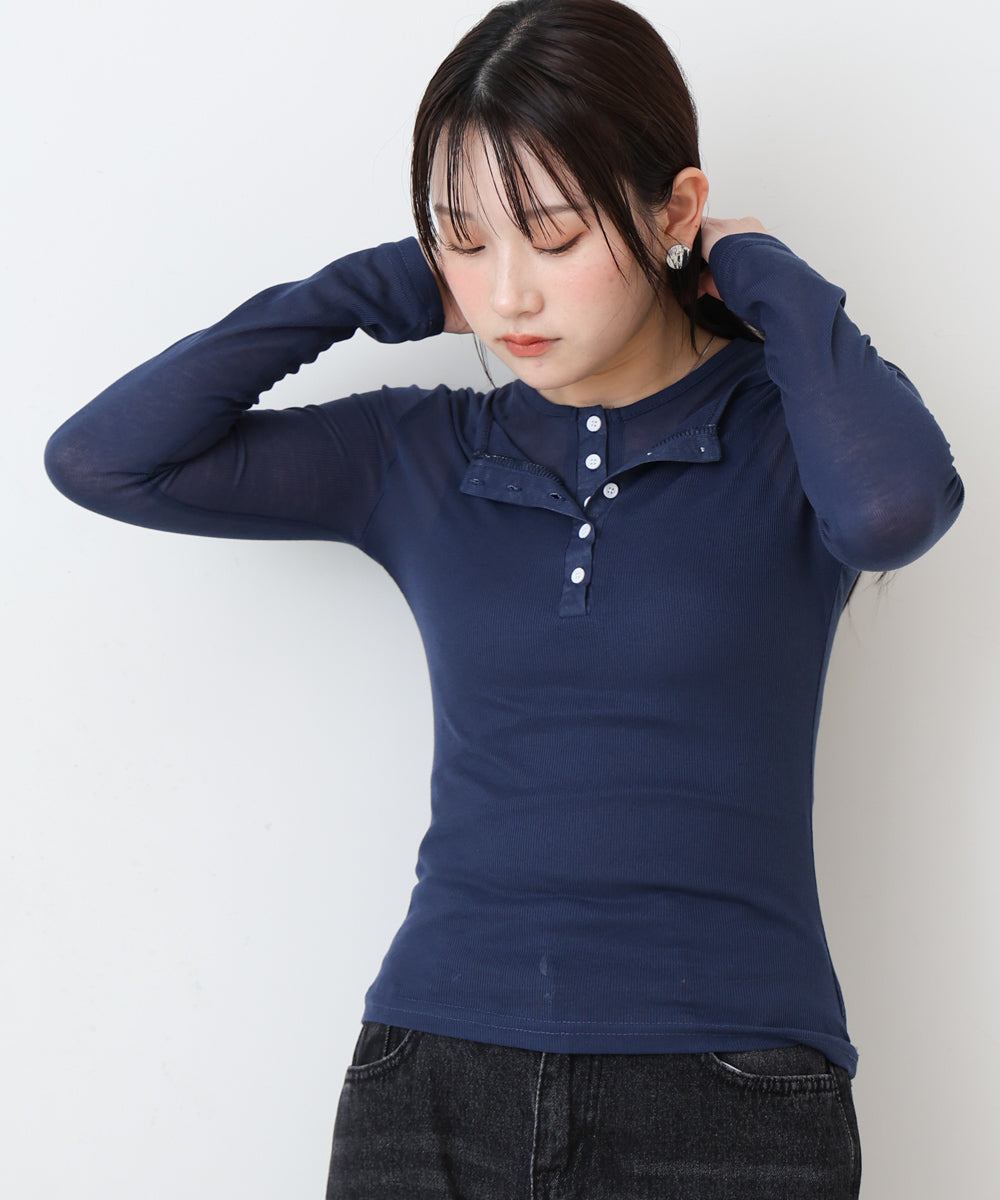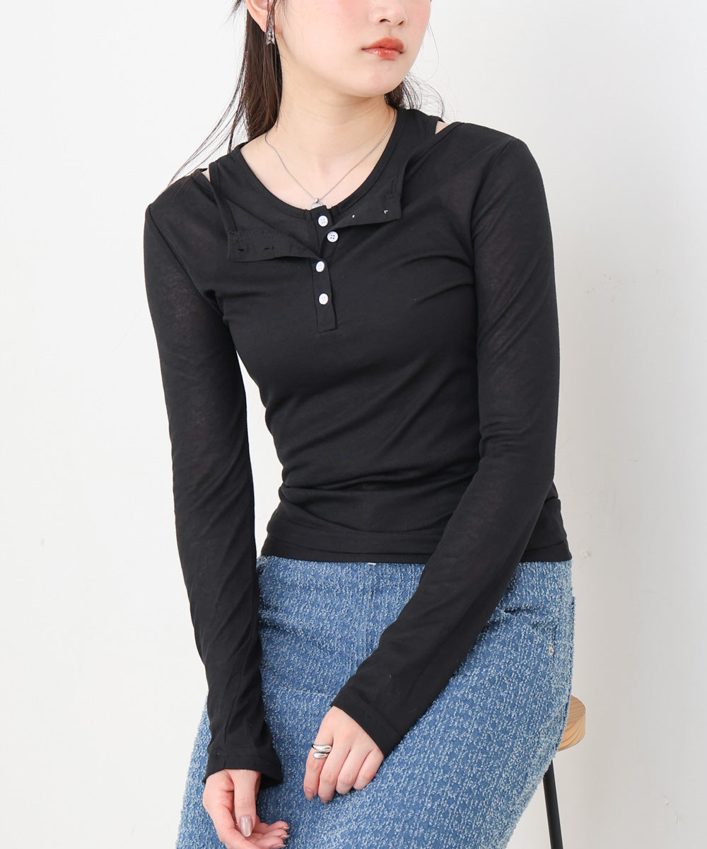 ボタンタンクセット ヘンリーネックトップス