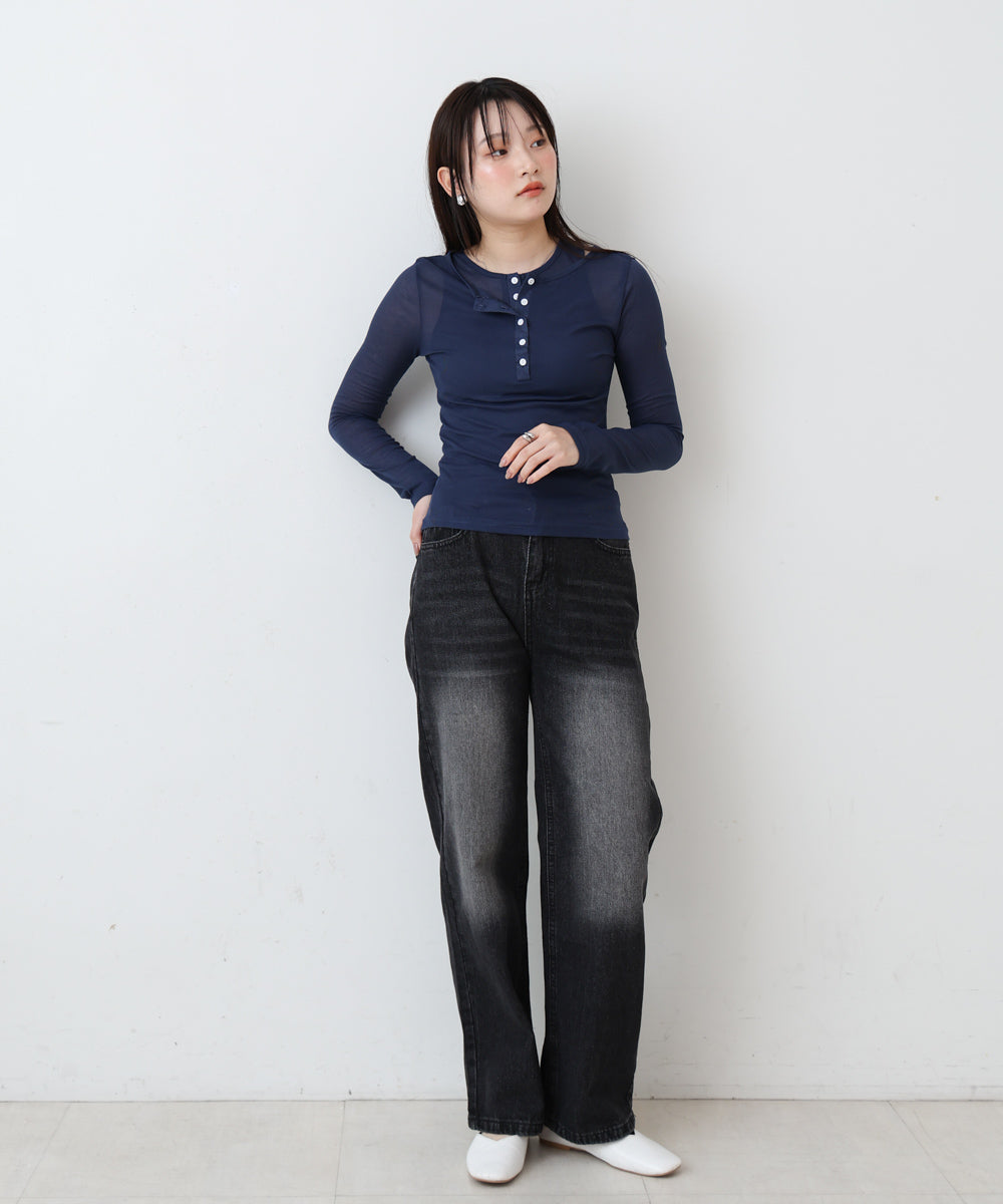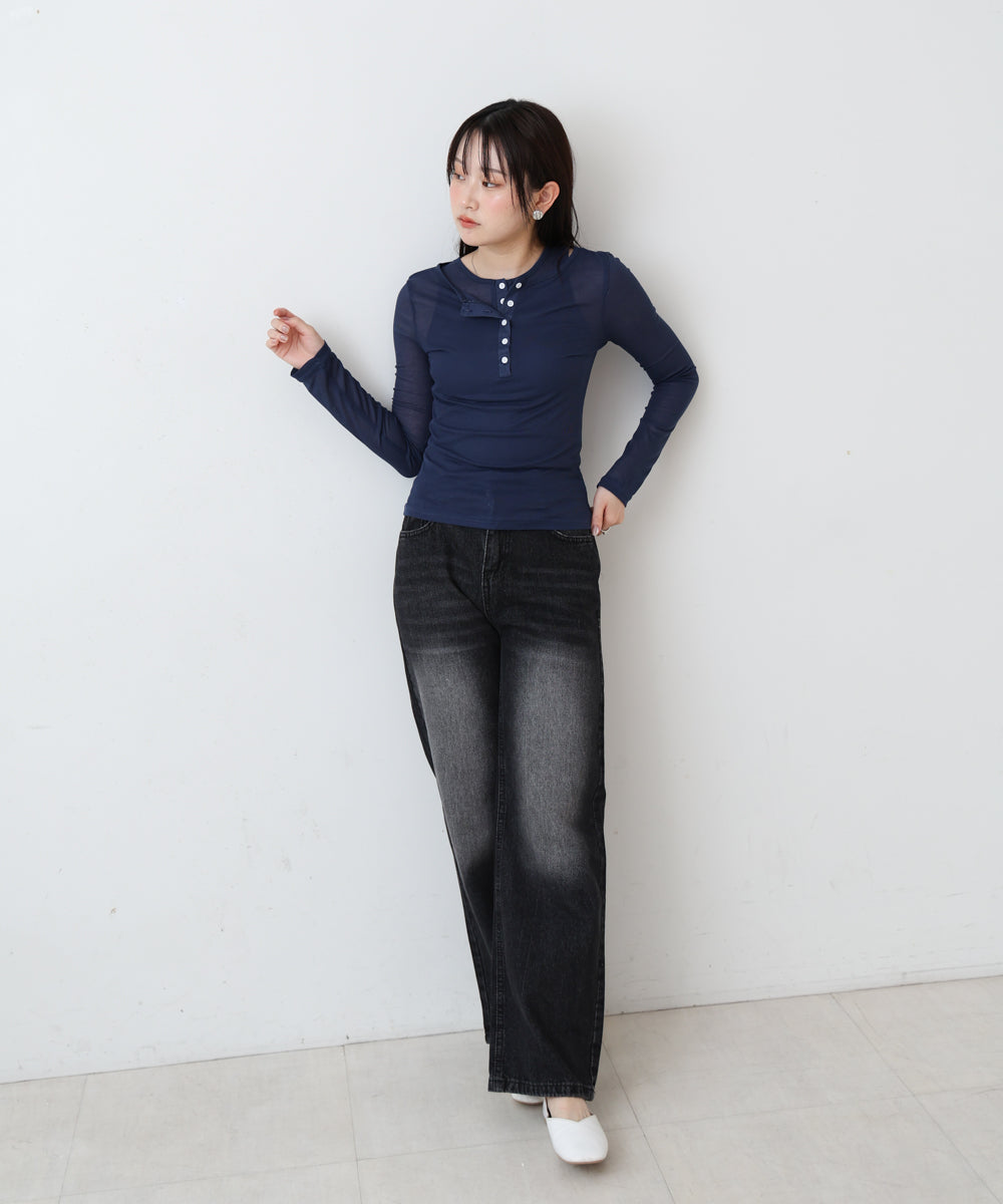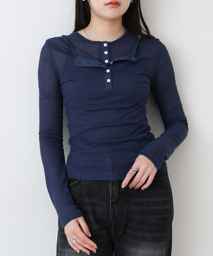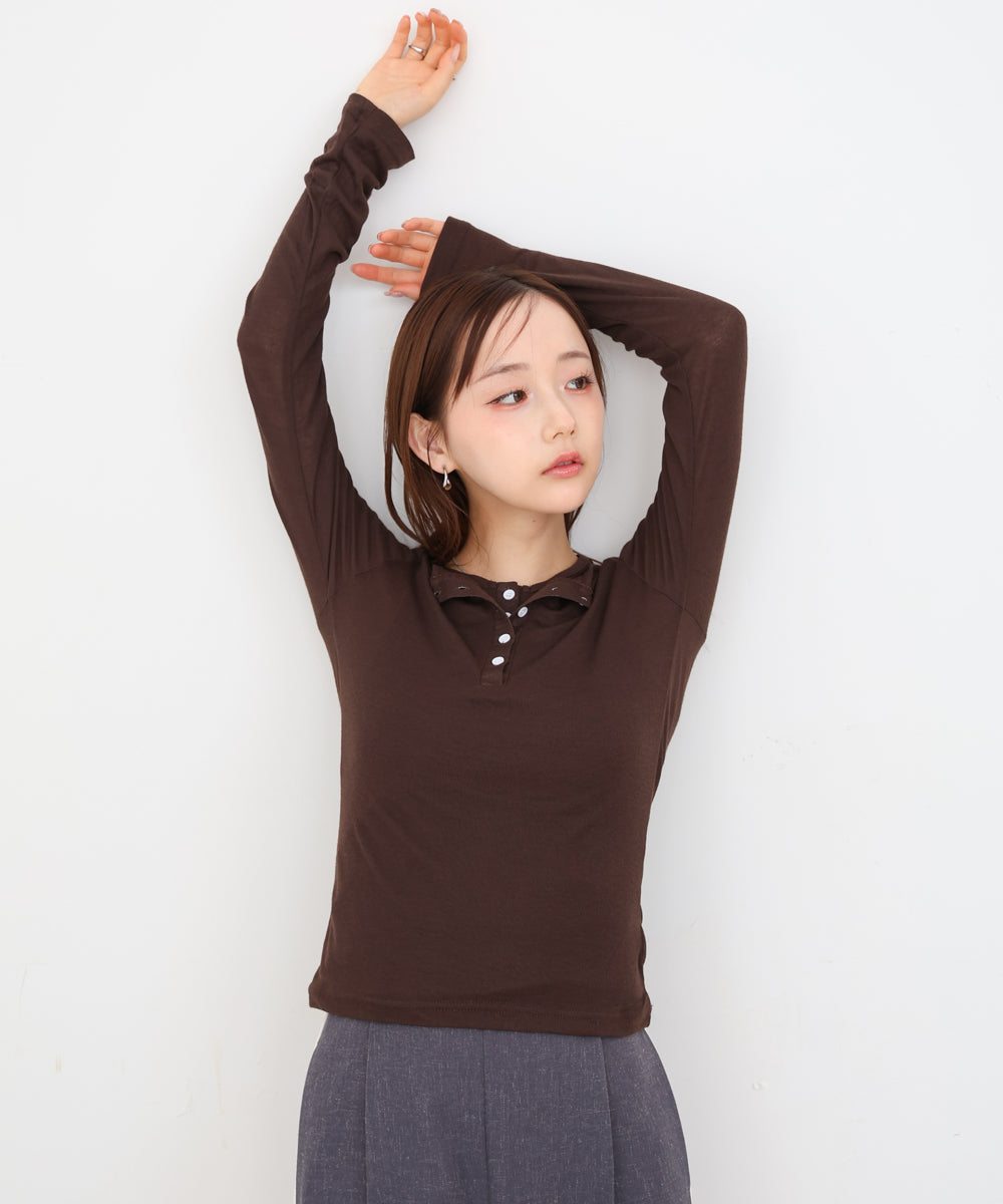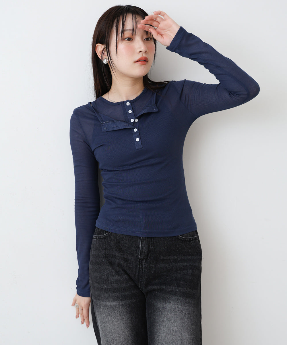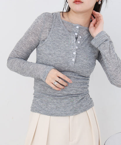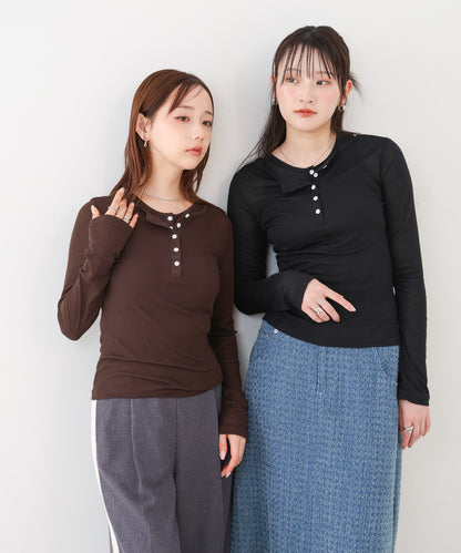 ボタンタンクセット ヘンリーネックトップス