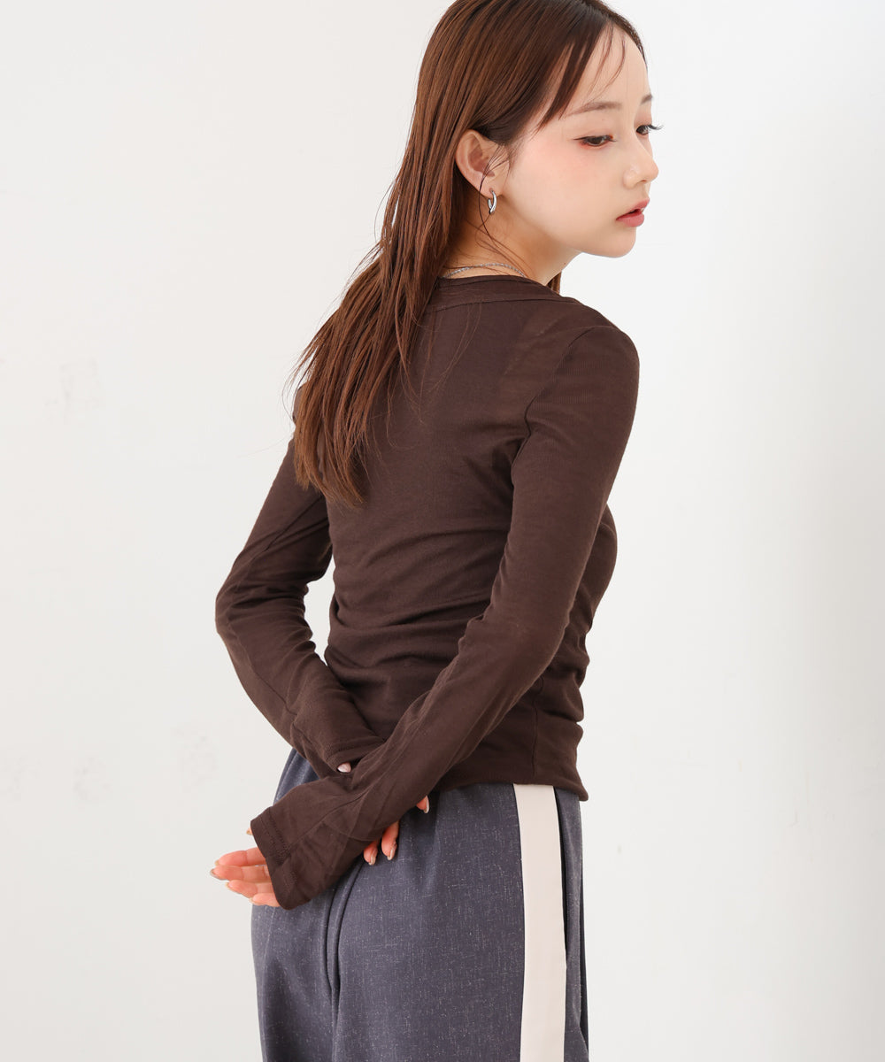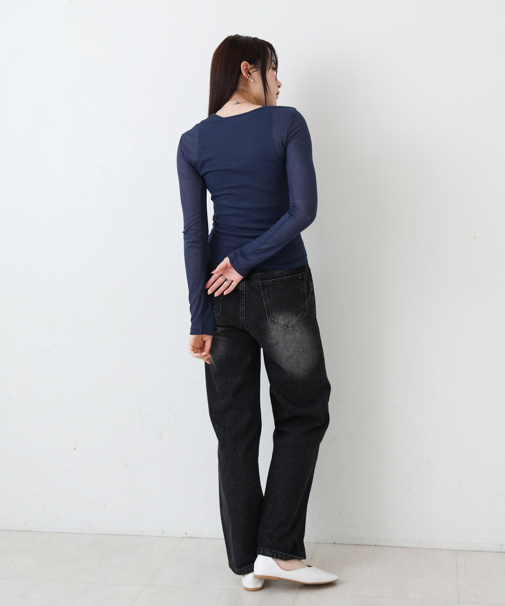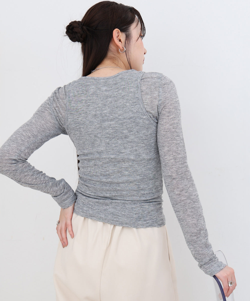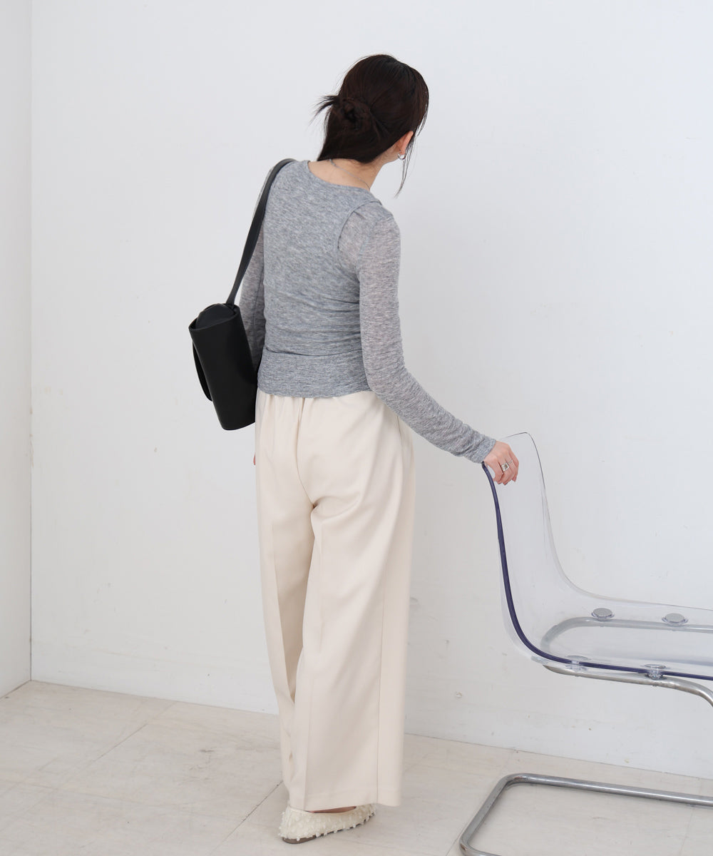 【選べるネック】シアー使いリブニットトップス