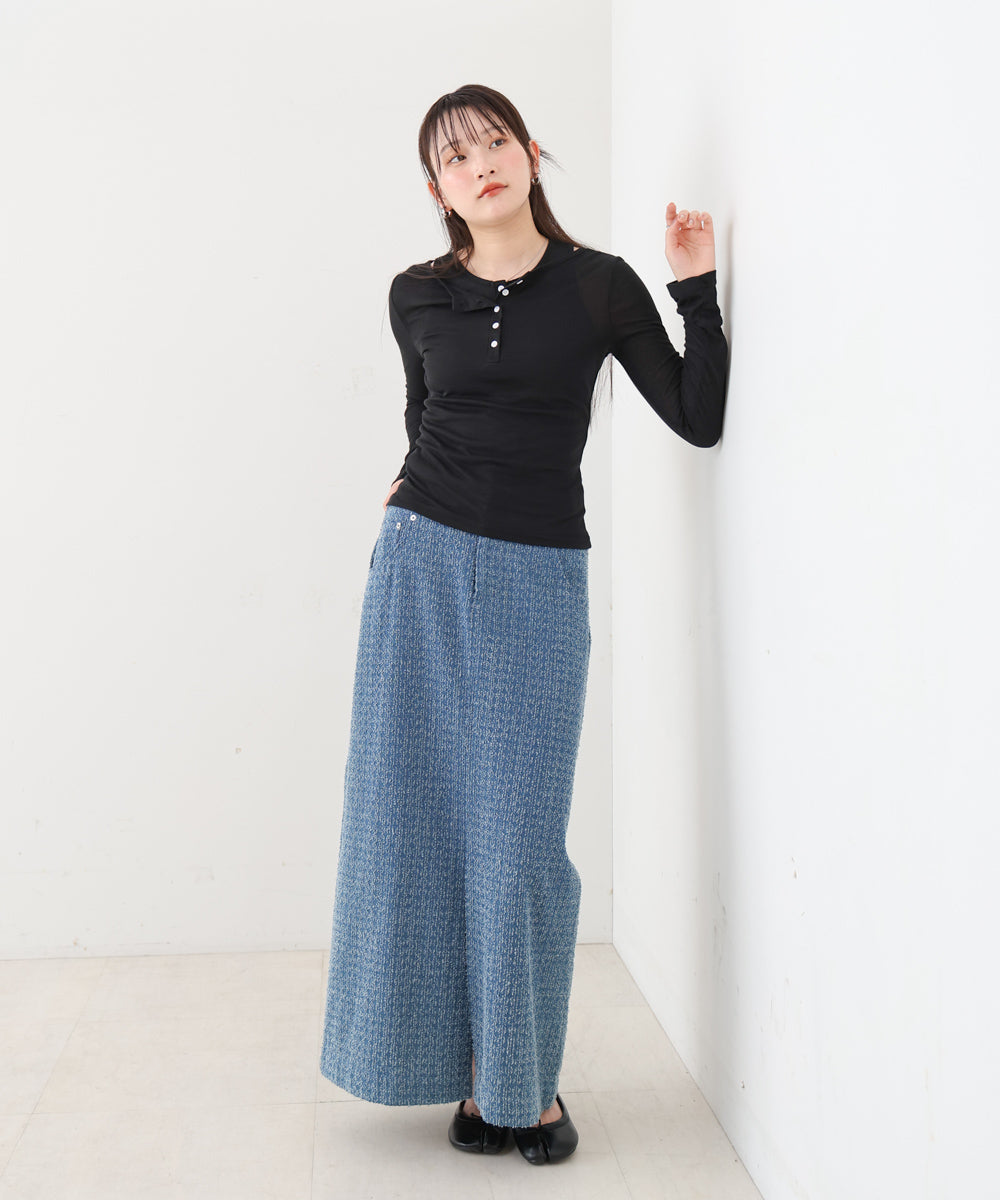 【選べるネック】チュールレイヤードリブニット