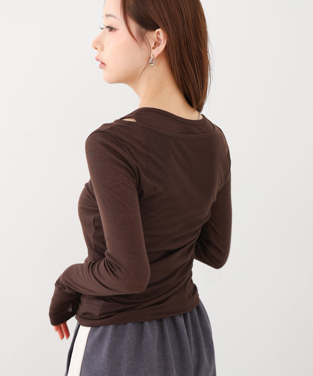 2枚のカットソーがセットになったシアーレイヤードカットソー。レイヤードして着用すると少し肩の部分がスリットのように開くのでトレンドライクな着こなしが完成します。タンクトップとTシャツは別でも着ていただけるので着回しもできて万能アイテムです◎柔らかい生地感なので着心地抜群です!