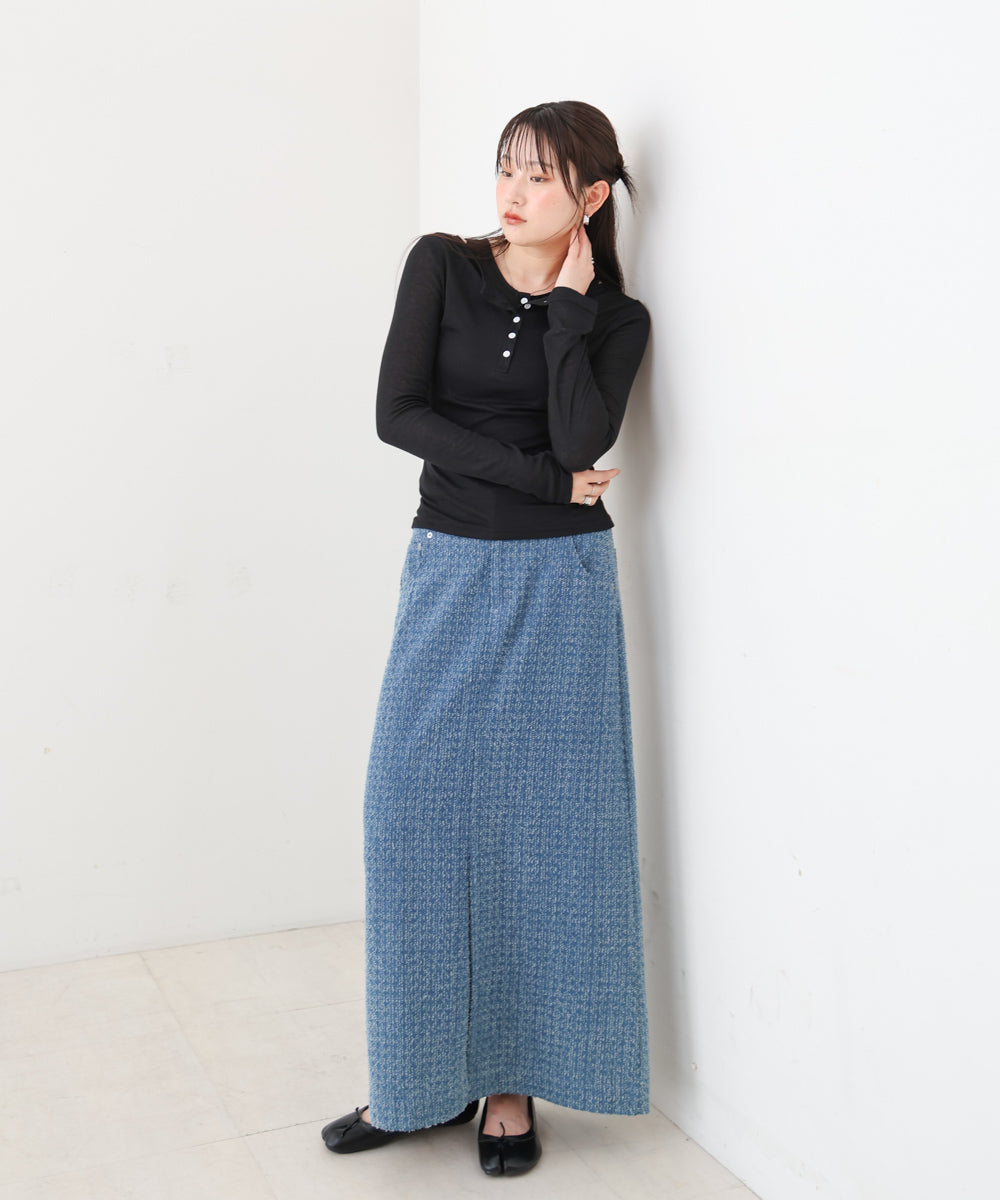 ローライズのデニムや、スウェットパンツなどと合わせてラフに着るのがおすすめ。ベージュや黒系のタイトスカートと合わせるとオフィスカジュアルとしてもご着用いただけます◎