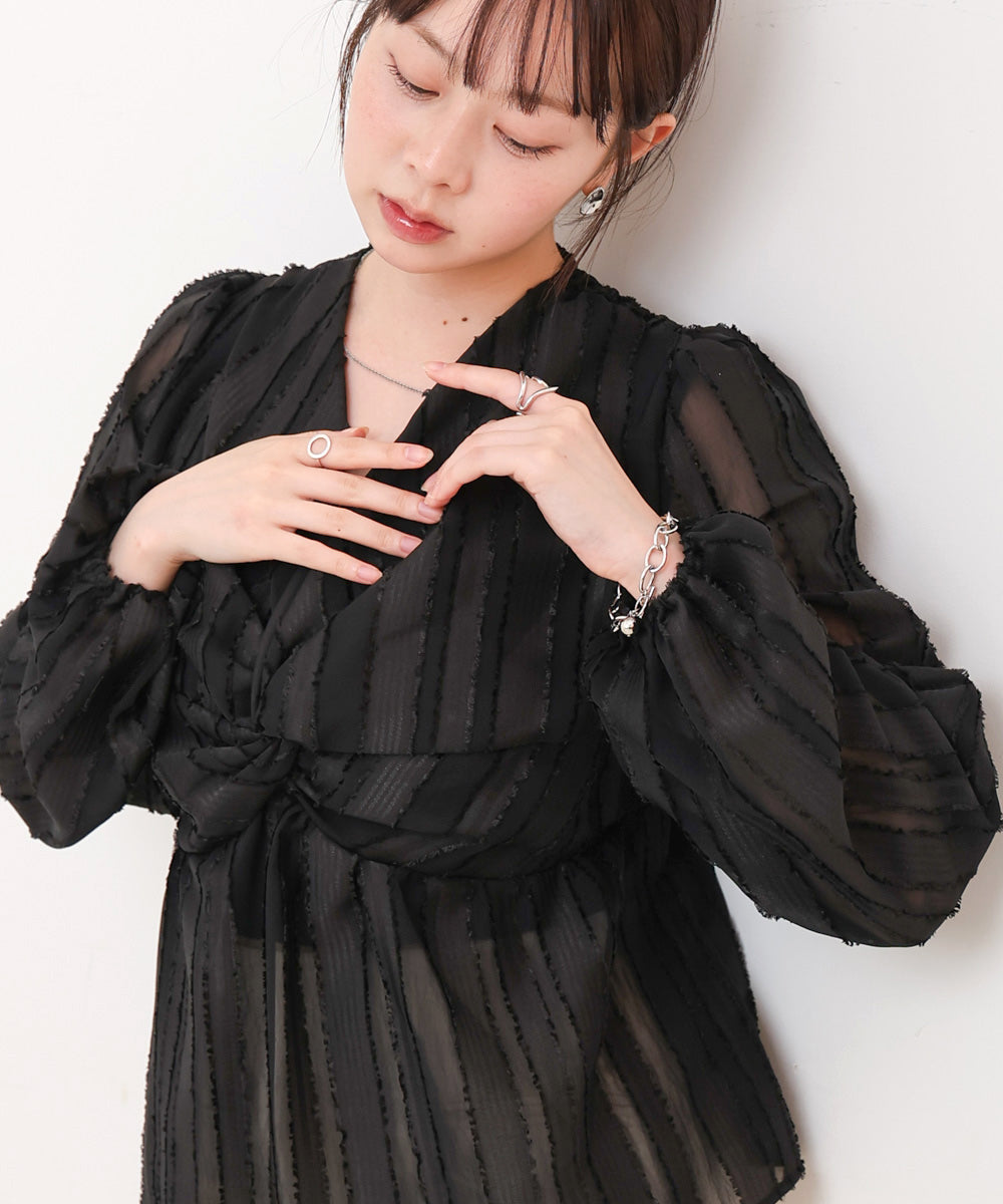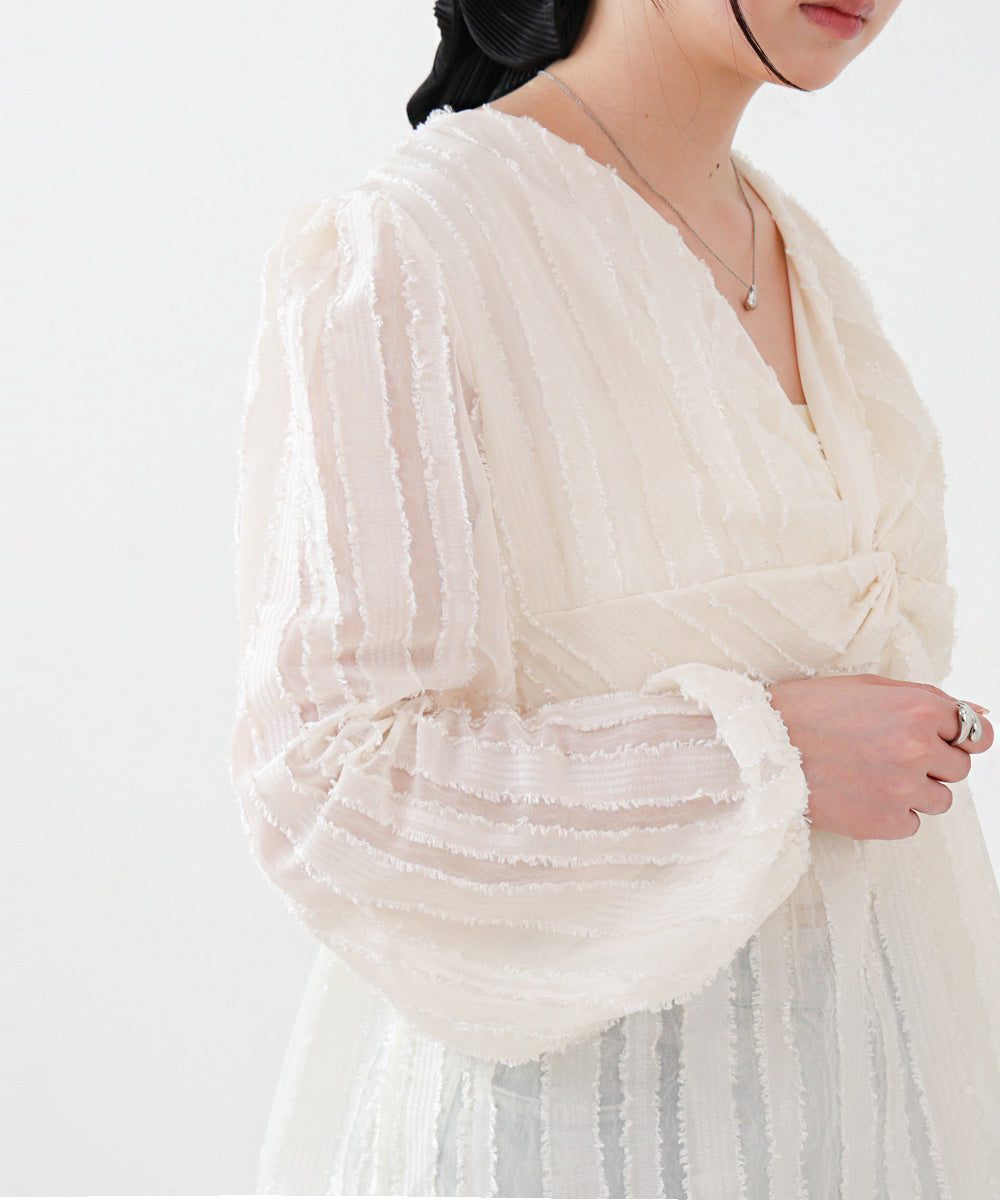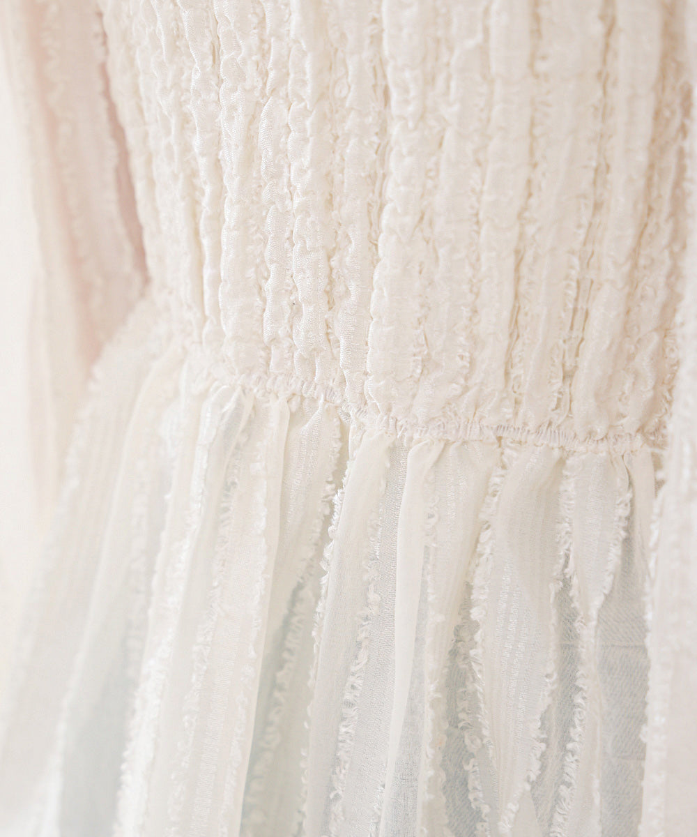 シアーインナーやブラウスと相性抜群!大人可愛いセミオケ風のコーディネートが完成します。もちろんシンプルなカットソー合わせでデイリールックにも◎。インナー次第でシーズン問わずお召し頂ける、ヘビーユースしたいワンピースです。