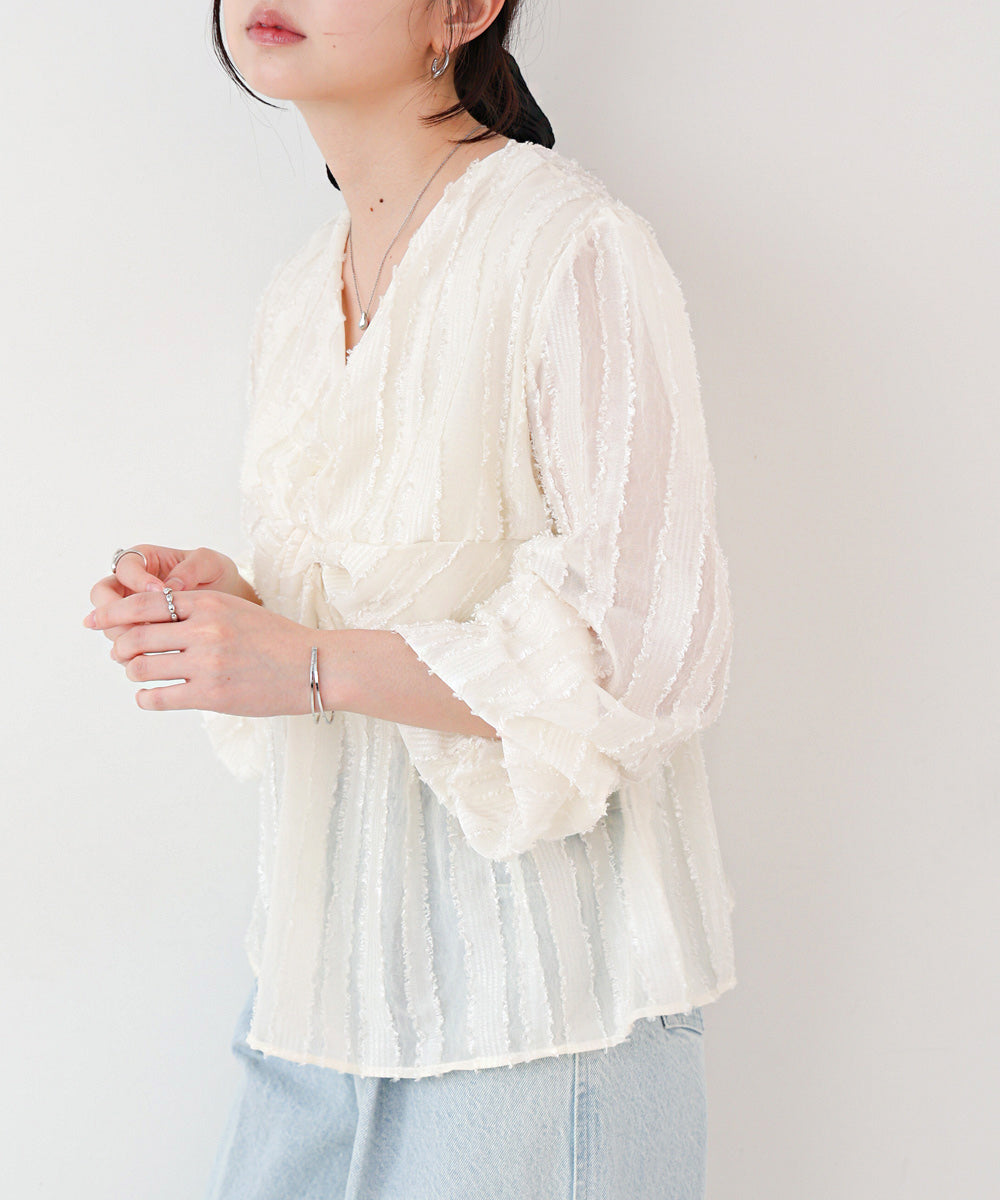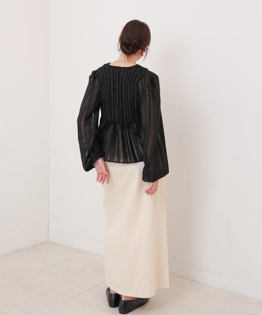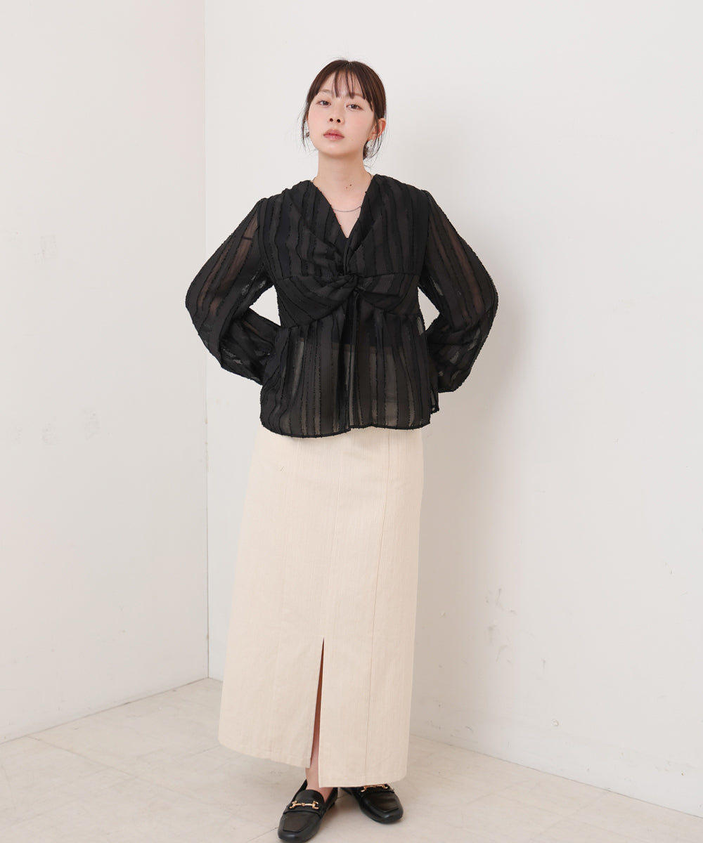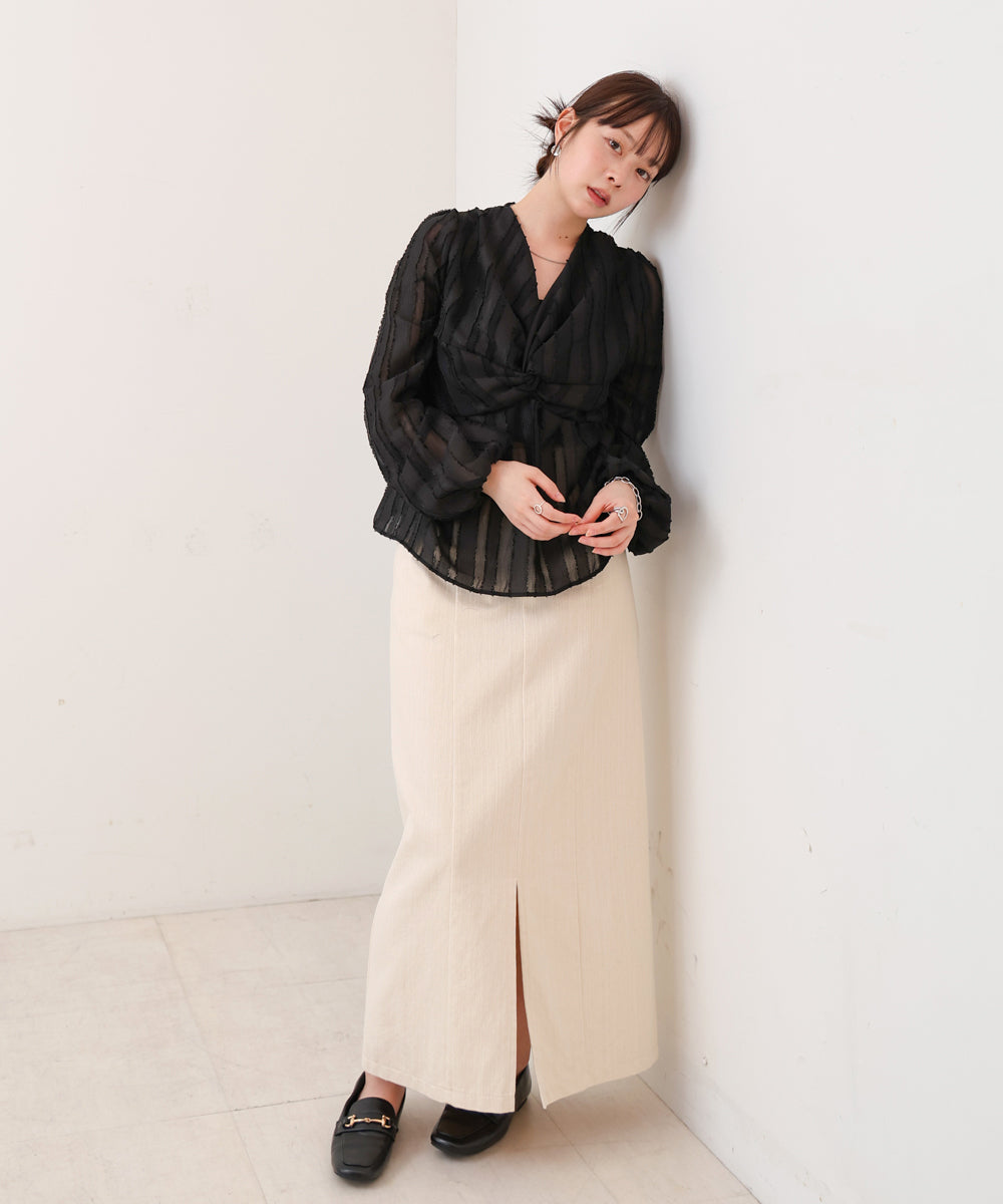 シアーインナーやブラウスと相性抜群!大人可愛いセミオケ風のコーディネートが完成します。もちろんシンプルなカットソー合わせでデイリールックにも◎。インナー次第でシーズン問わずお召し頂ける、ヘビーユースしたいワンピースです。