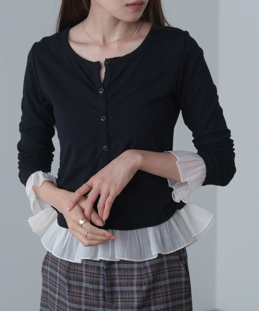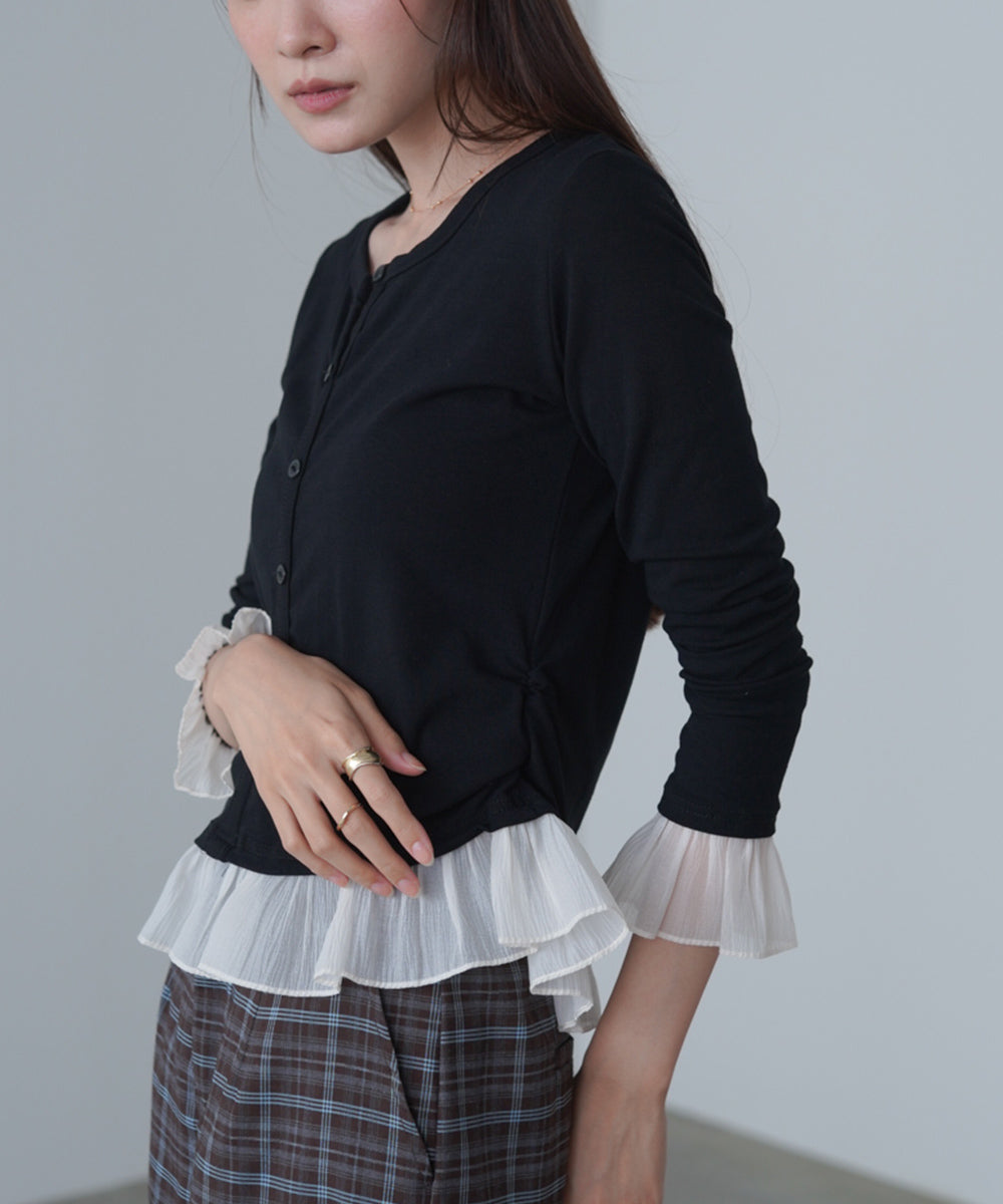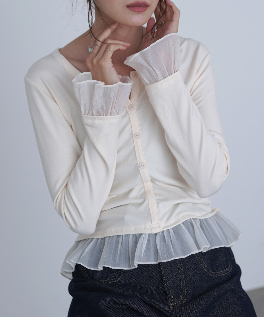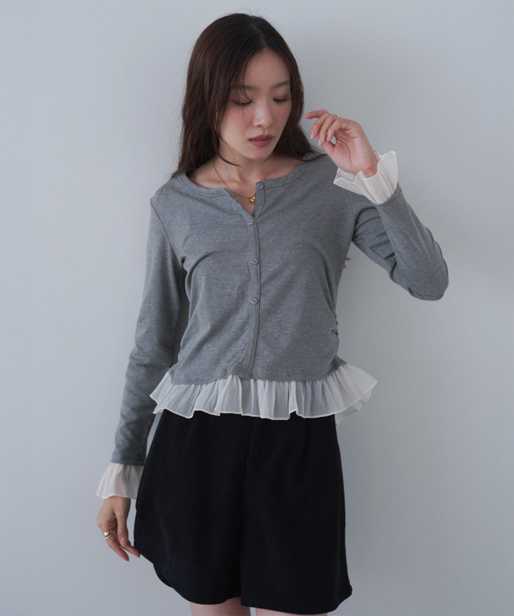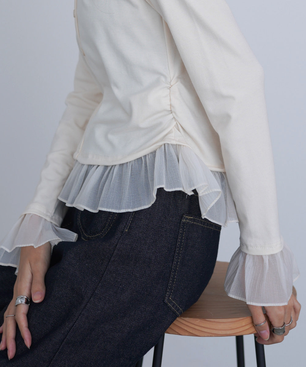 チュールラッフルカラーニットトップス