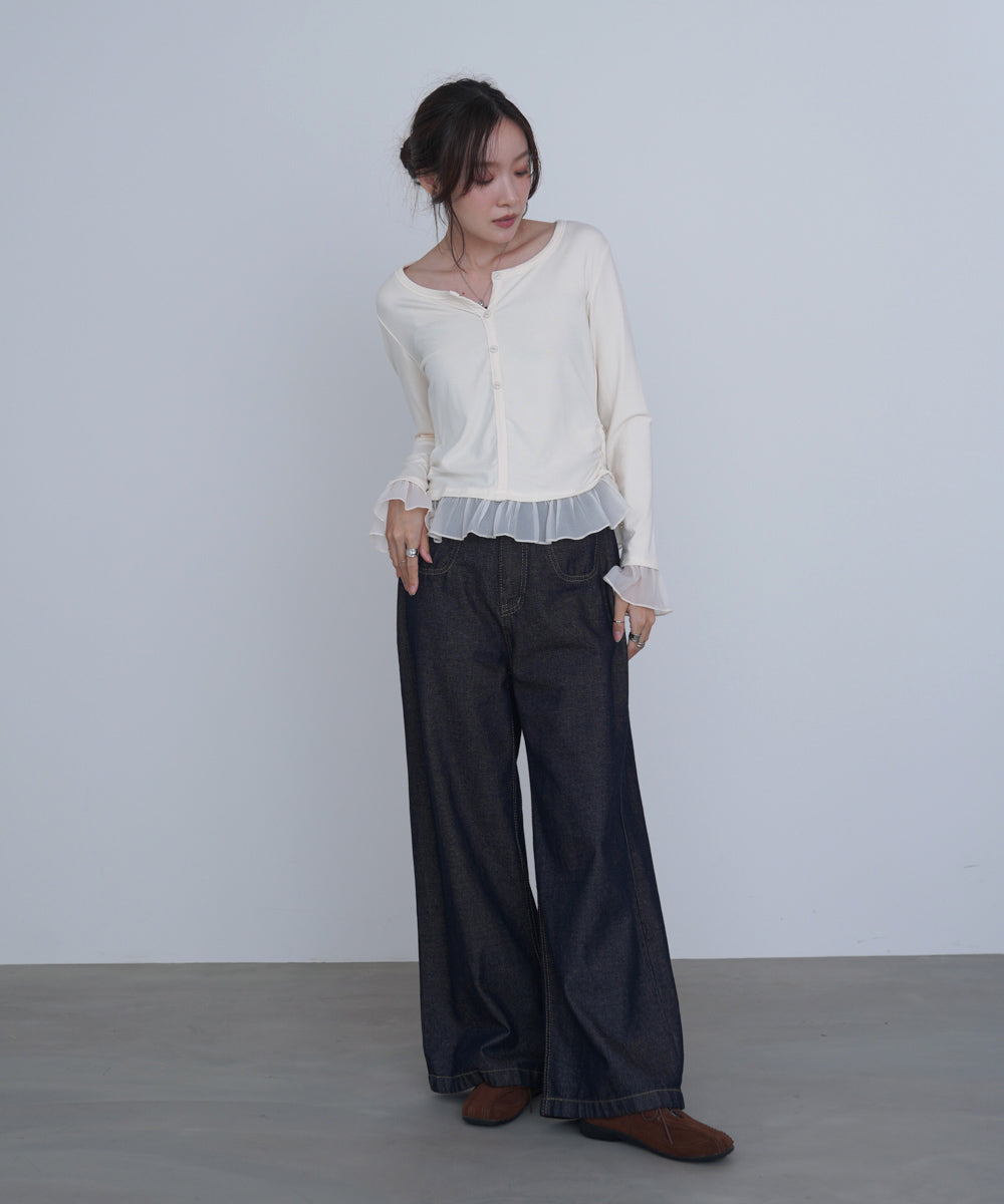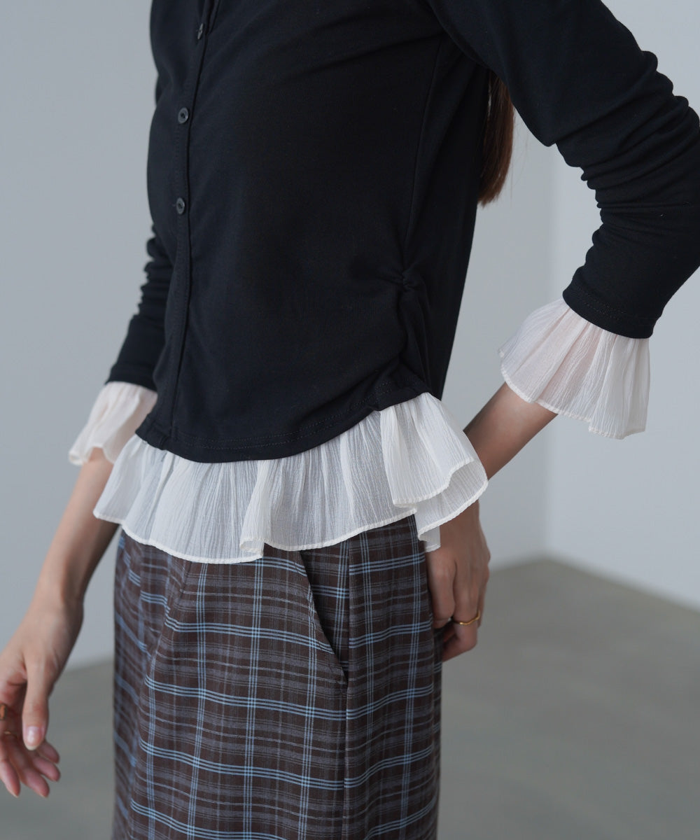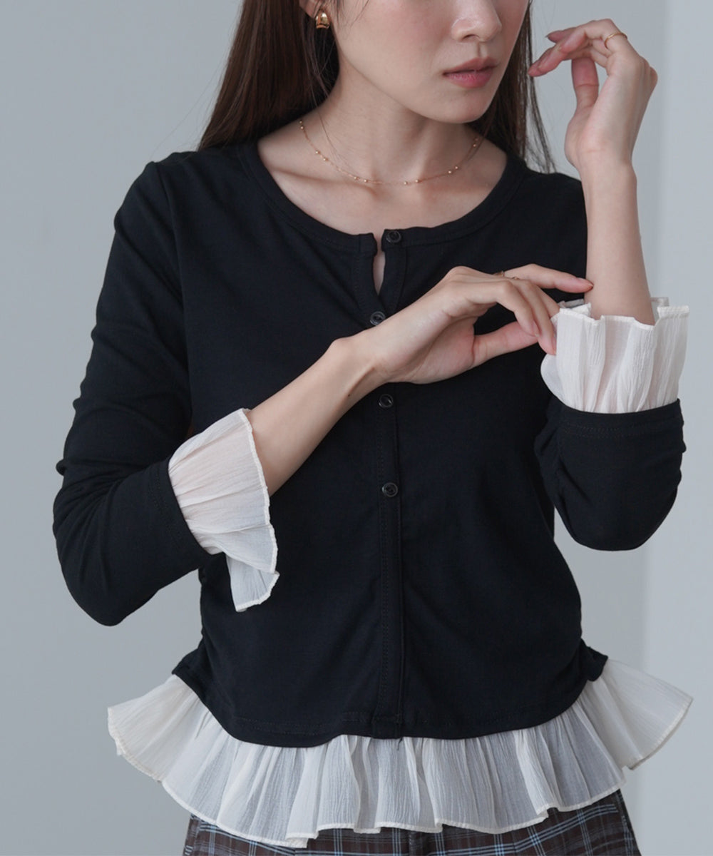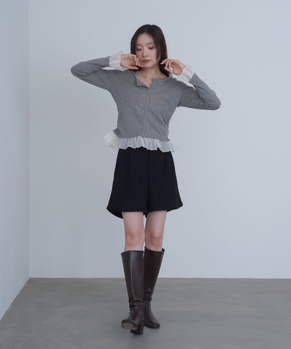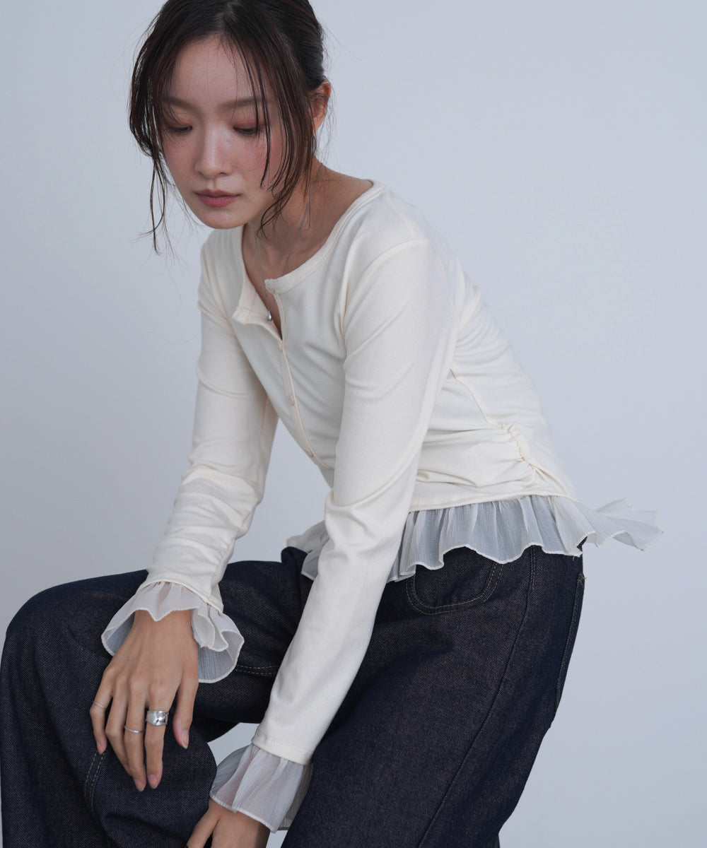 チュールラッフルカラーニットトップス