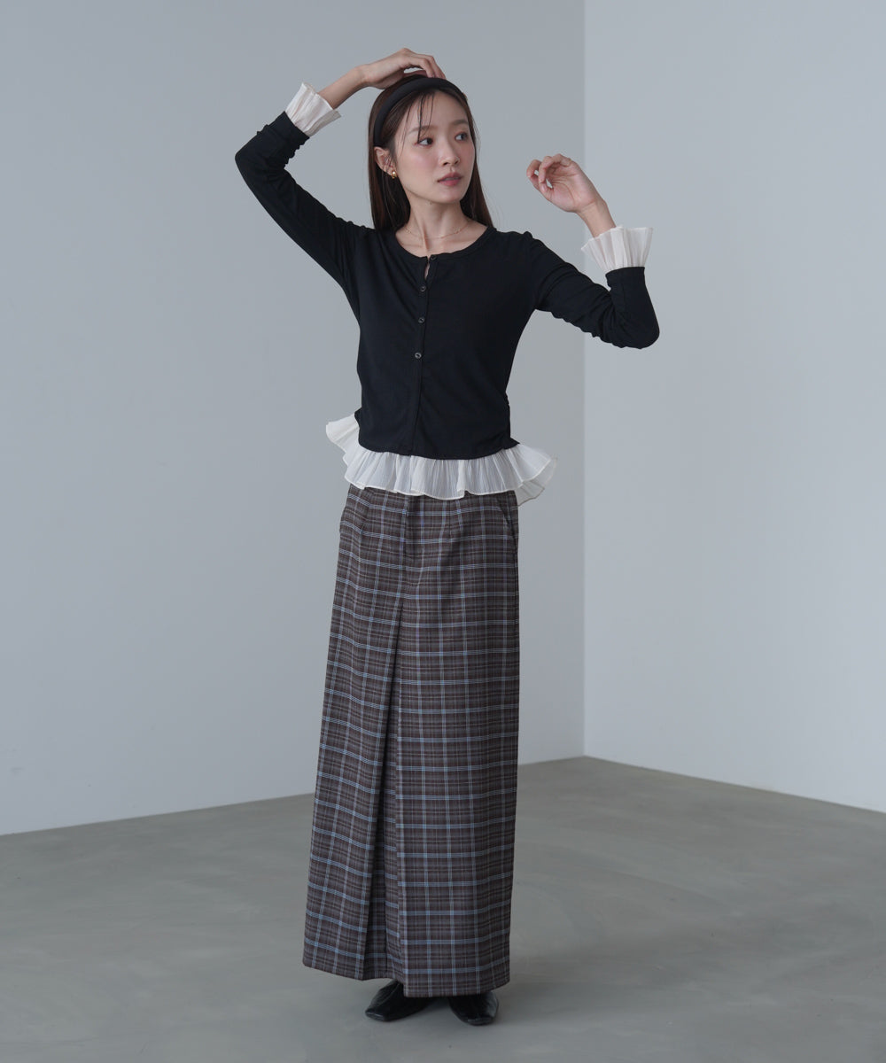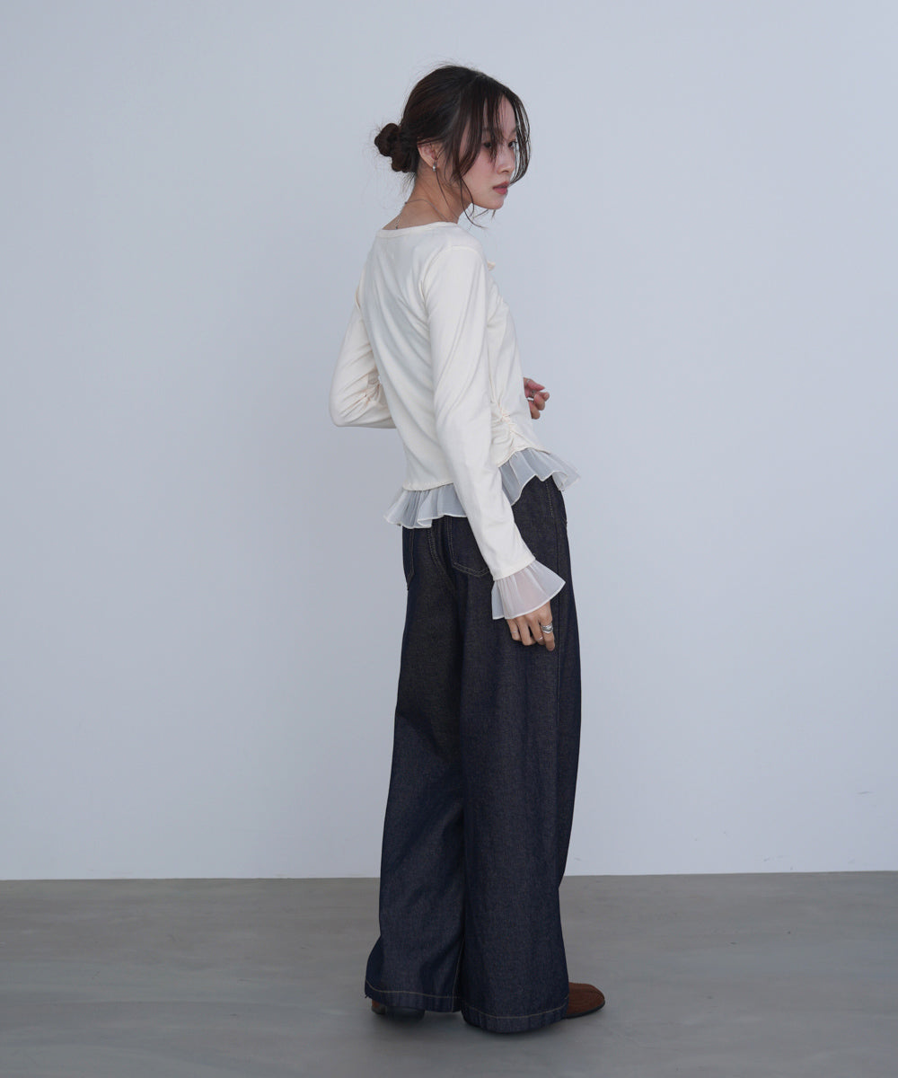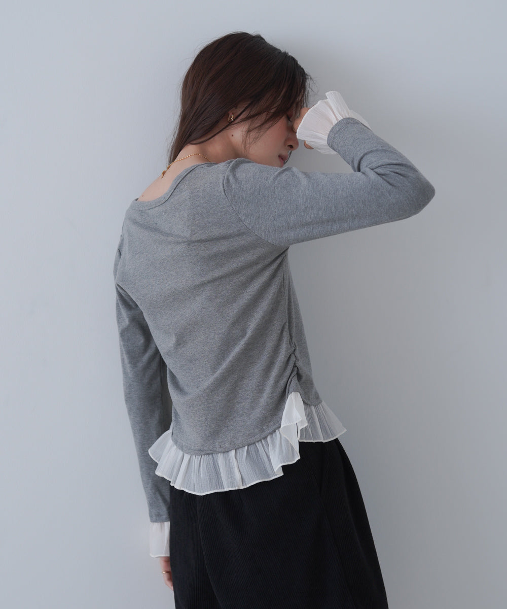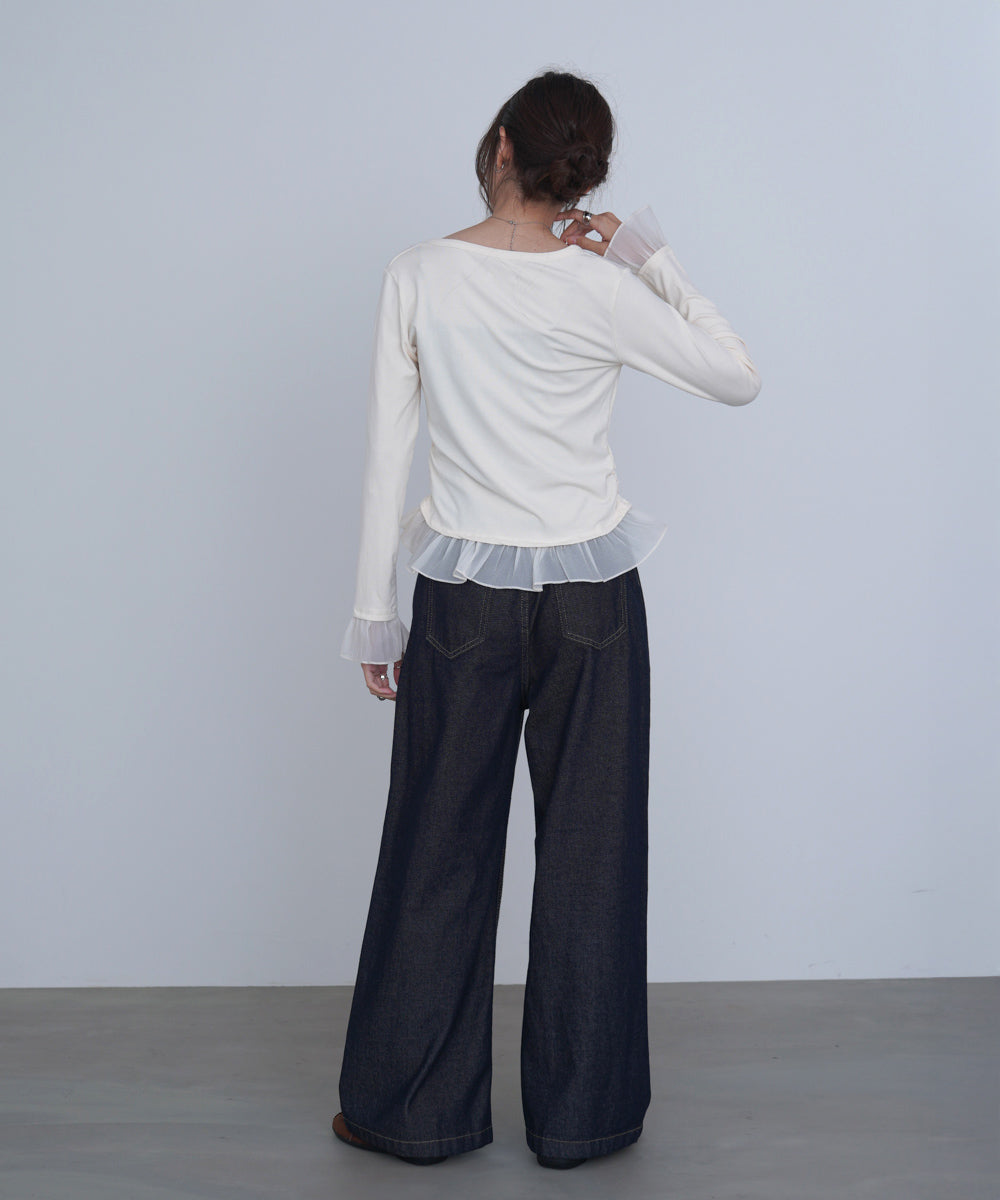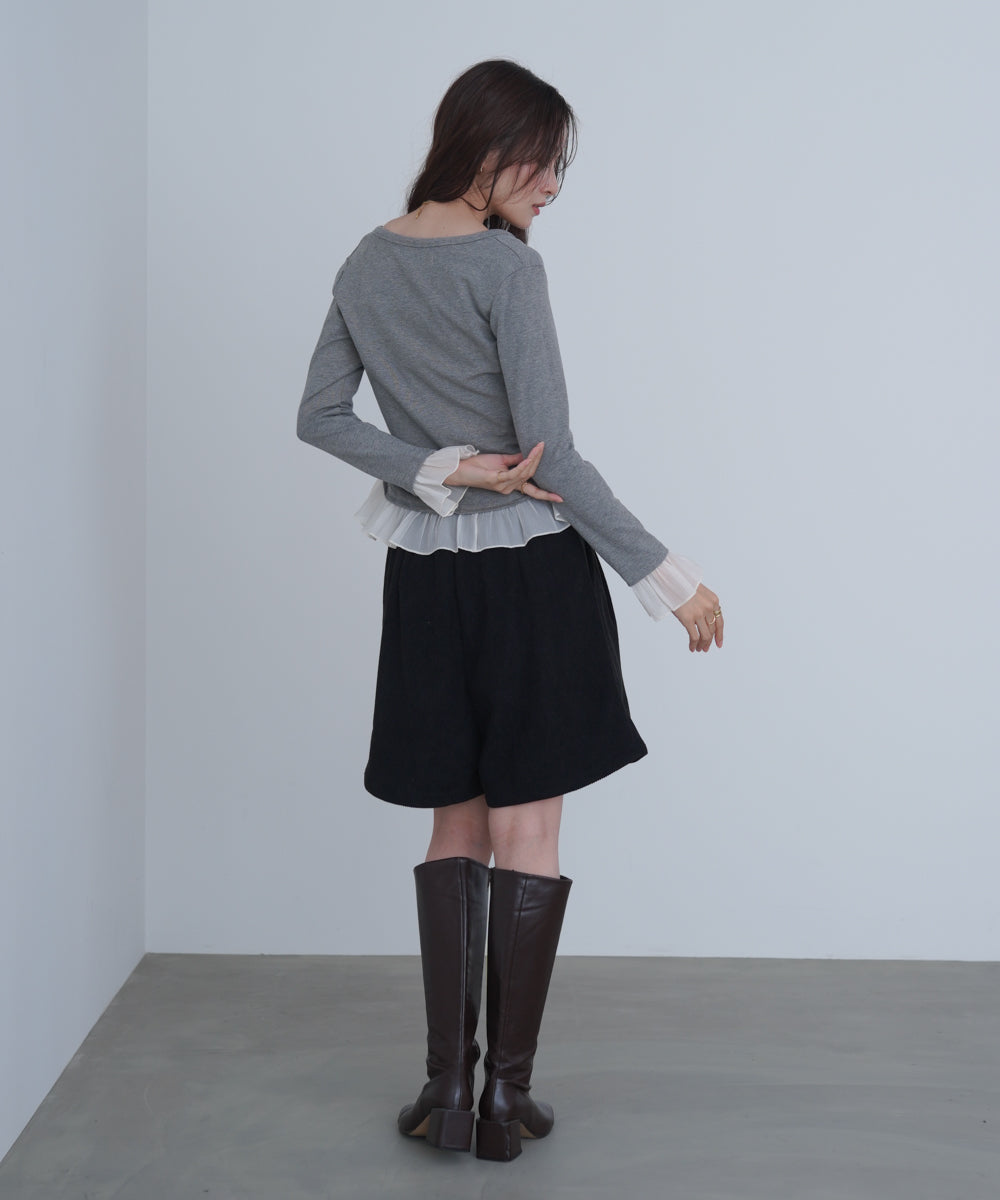 【選べるネック】チュールレイヤードリブニット