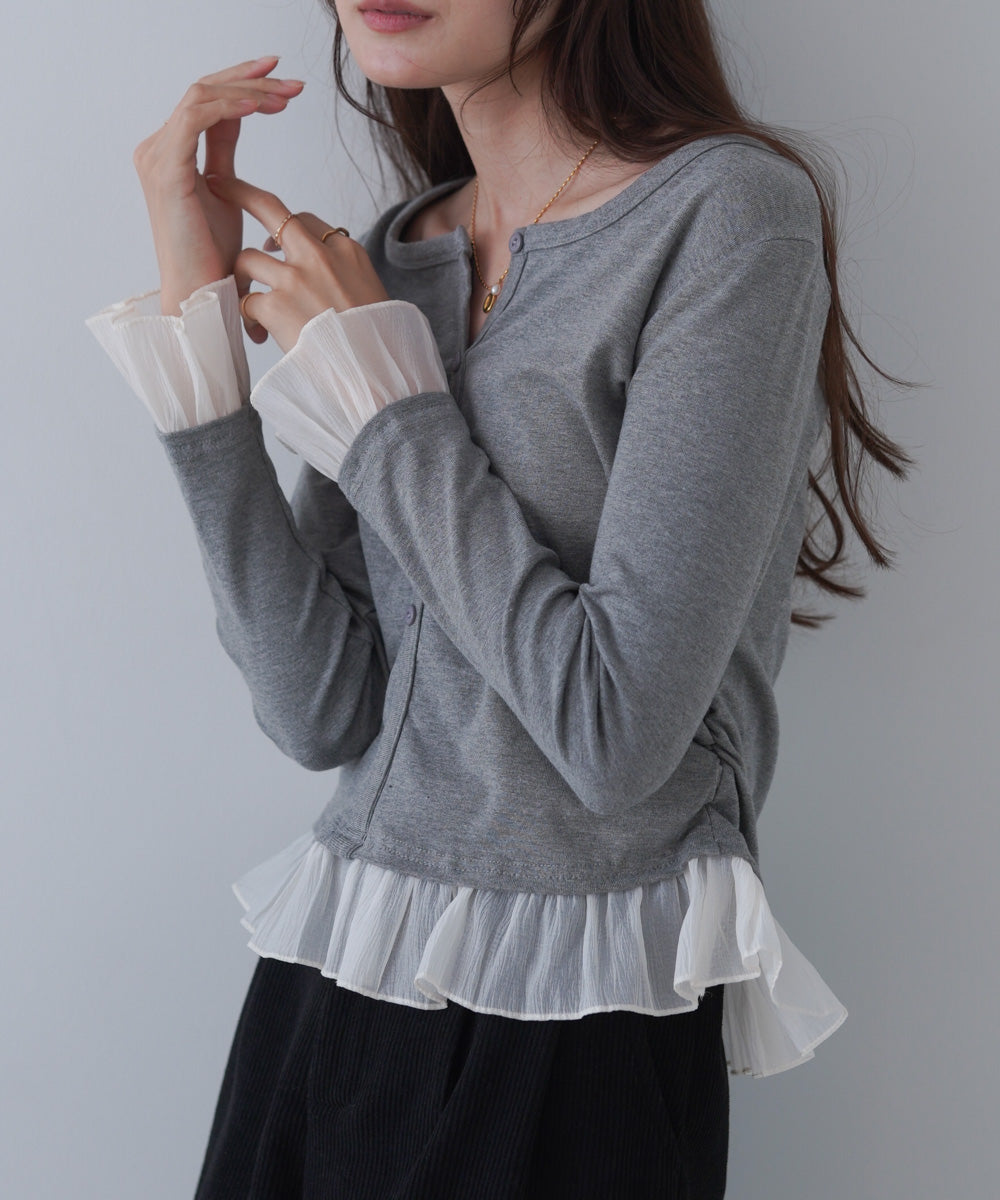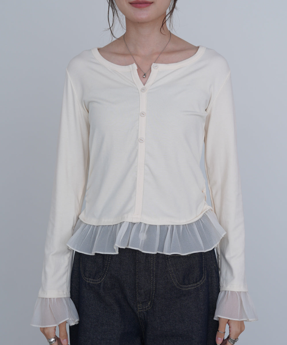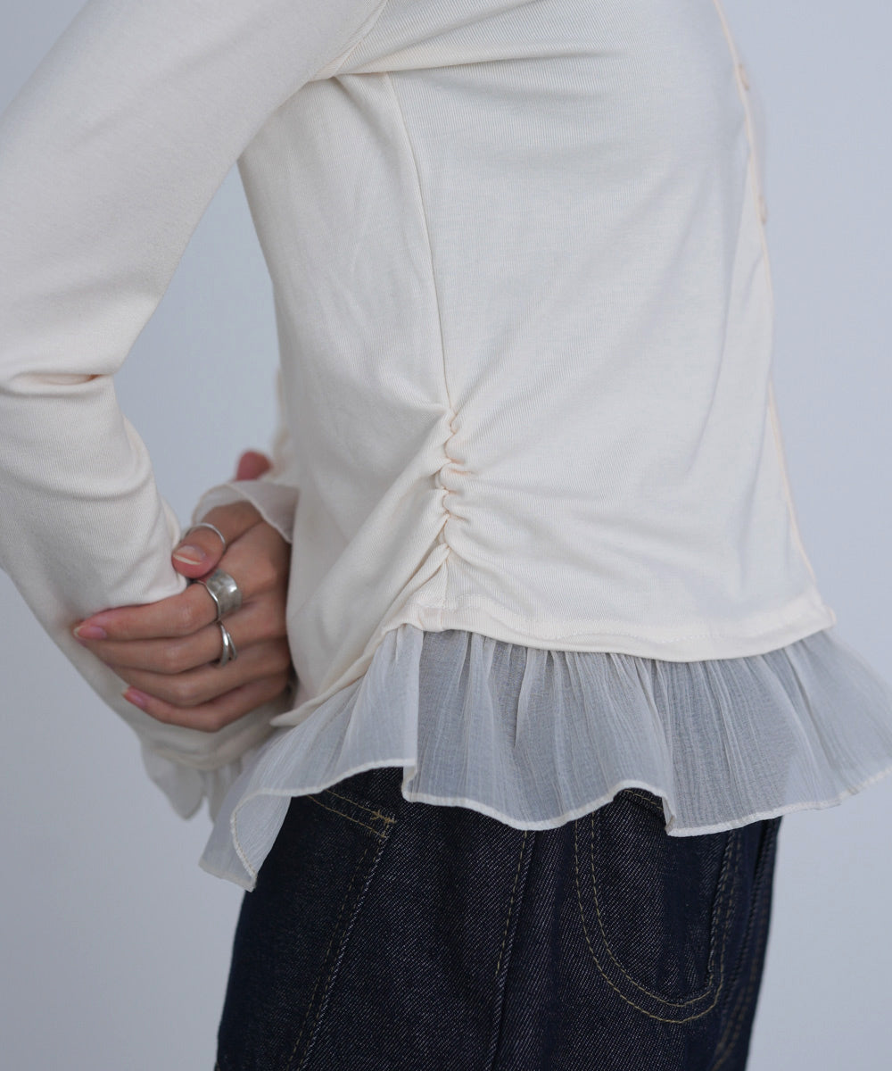 裾フリルヘンリーネックカットソー