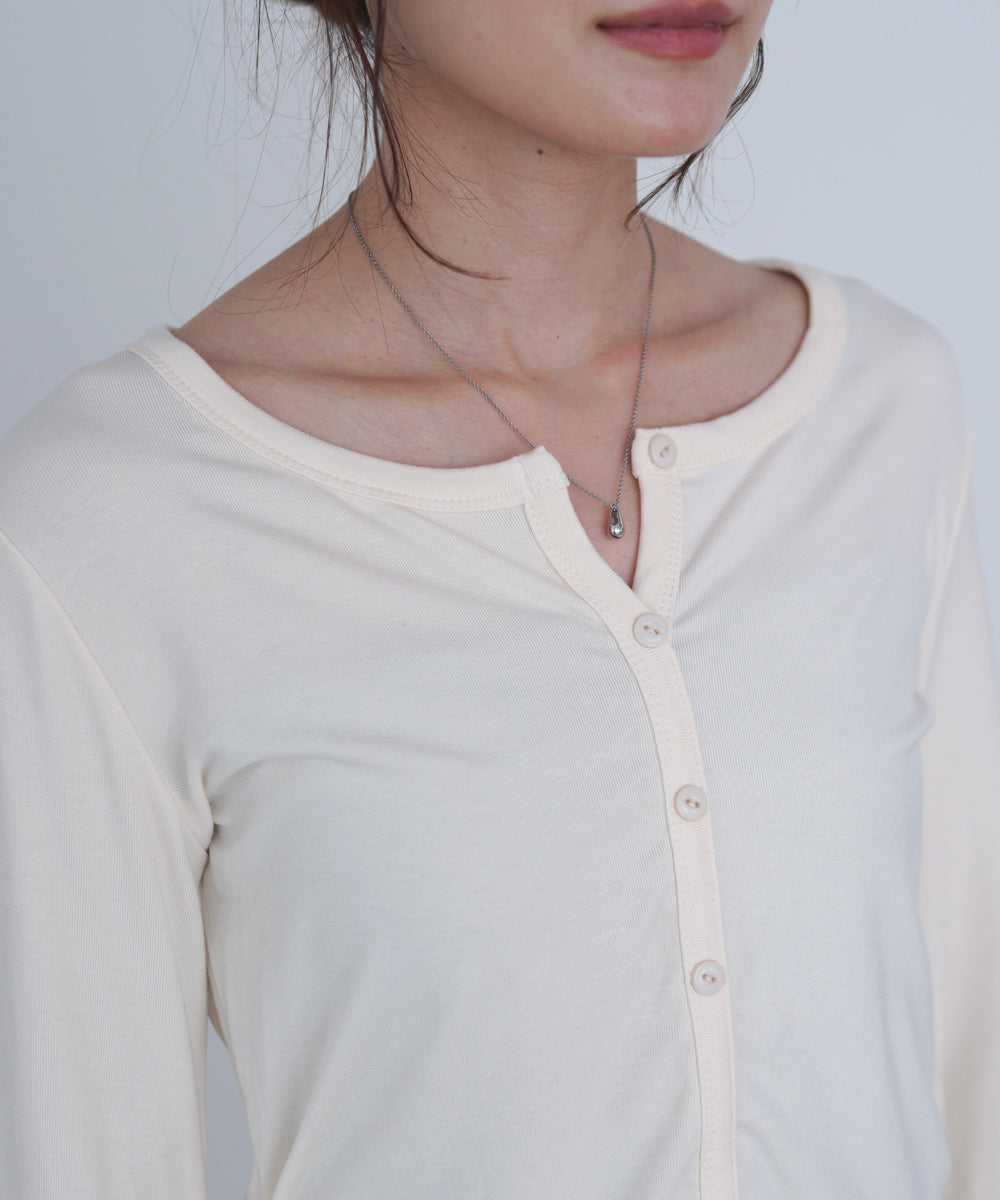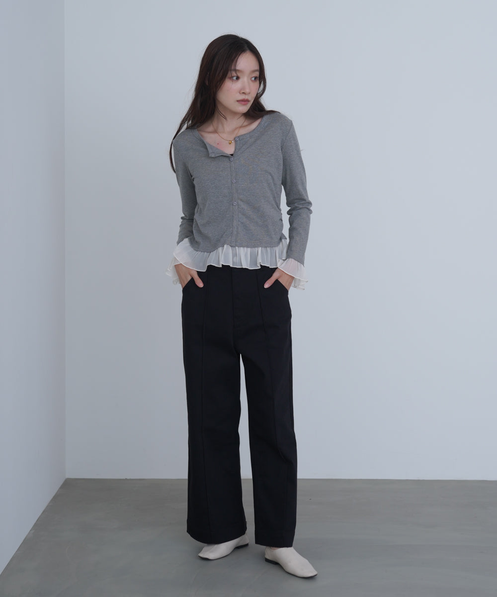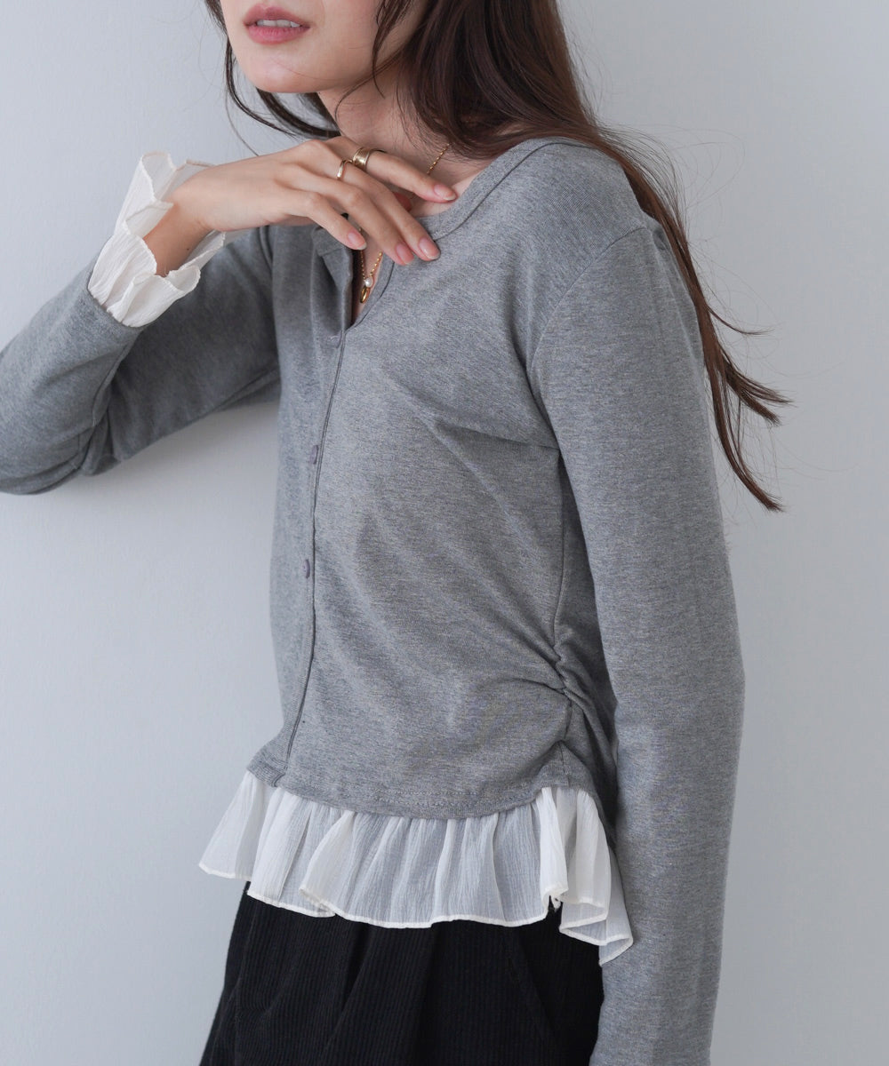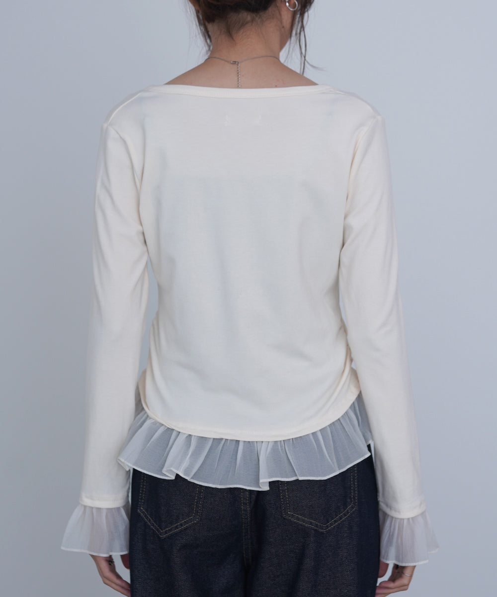 裾フリルヘンリーネックカットソー