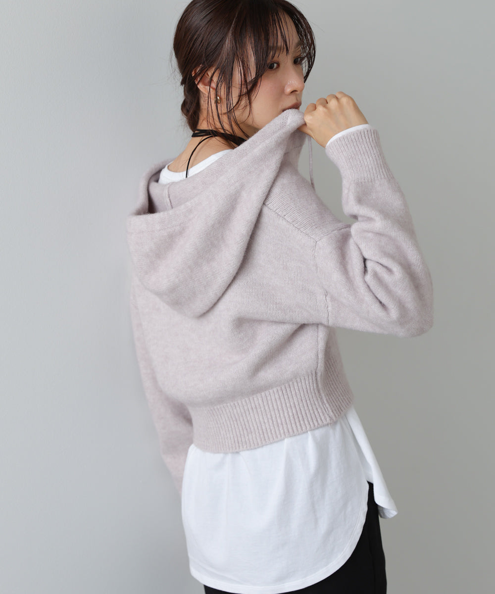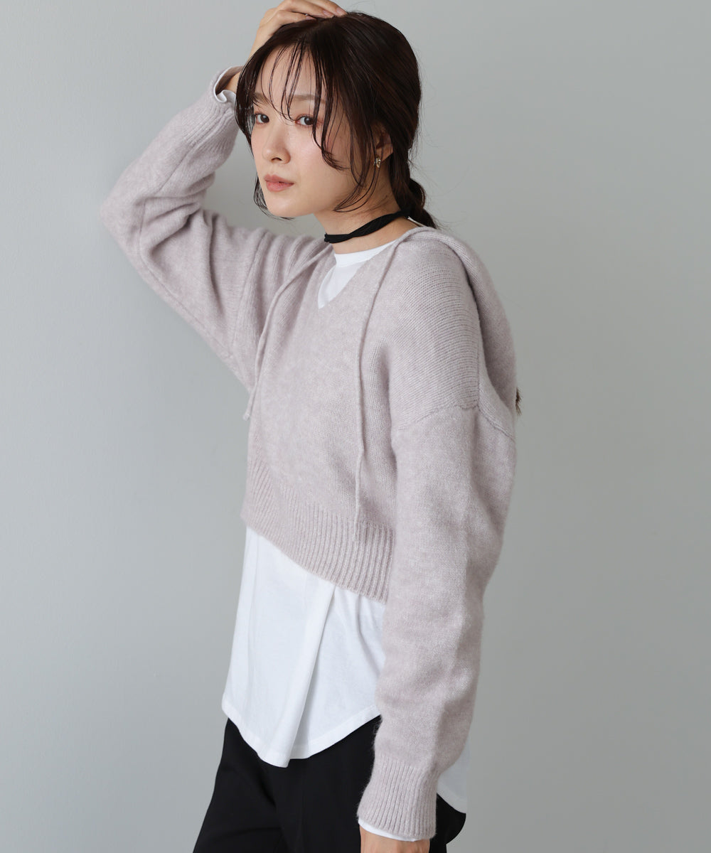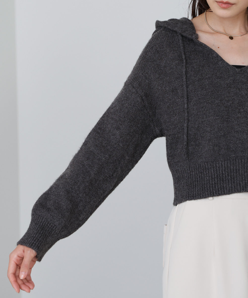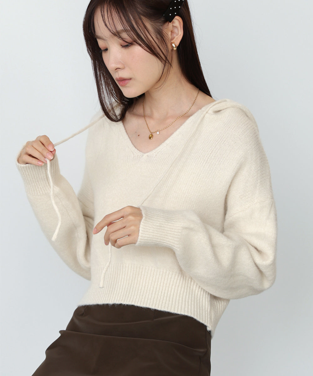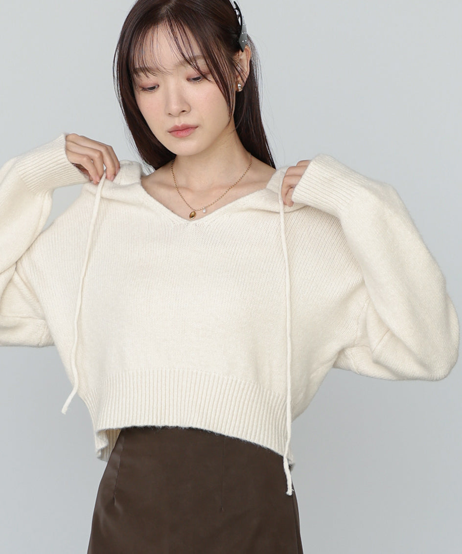 ショートフーディーニットトップス