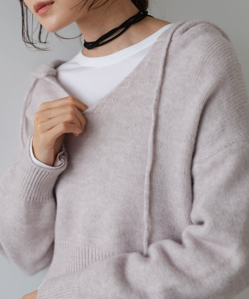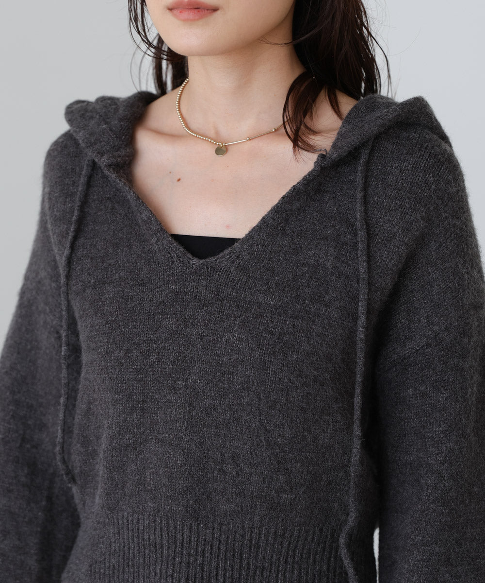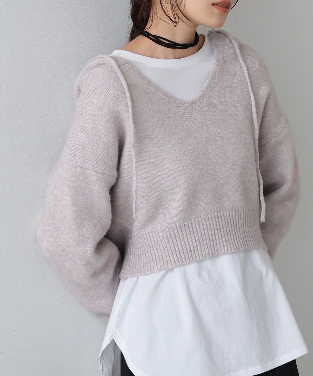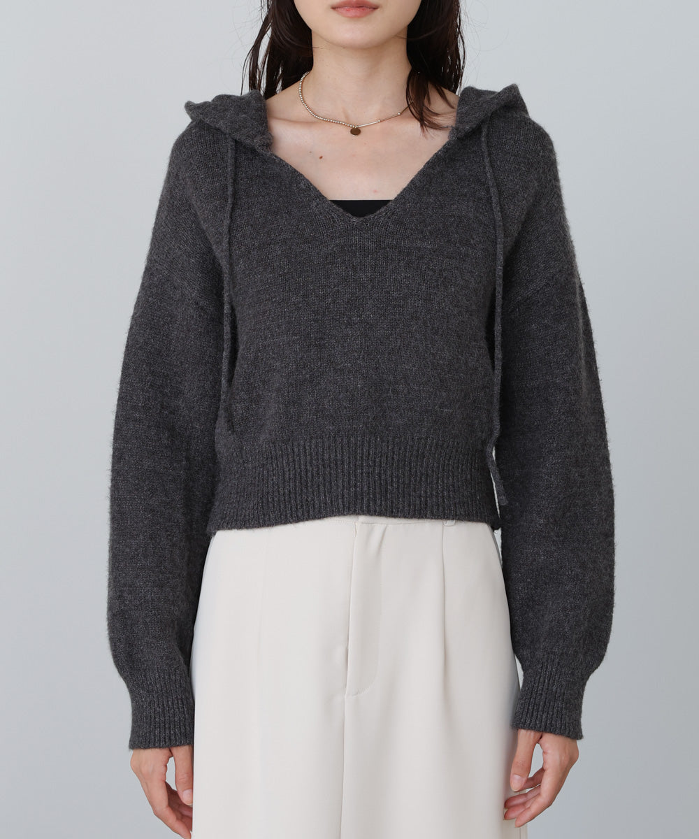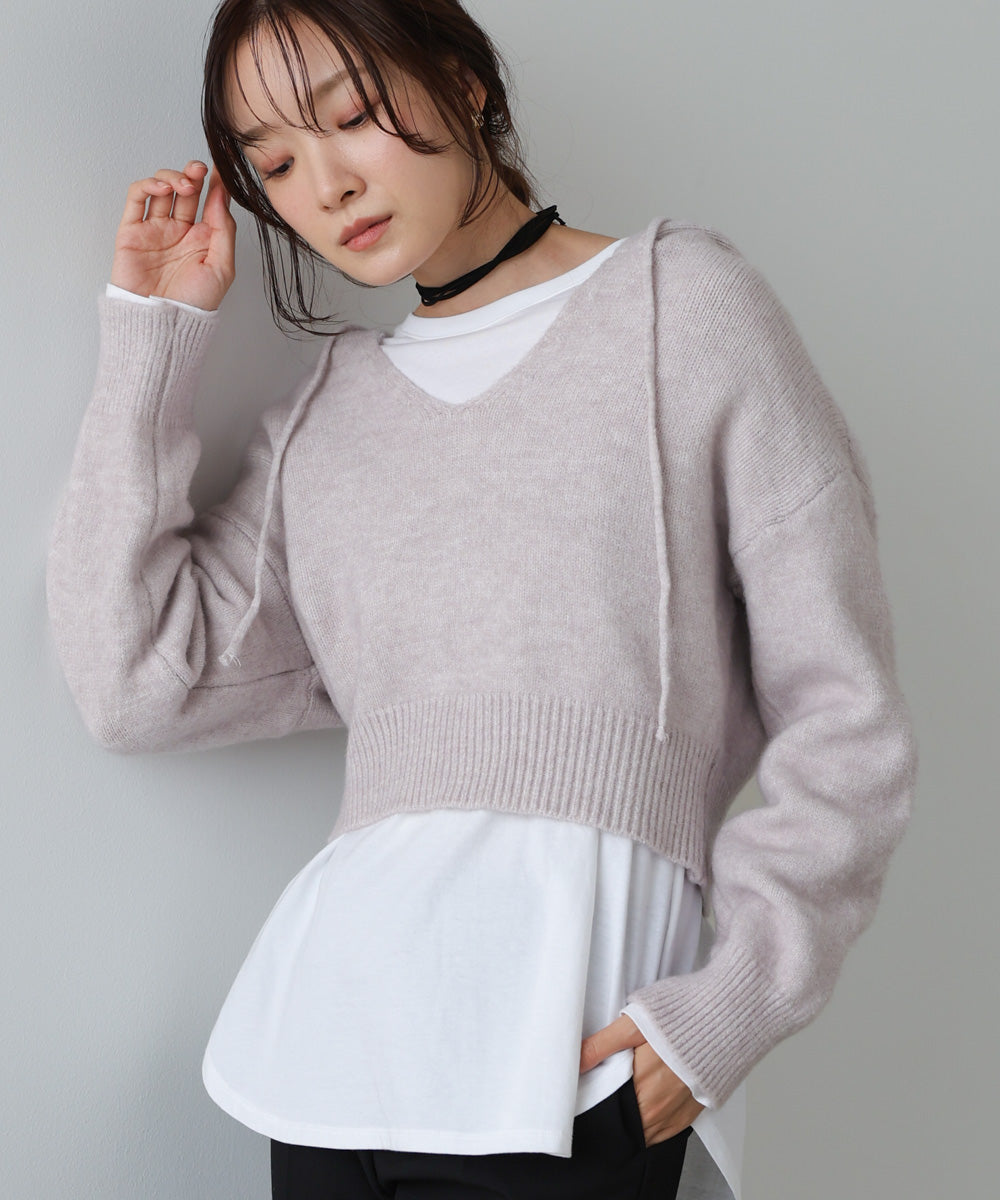 ショートフーディーニットトップス