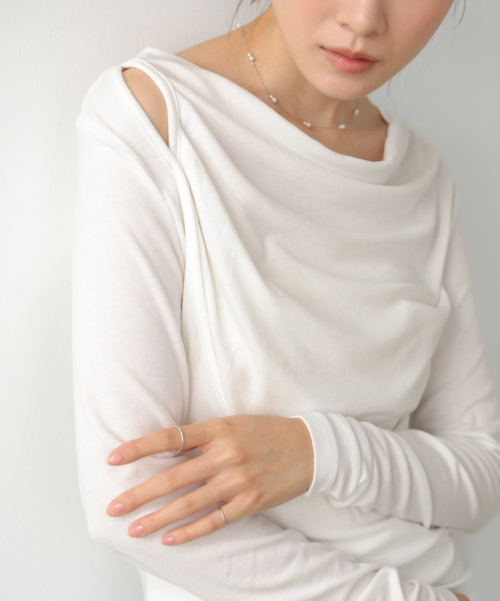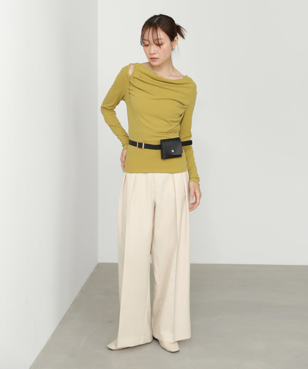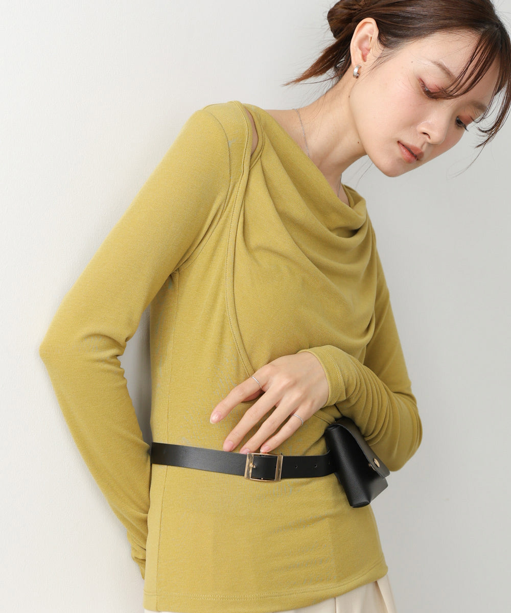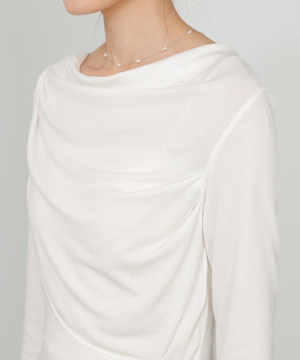 ハイウエストスラックスと合わせてきれいめにまとめれば、通勤にも対応できる上品スタイルに。デニムと合わせてカジュアルダウンすれば、程よく色っぽい大人カジュアルに仕上がります。タイトスカートと合わせて、ドレープを主役にした女性らしい着こなしもおすすめ。ジャケットのインナーとしても映えるので、ロングシーズン活躍してくれる一枚です。