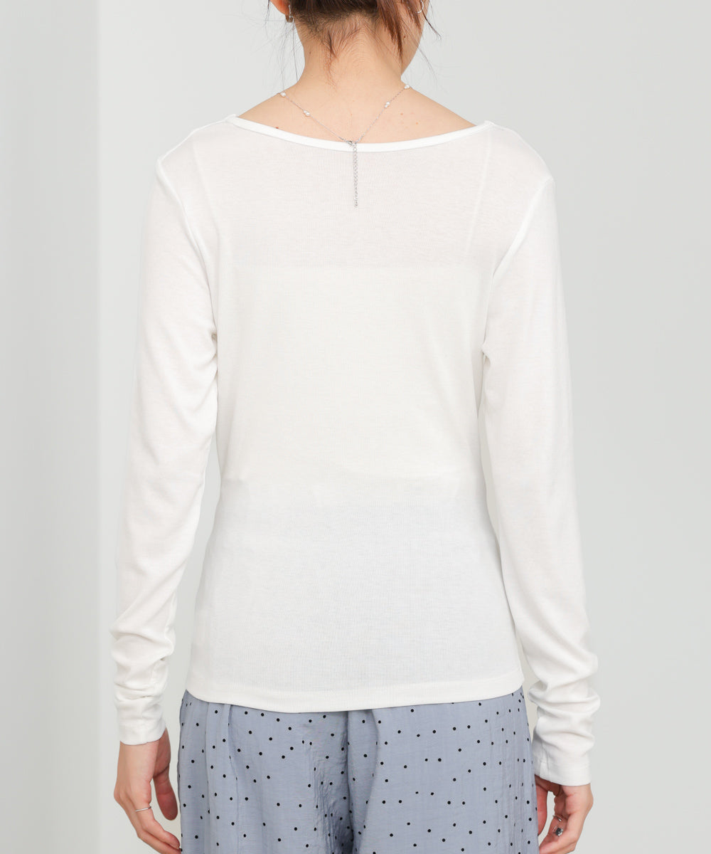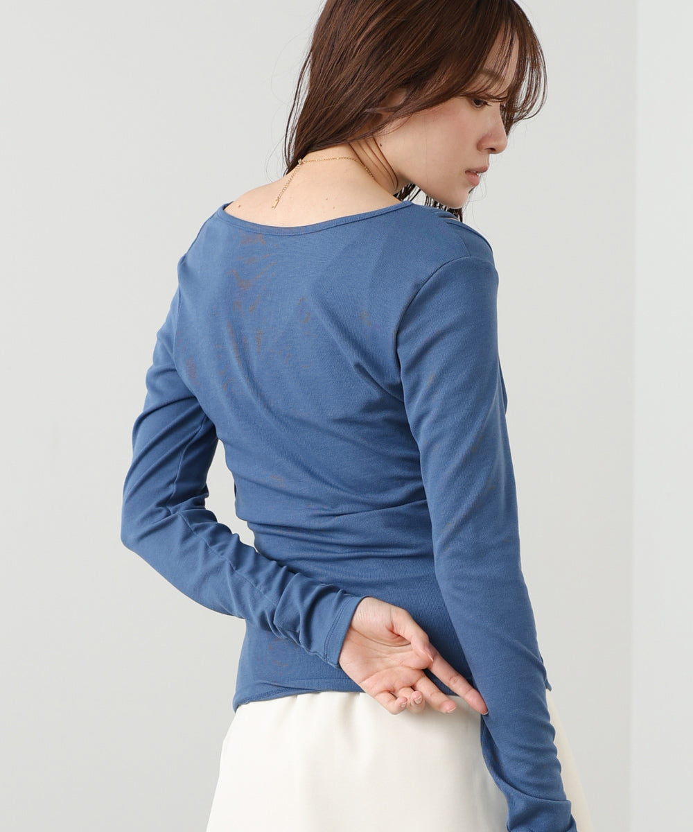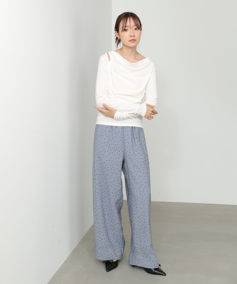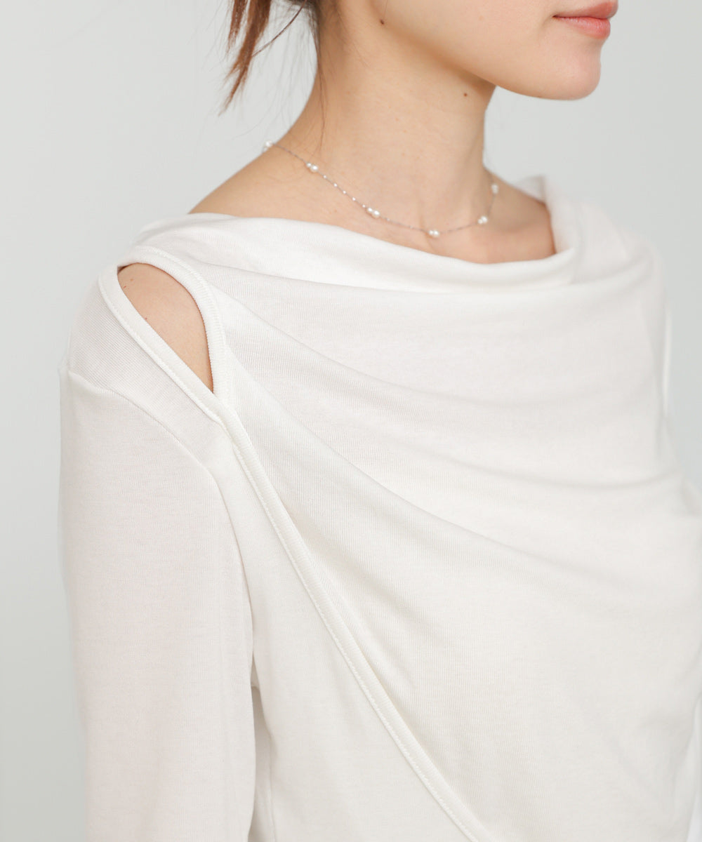 ハイウエストスラックスと合わせてきれいめにまとめれば、通勤にも対応できる上品スタイルに。デニムと合わせてカジュアルダウンすれば、程よく色っぽい大人カジュアルに仕上がります。タイトスカートと合わせて、ドレープを主役にした女性らしい着こなしもおすすめ。ジャケットのインナーとしても映えるので、ロングシーズン活躍してくれる一枚です。