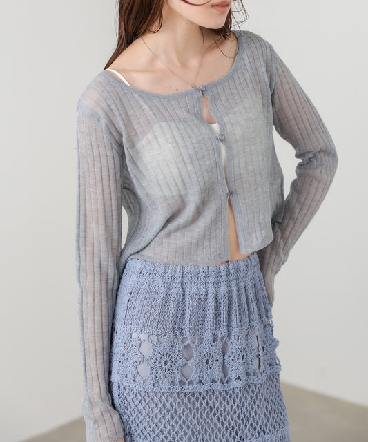 透かし編みニットカーディガン