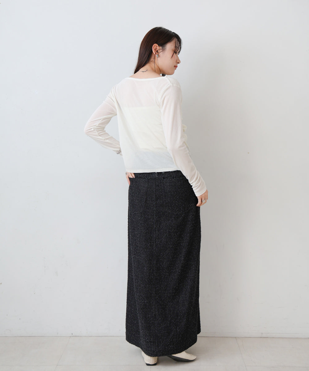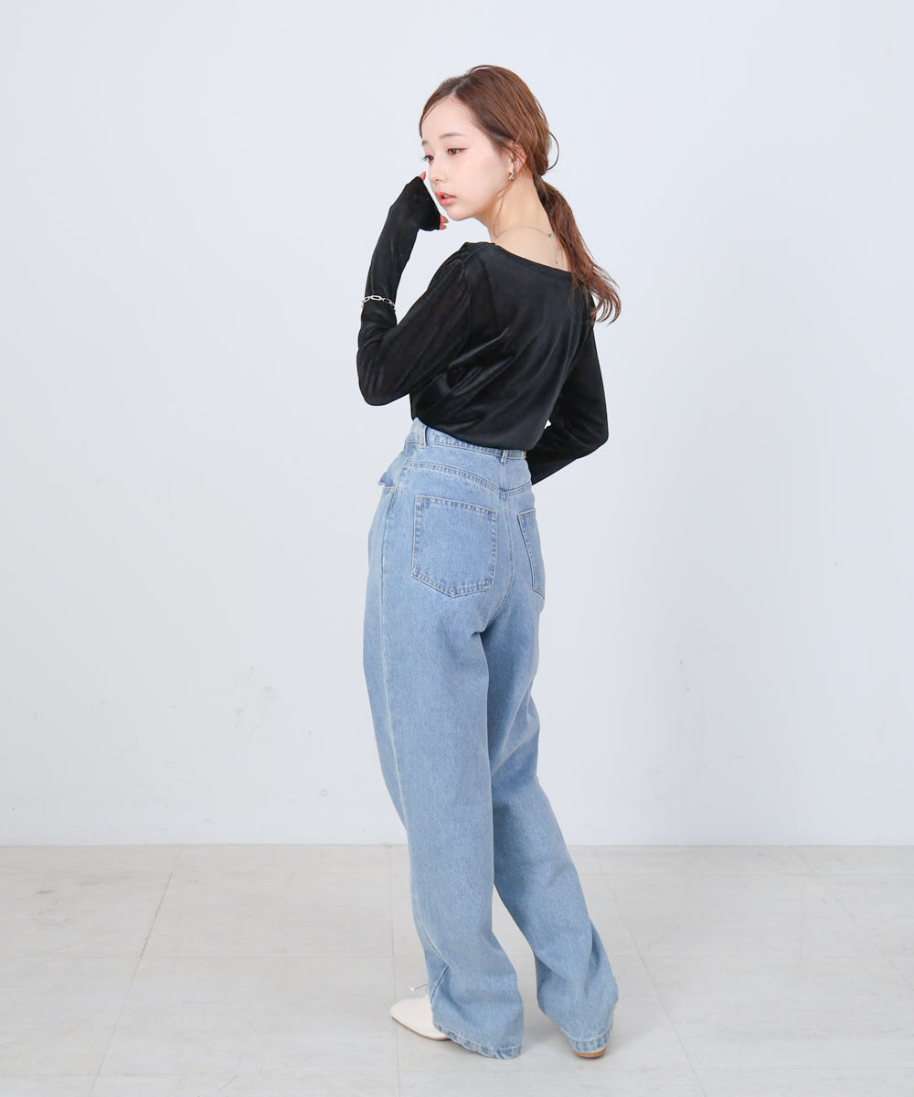 トップス自体が落ち感があるアイテムなのでデニムやサテンスカートとなどシンプルなアイテムと合わせるのがおすすめです!足元はバレエシューズやパンプスをあえて持ってくることでより秋らしくなります◎