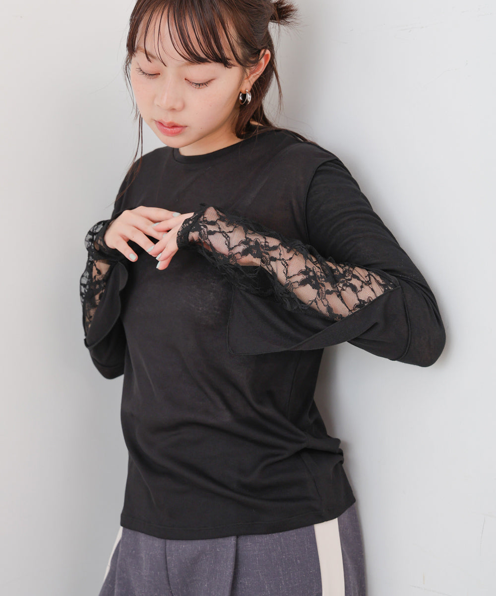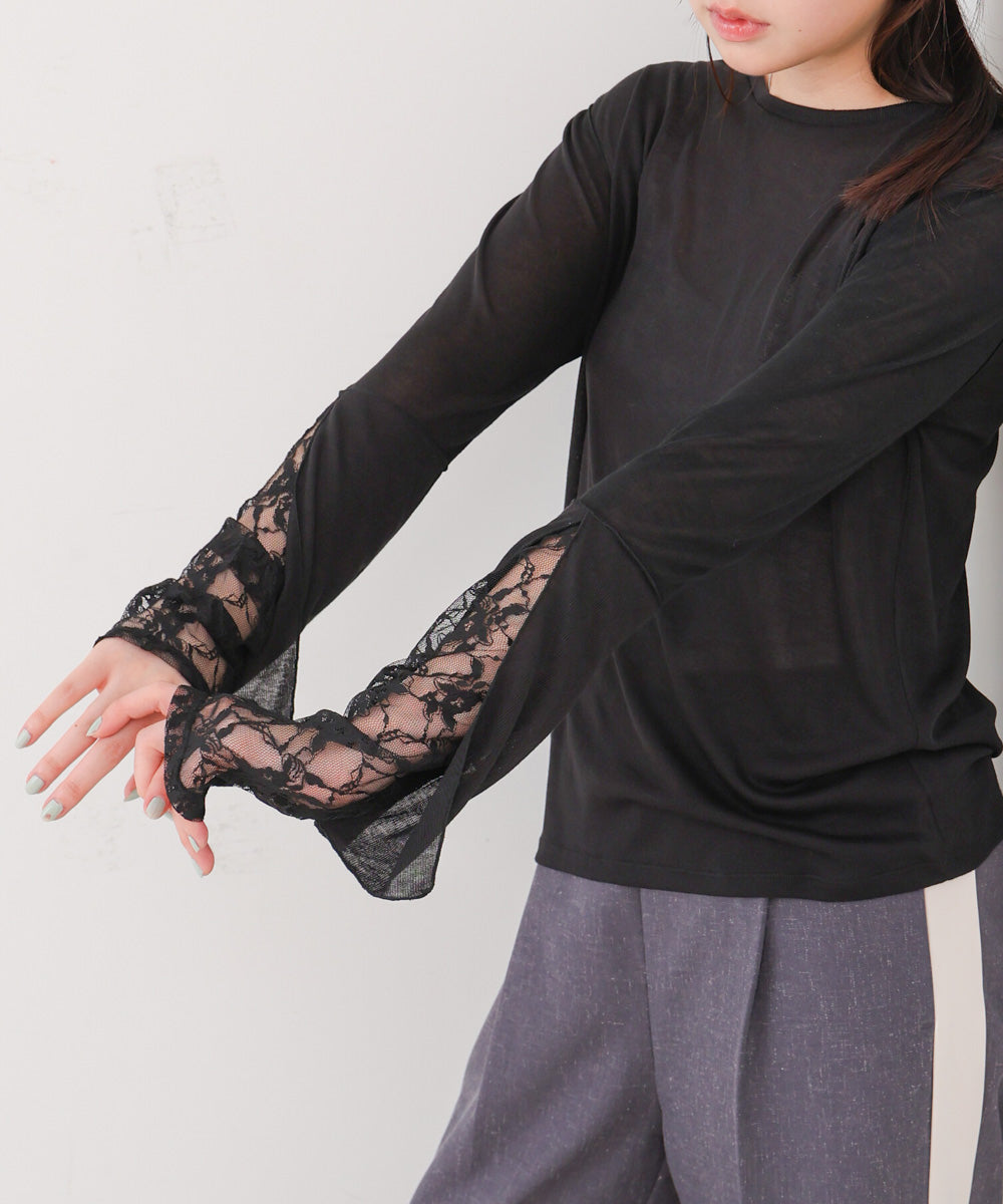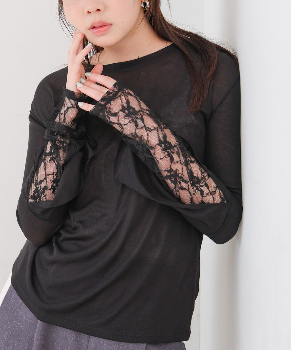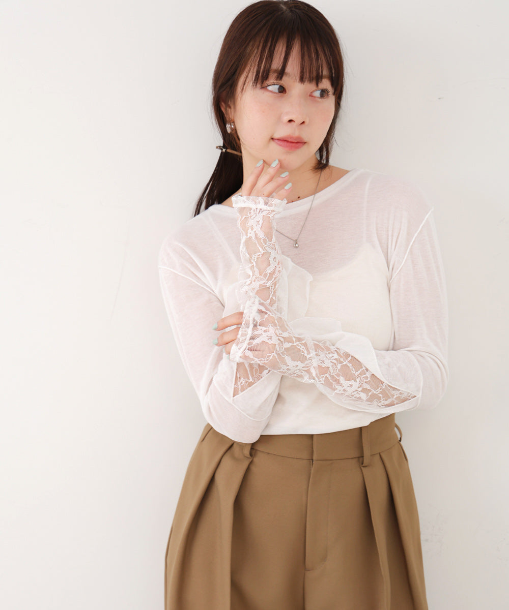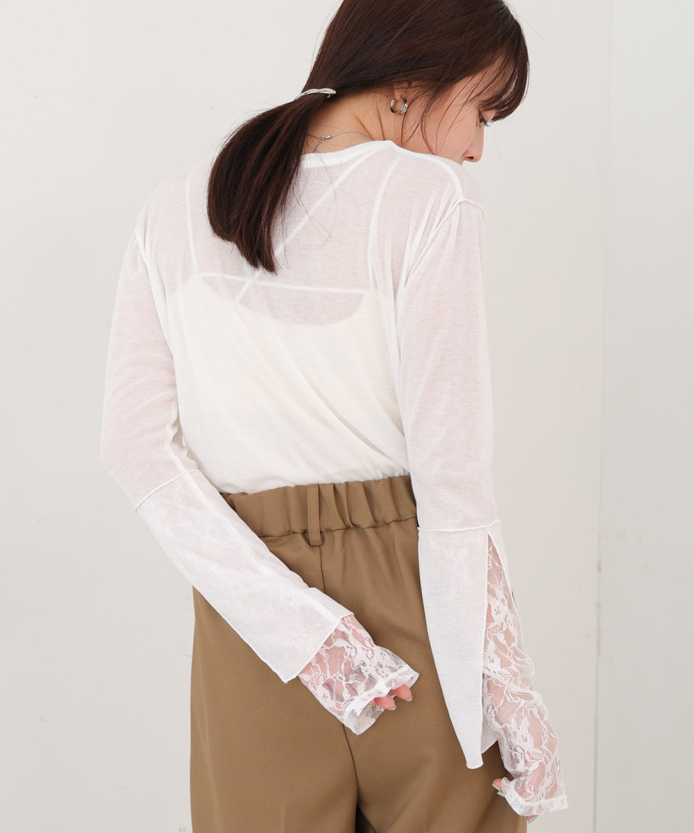 袖レースシアーリブレイヤードプルオーバー