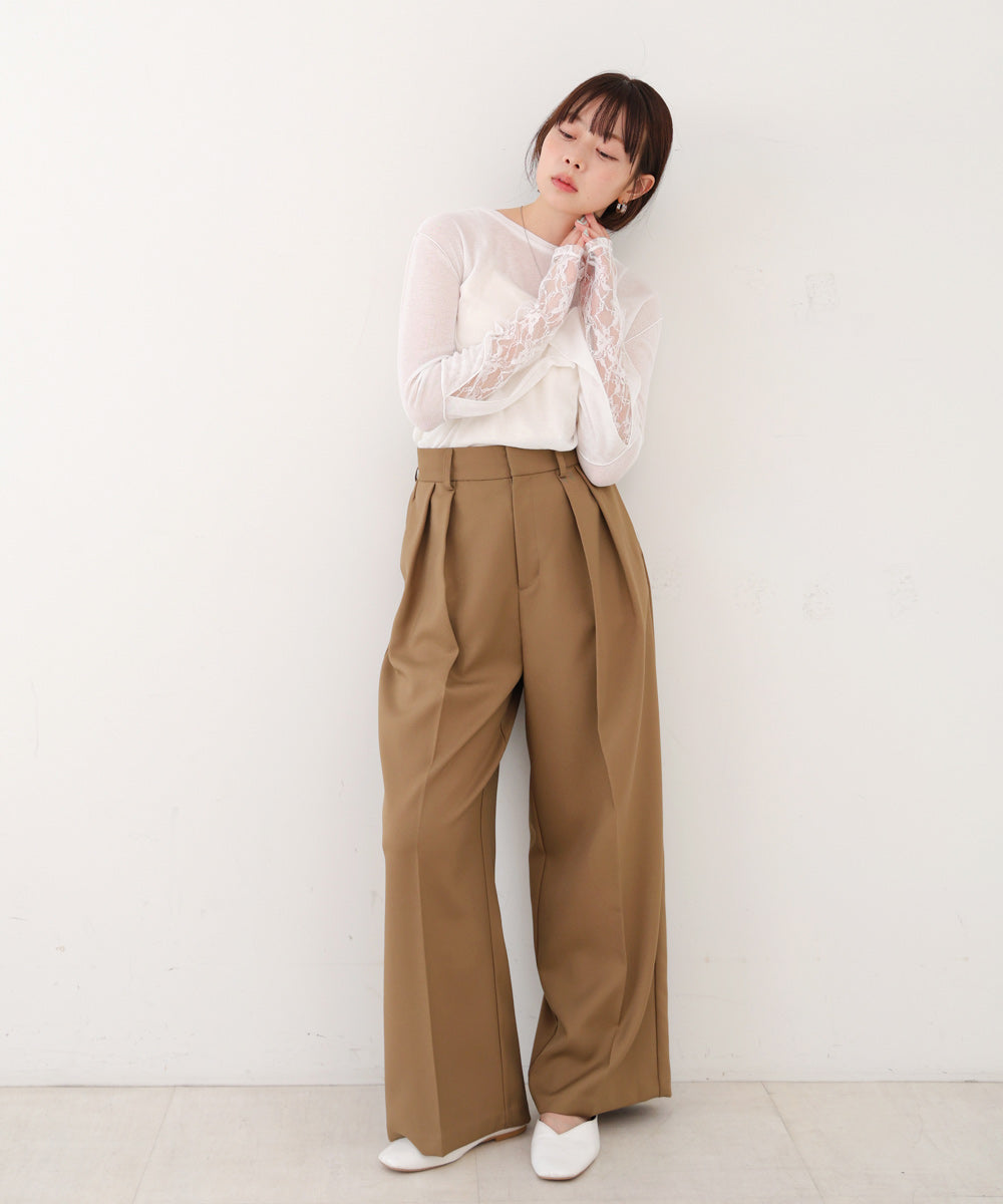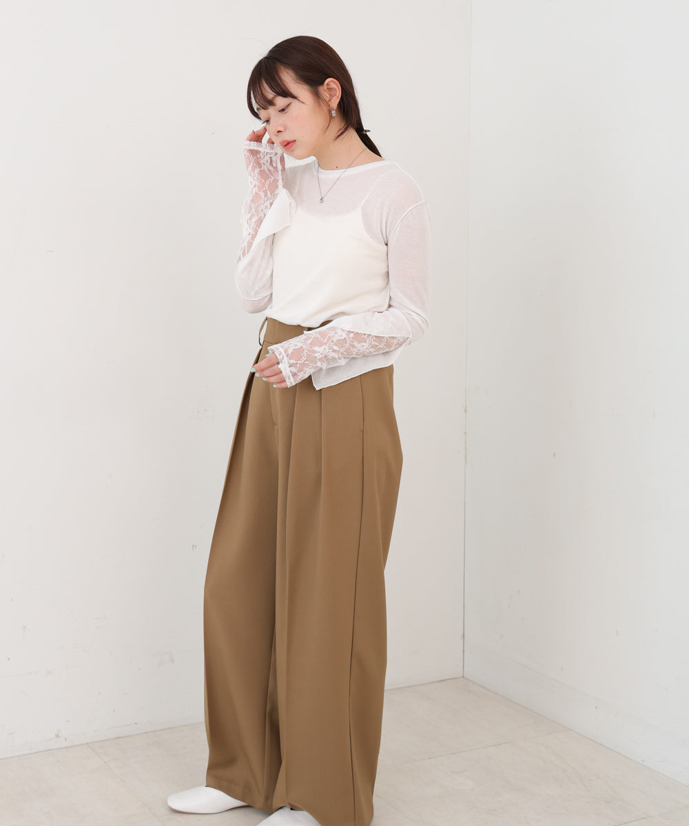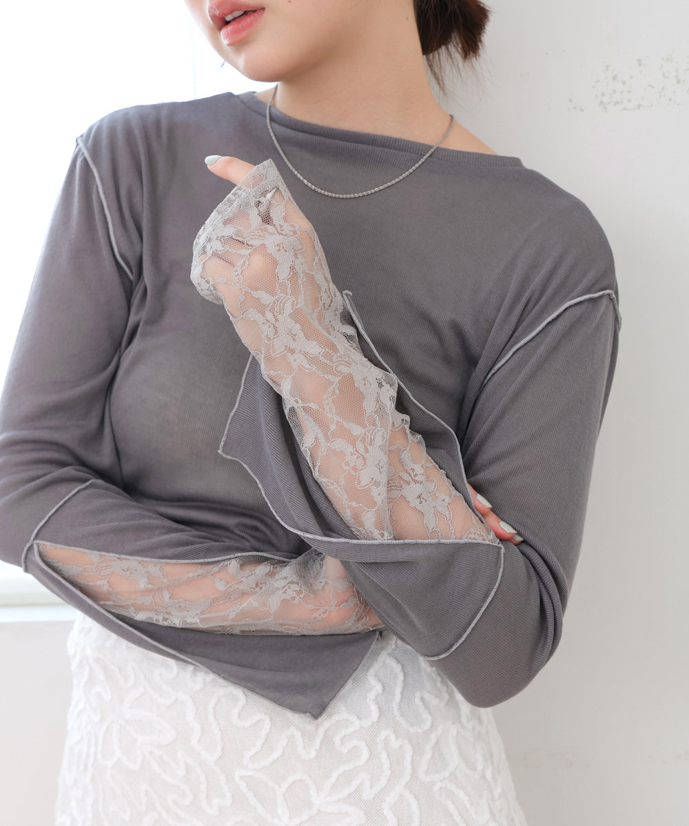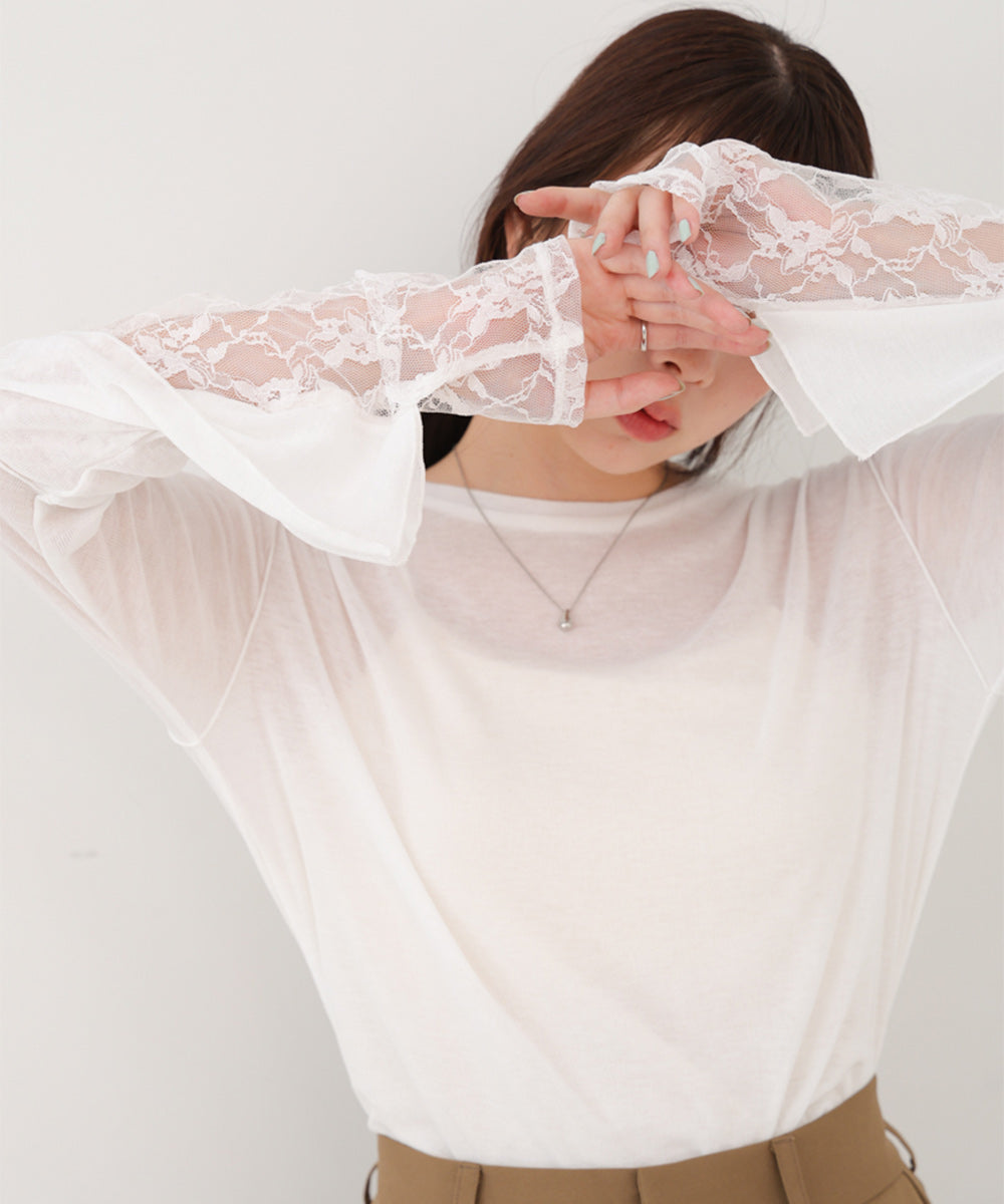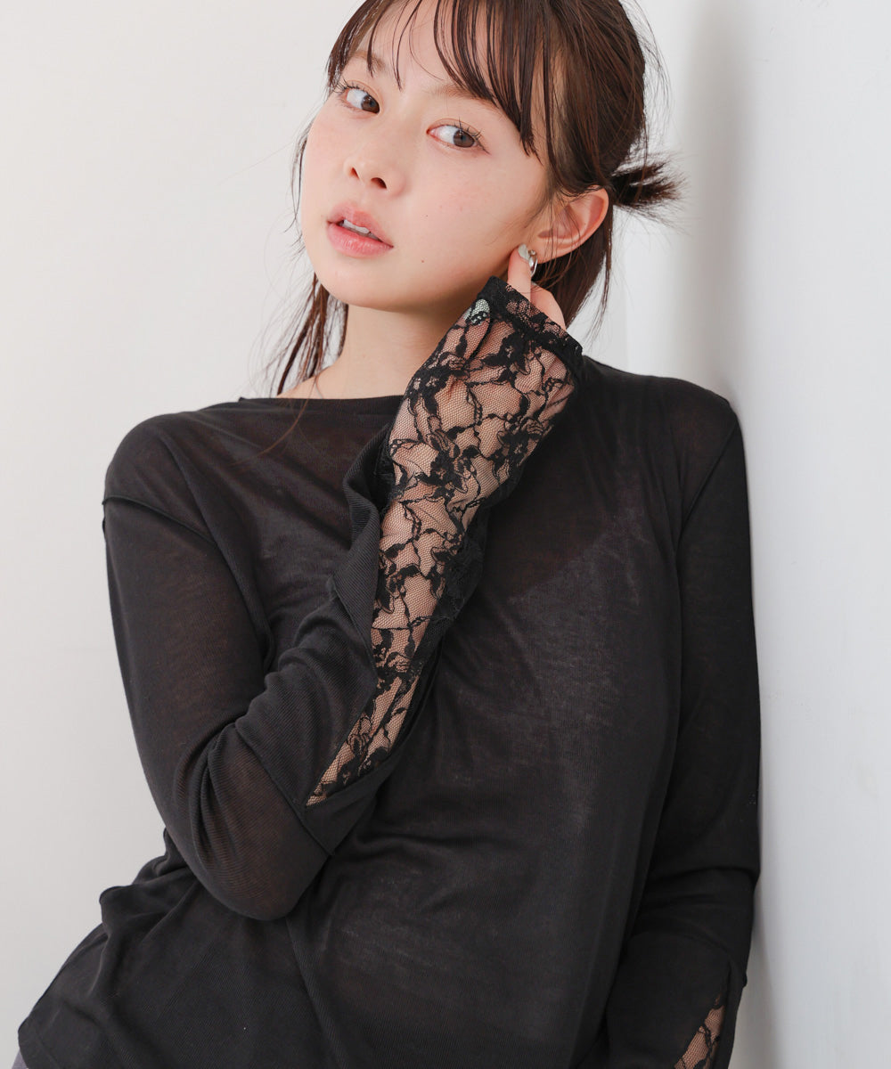 袖レースシアーリブレイヤードプルオーバー