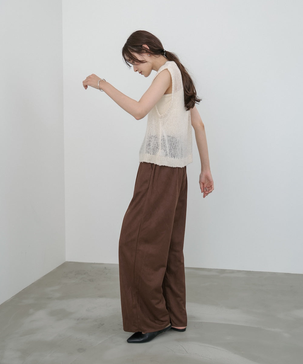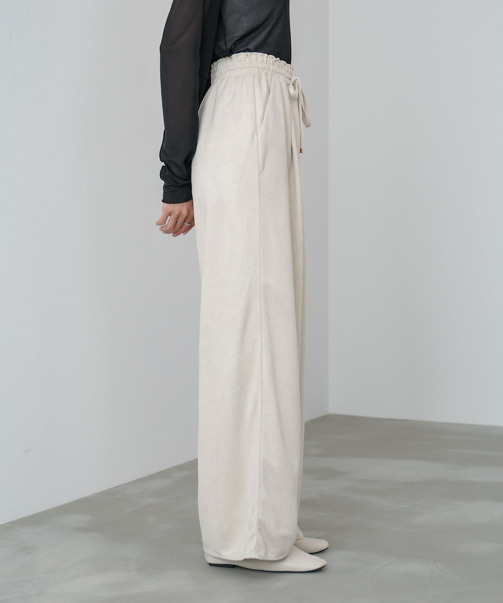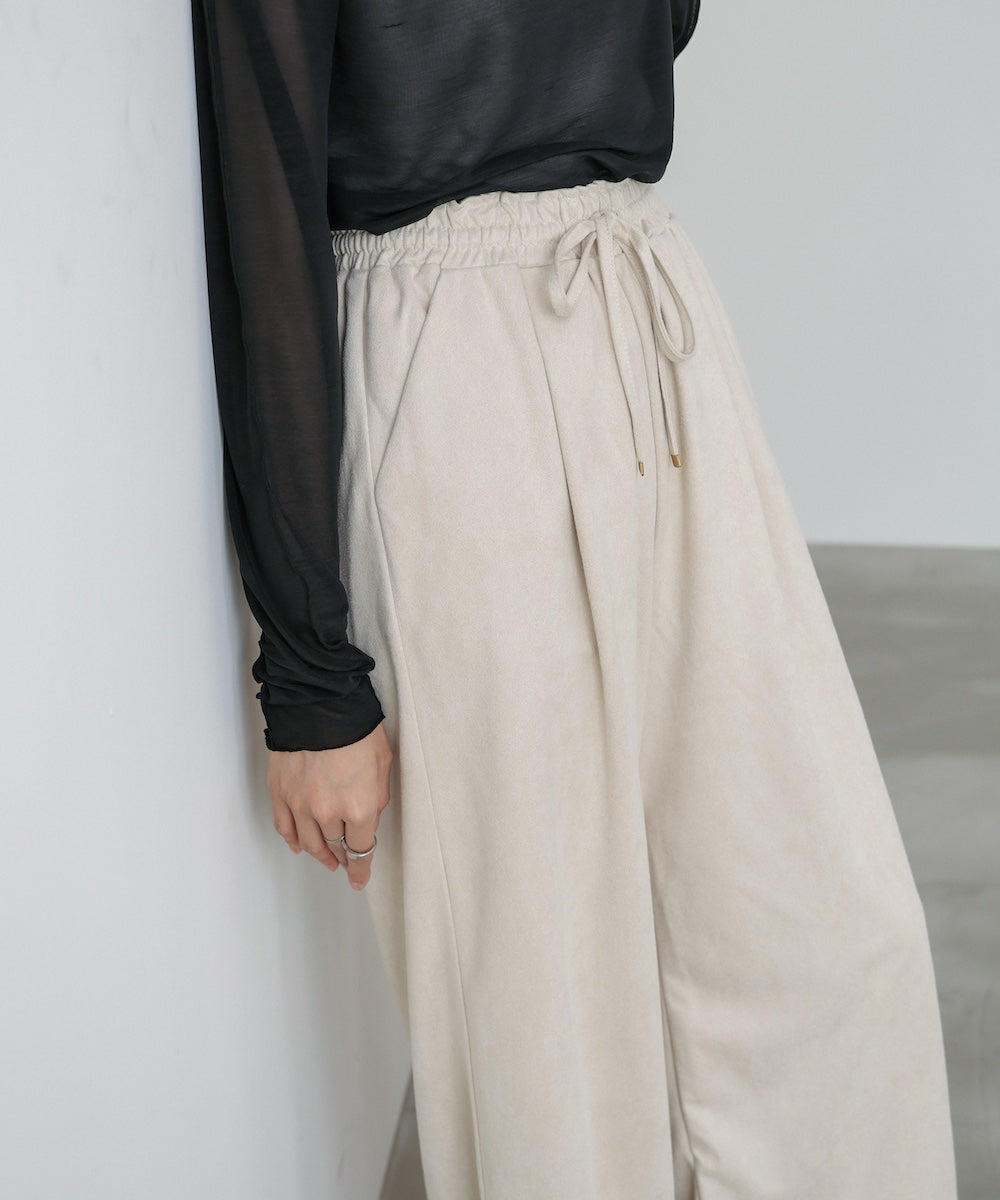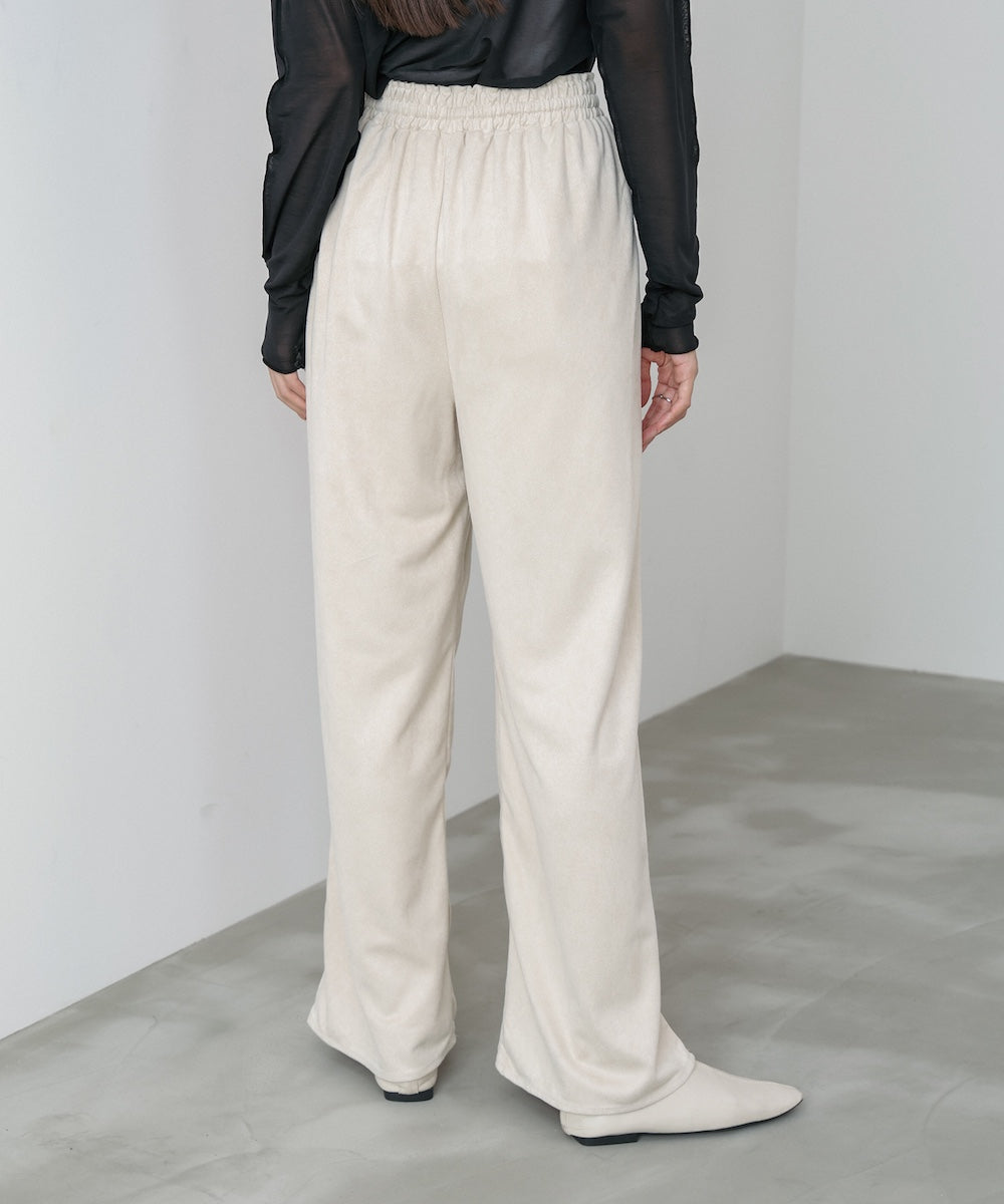 柔らかく伸縮性のあるパンツになっています。スエード特有のつや感もあります。