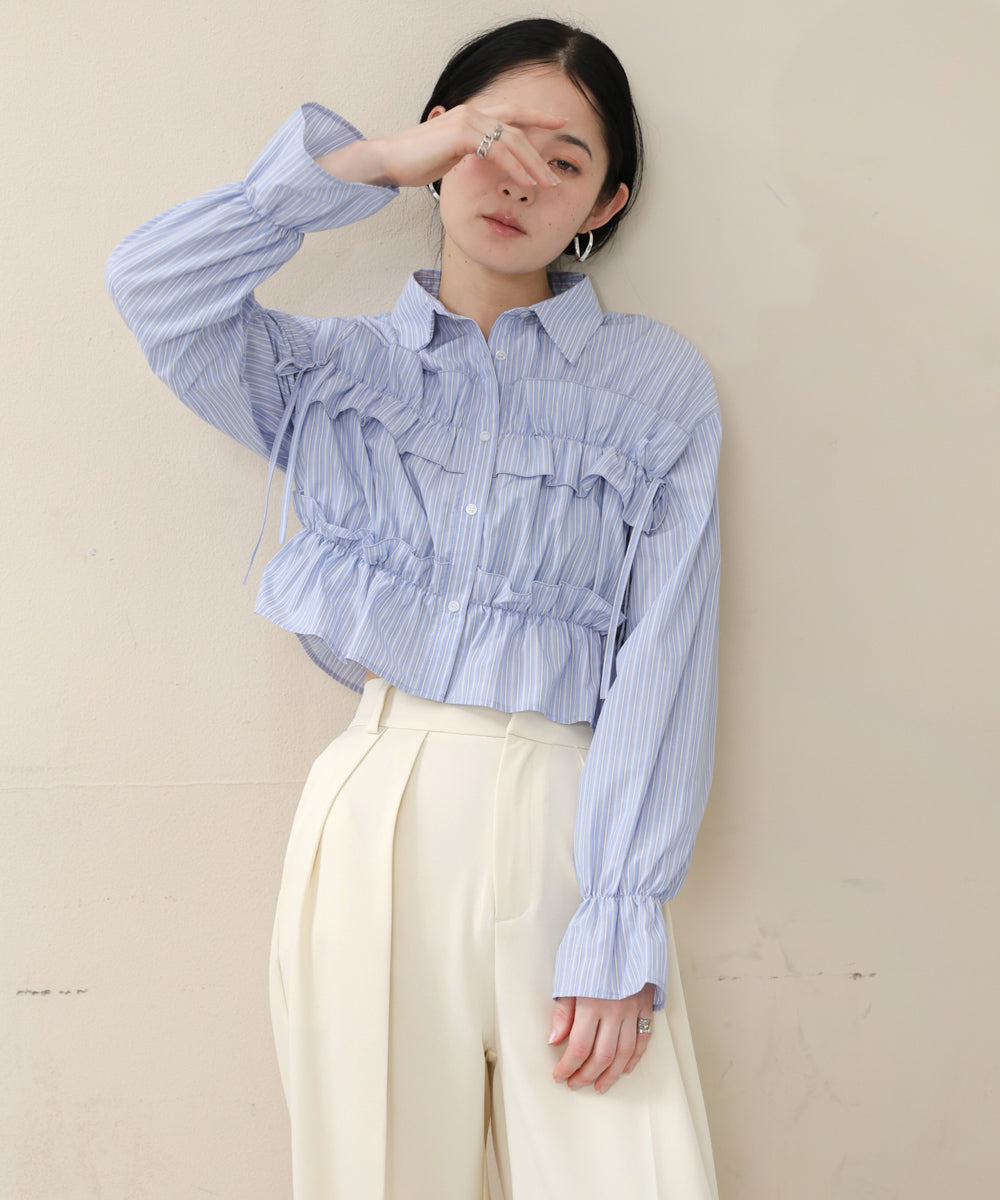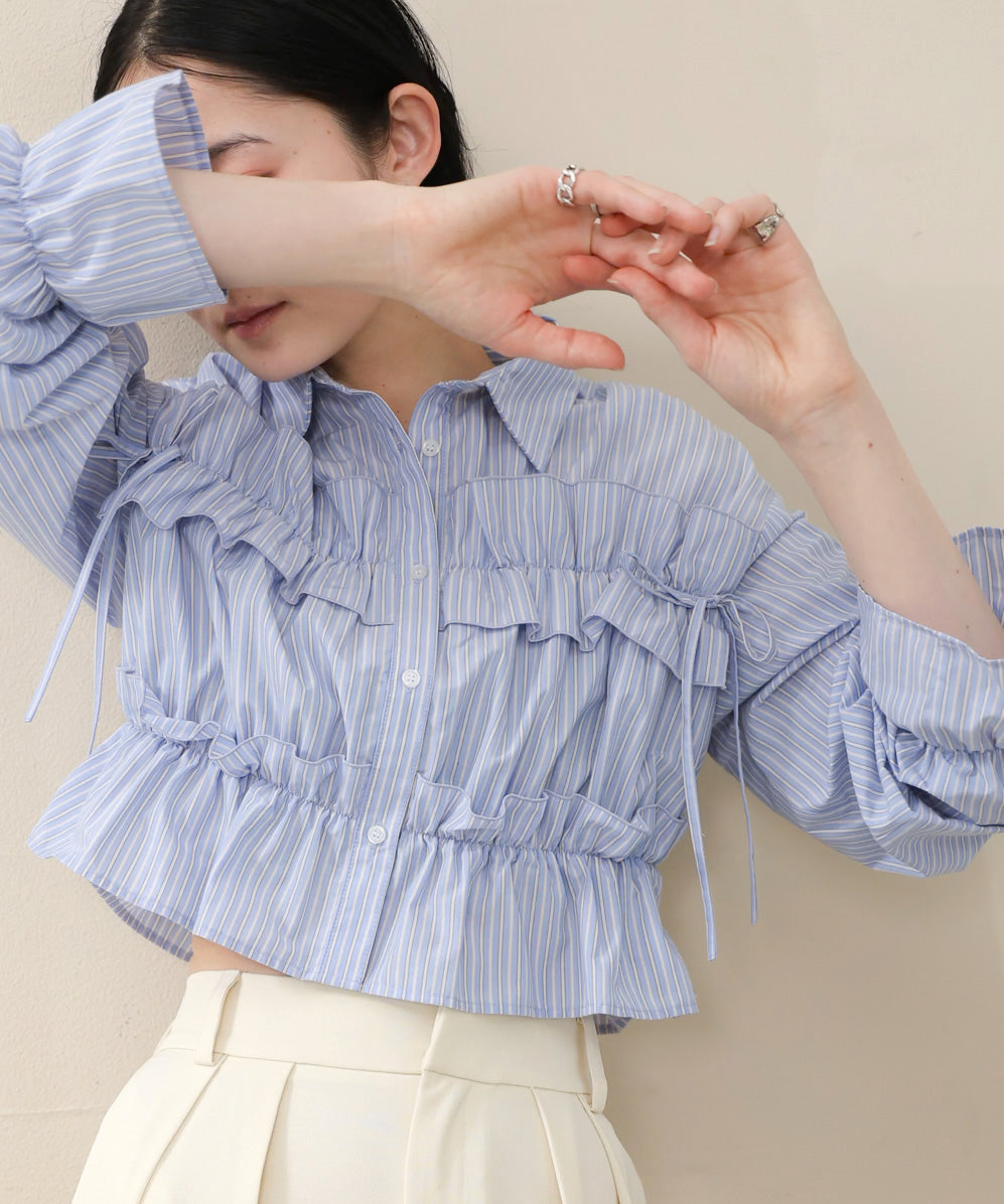 シャーリングリボンショートブラウス