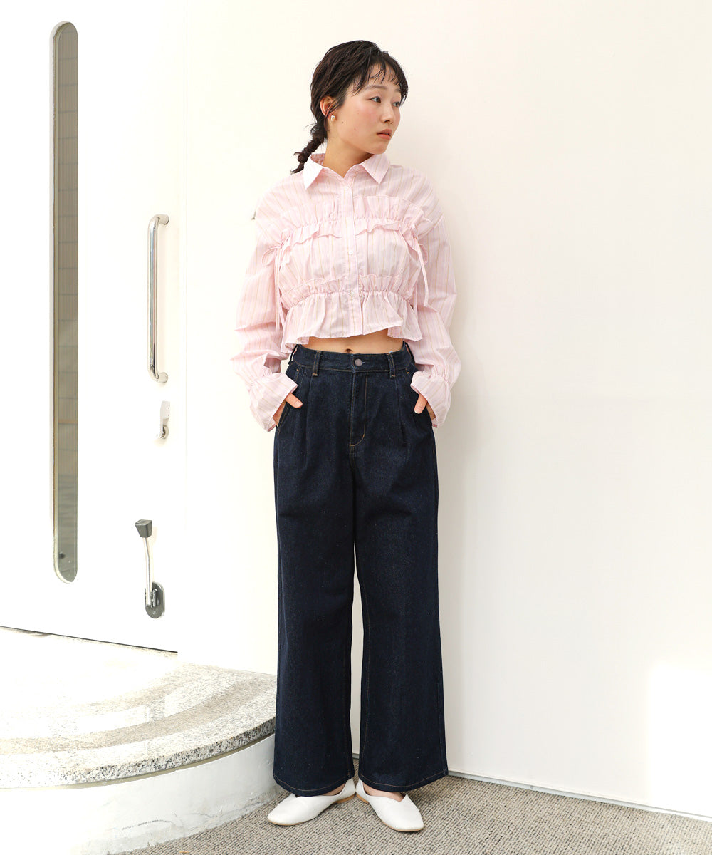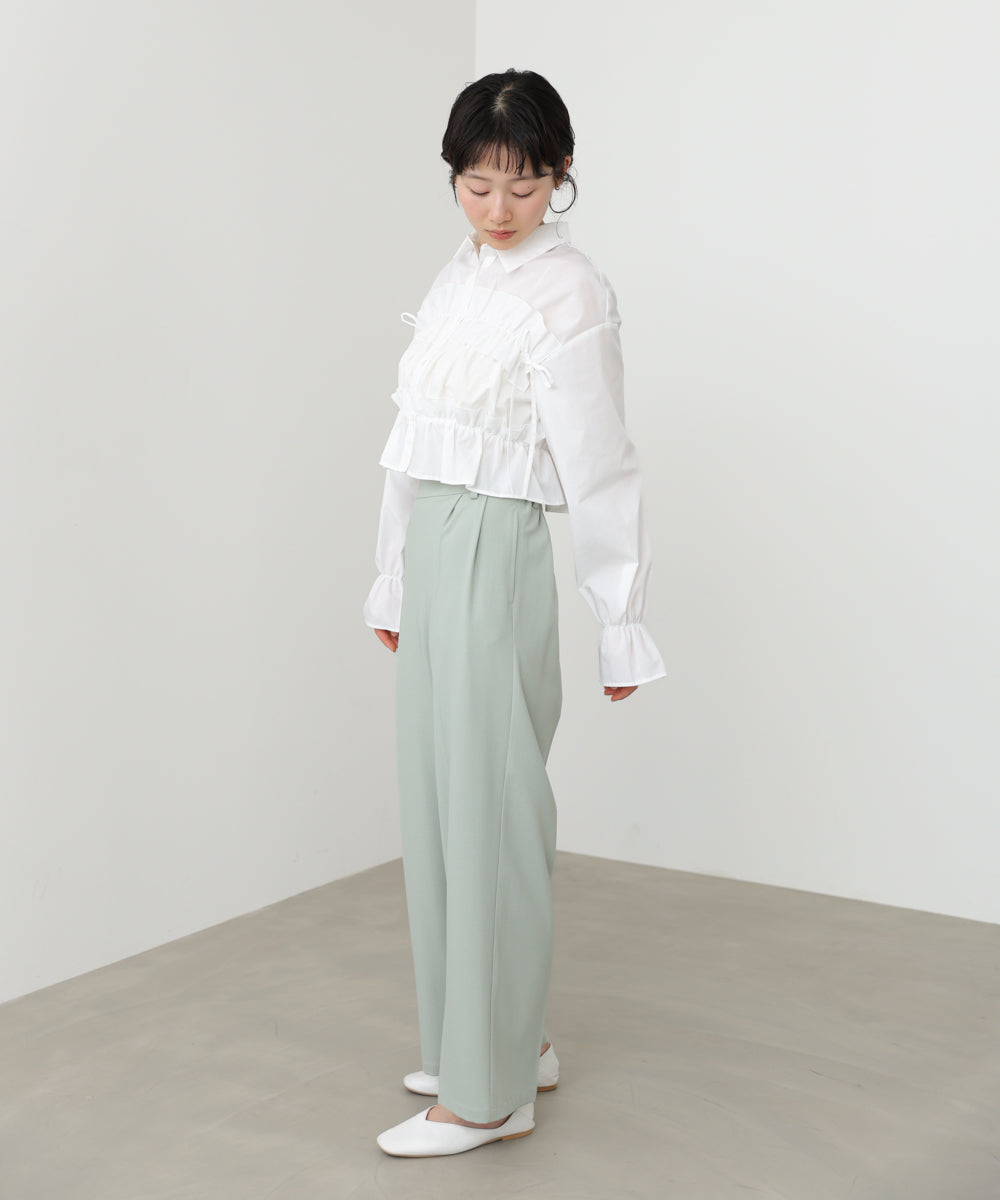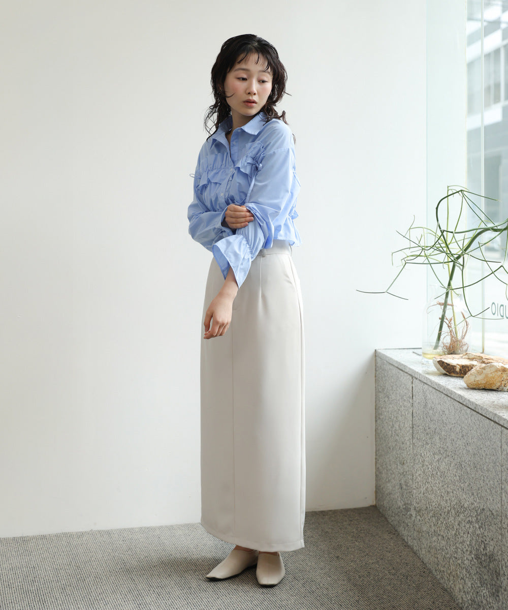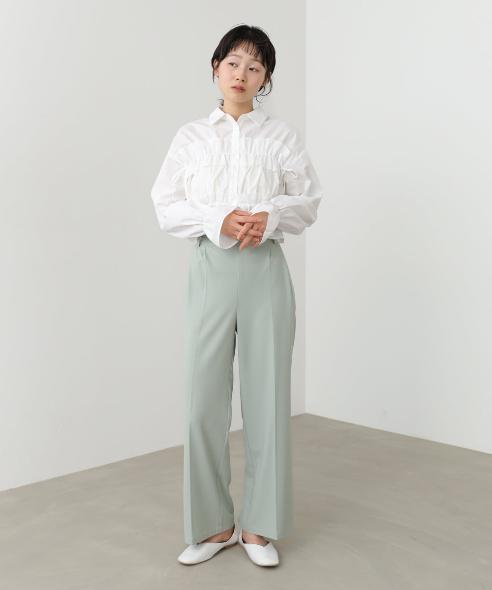 フレアパンツやワイドパンツと合わせると大人カジュアルなスタイリングになります。Iラインスカートやスラックスと合わせてオフィスカジュアルなコーディングも◎