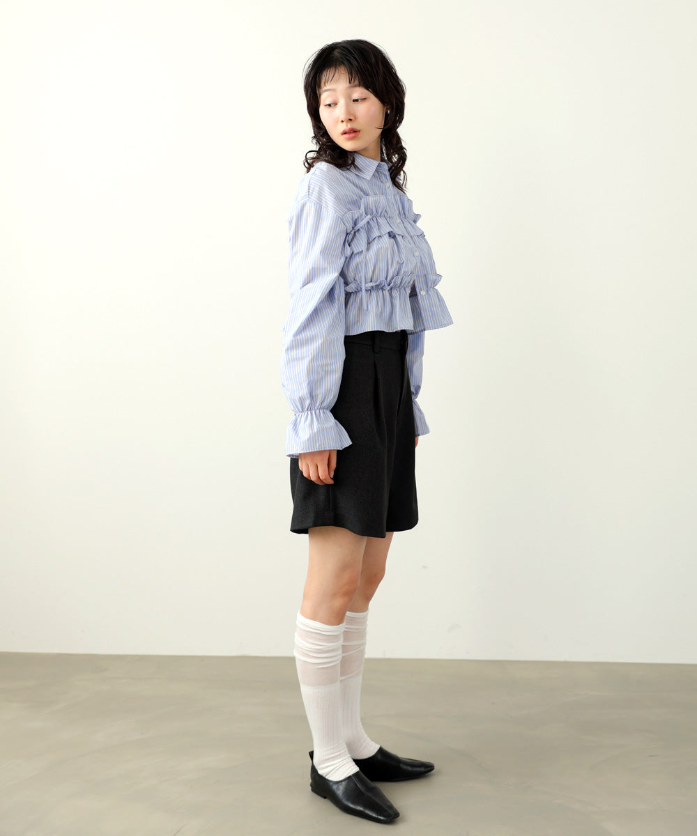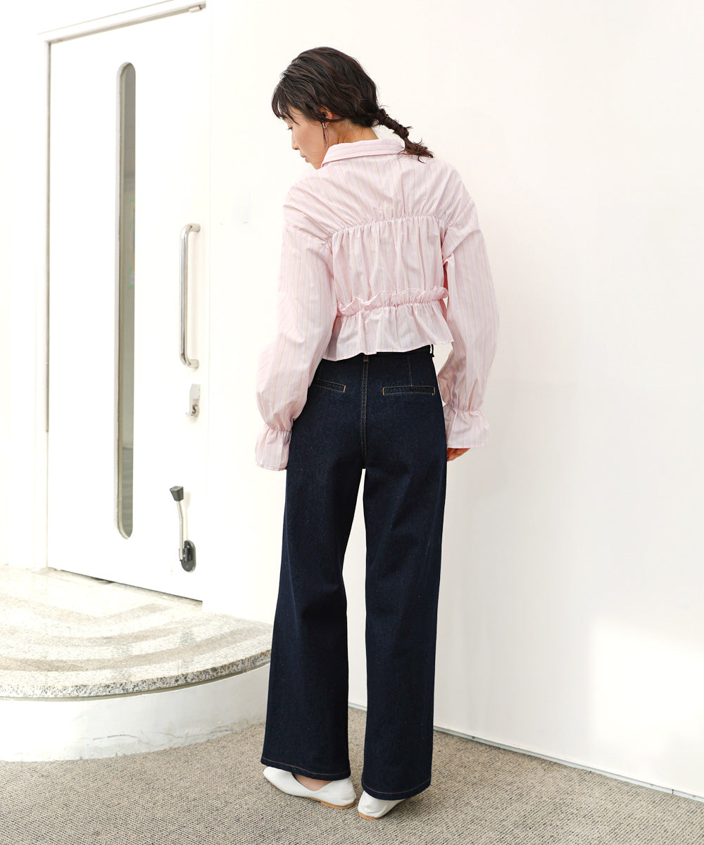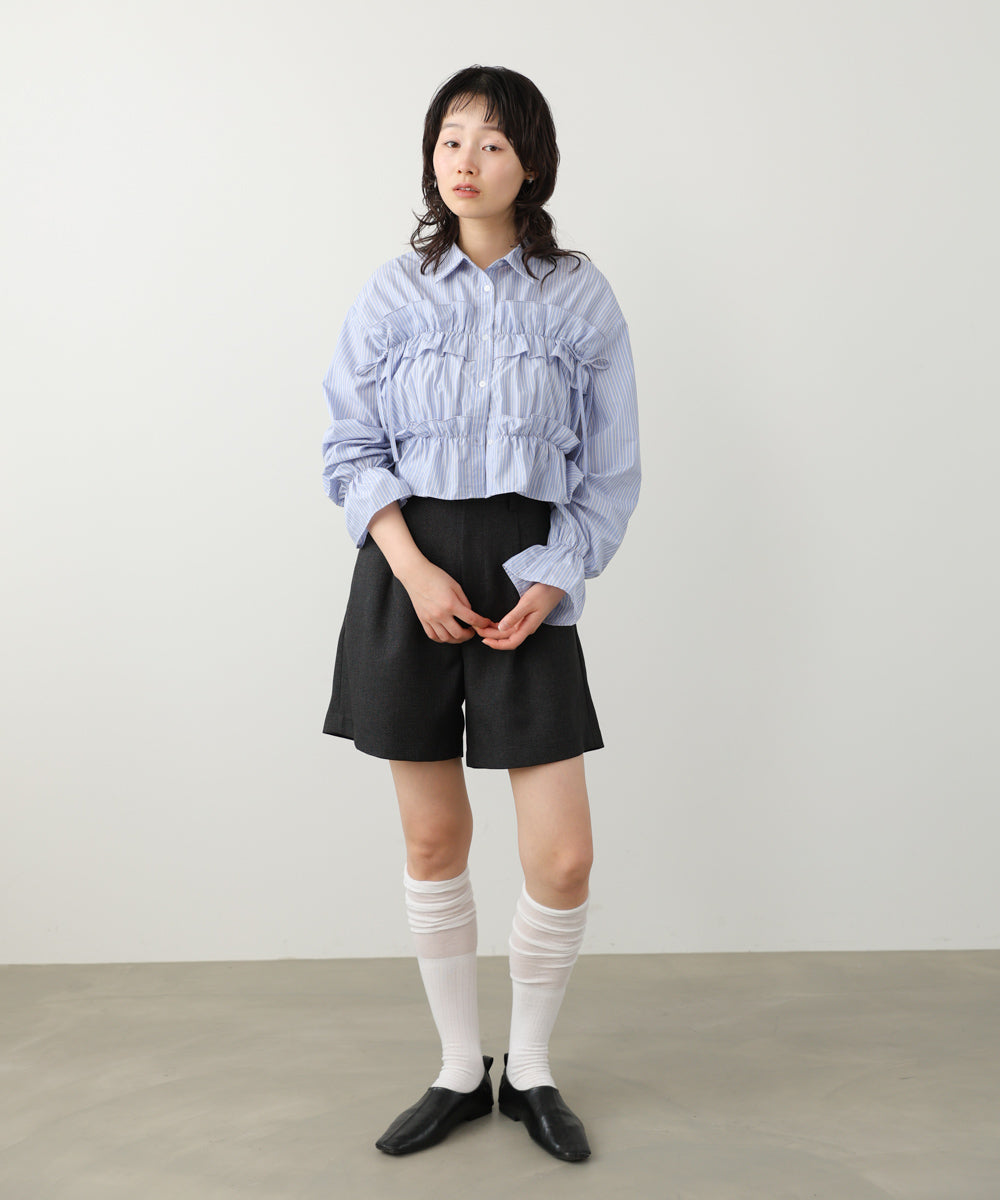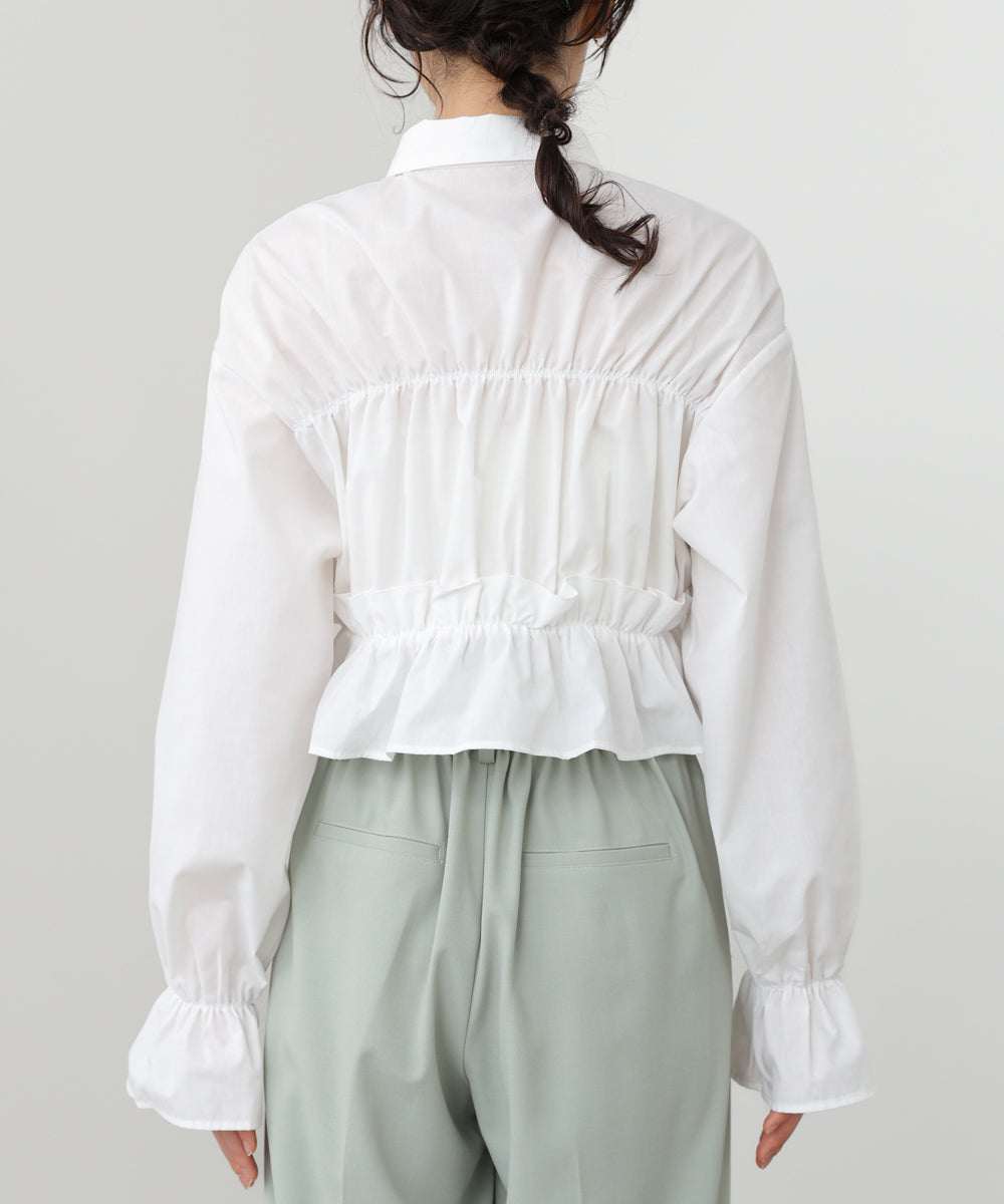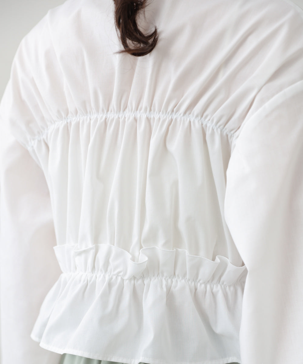 シャーリング部分はゴムが入っていて伸縮性がしっかりとあるブラウスになっています。