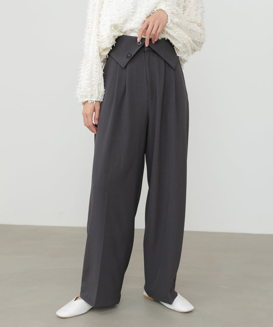 ウエストフラップ釦ワイドタックパンツ