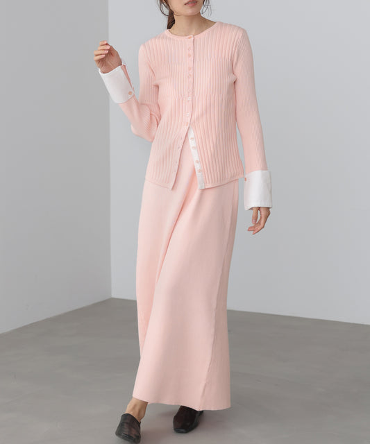 【2026SS】リブシャツ袖ニットカーディガン+リブニットワンピース