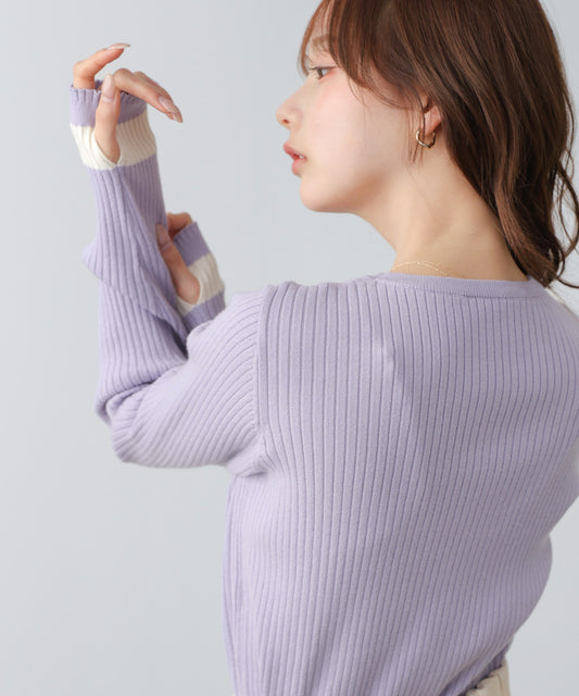 【2026SS】袖配色クルーネックリブニットトップス