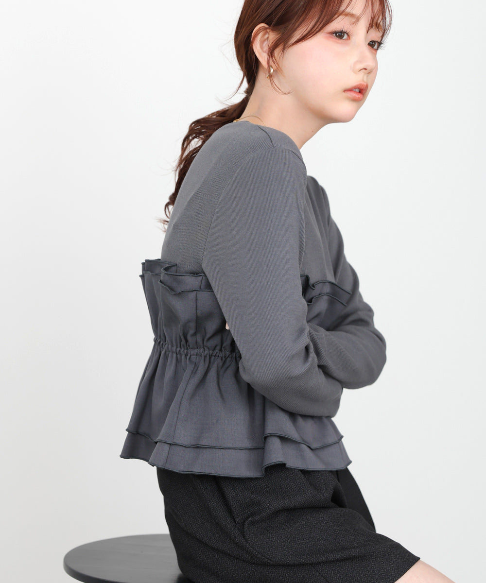 【2026SS】裾フリルヘンリーネックカットソー
