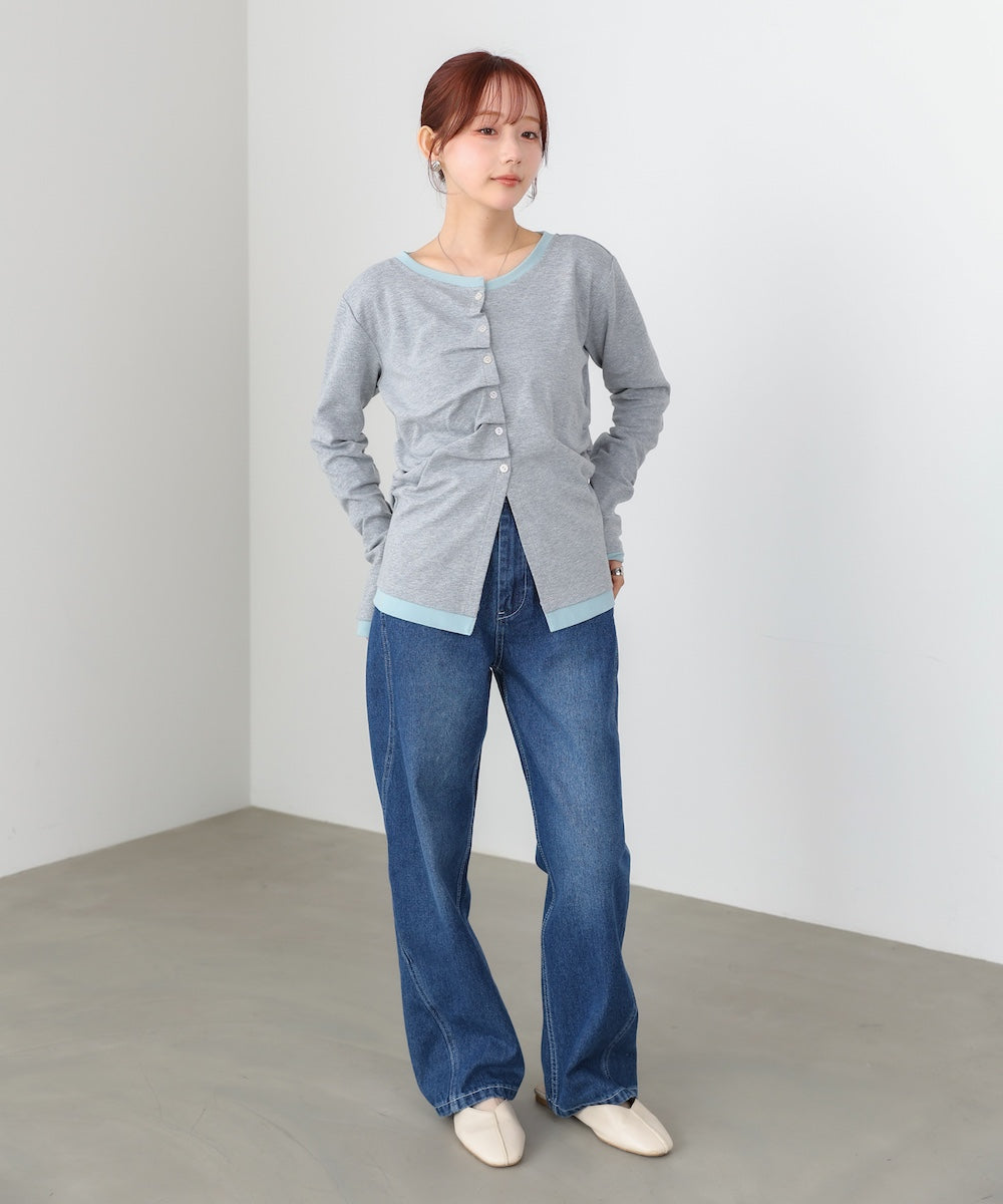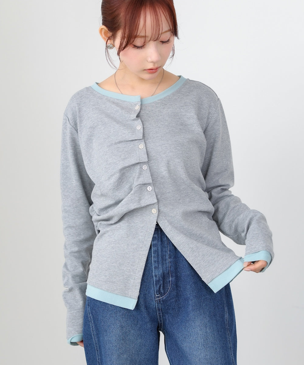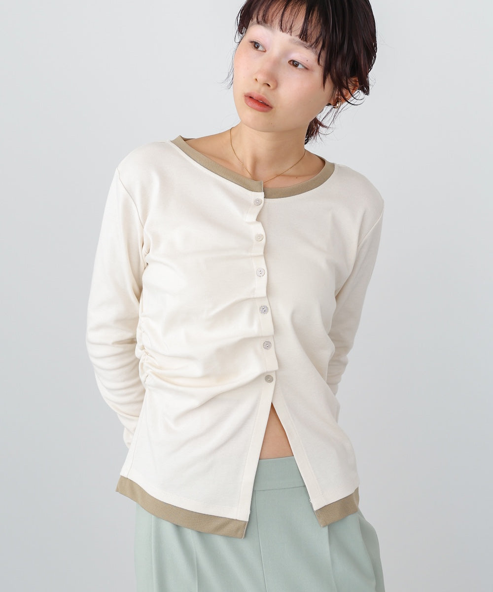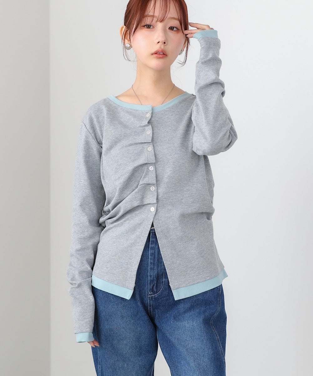 アシンメトリーに寄せたドレープデザインが目を惹く、配色レイヤードカーディガン。さりげなく覗く配色カラーが、シンプルな中にひとクセを添えるポイントです。立体感のあるシルエットで、羽織るだけでコーデがぐっとこなれた印象に。アイボリーは柔らかく上品に、グレーはニュアンス感たっぷりに、ブラックはモードに仕上がります。