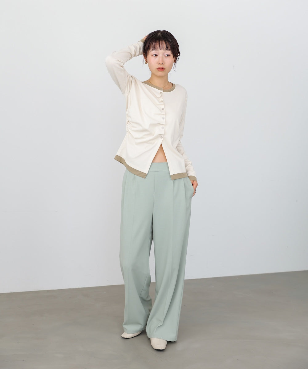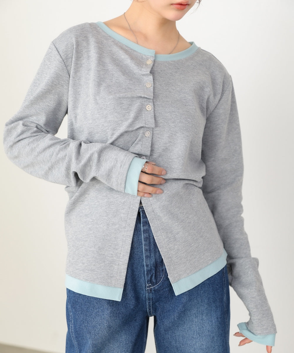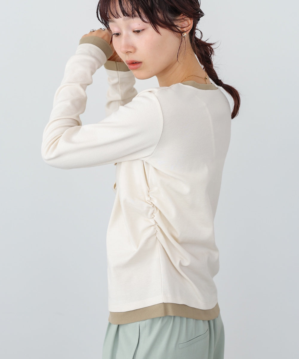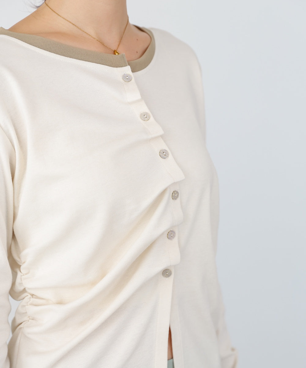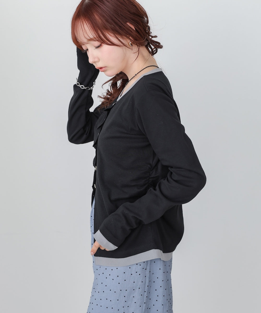 アシンメトリーに寄せたドレープデザインが目を惹く、配色レイヤードカーディガン。さりげなく覗く配色カラーが、シンプルな中にひとクセを添えるポイントです。立体感のあるシルエットで、羽織るだけでコーデがぐっとこなれた印象に。アイボリーは柔らかく上品に、グレーはニュアンス感たっぷりに、ブラックはモードに仕上がります。