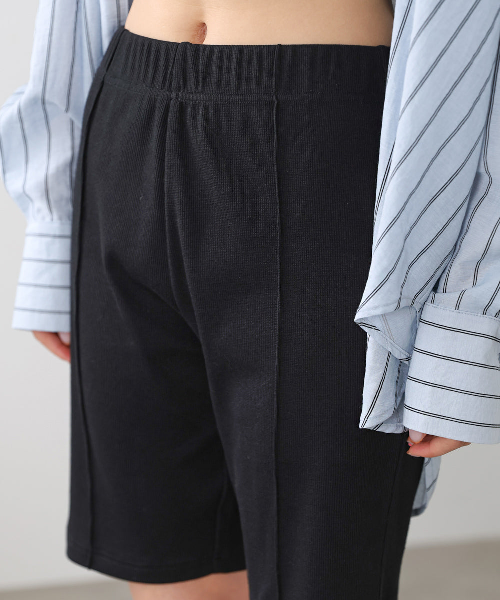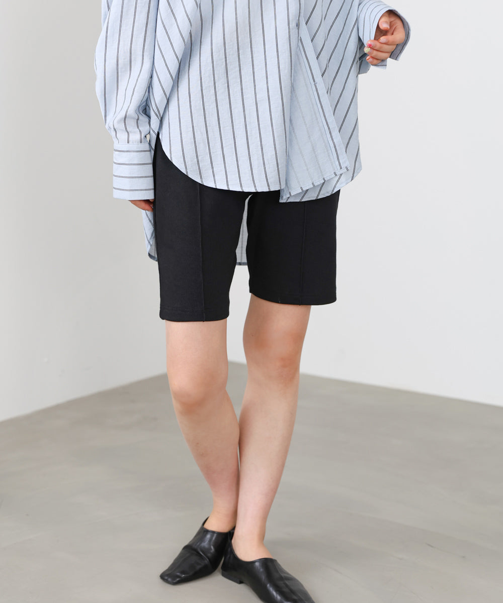 すっきりとしたシルエットでトレンド感を演出するバイカーパンツ。程よいフィット感が脚のラインをきれいに見せつつ、スタイリングに抜け感とこなれ感をプラスしてくれる一着です。シンプルながらも、取り入れるだけで今っぽいバランスが完成します。