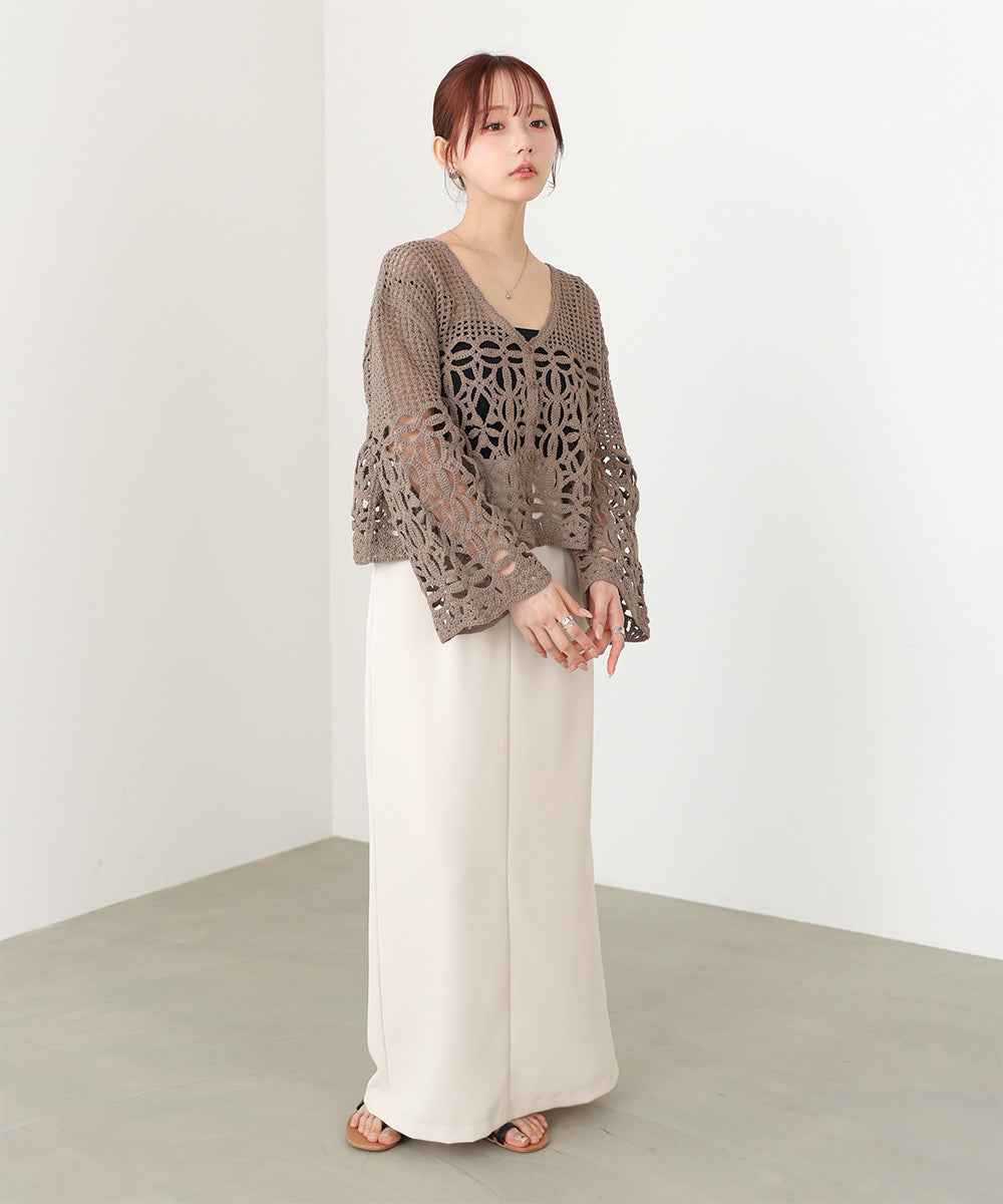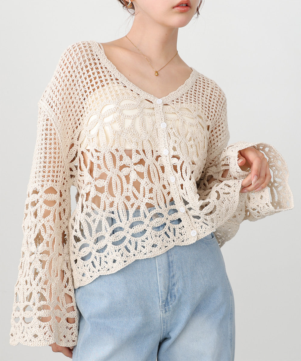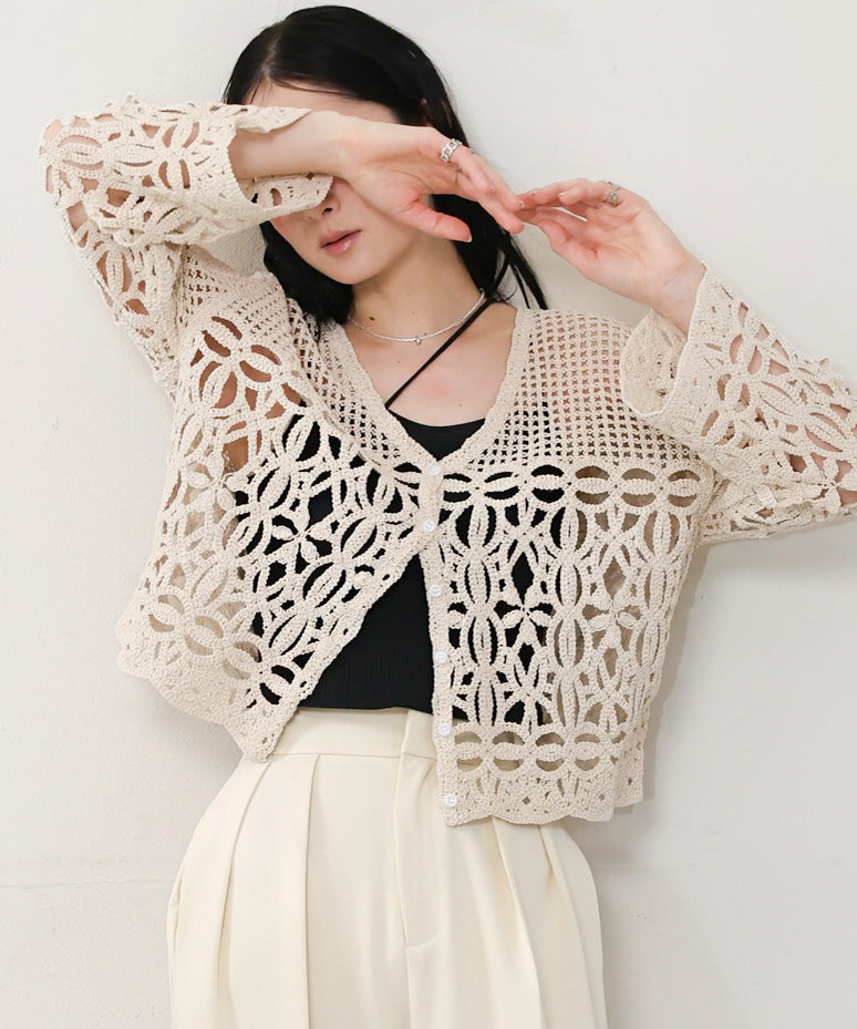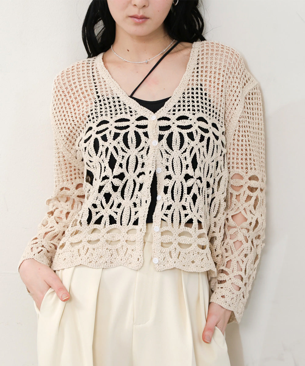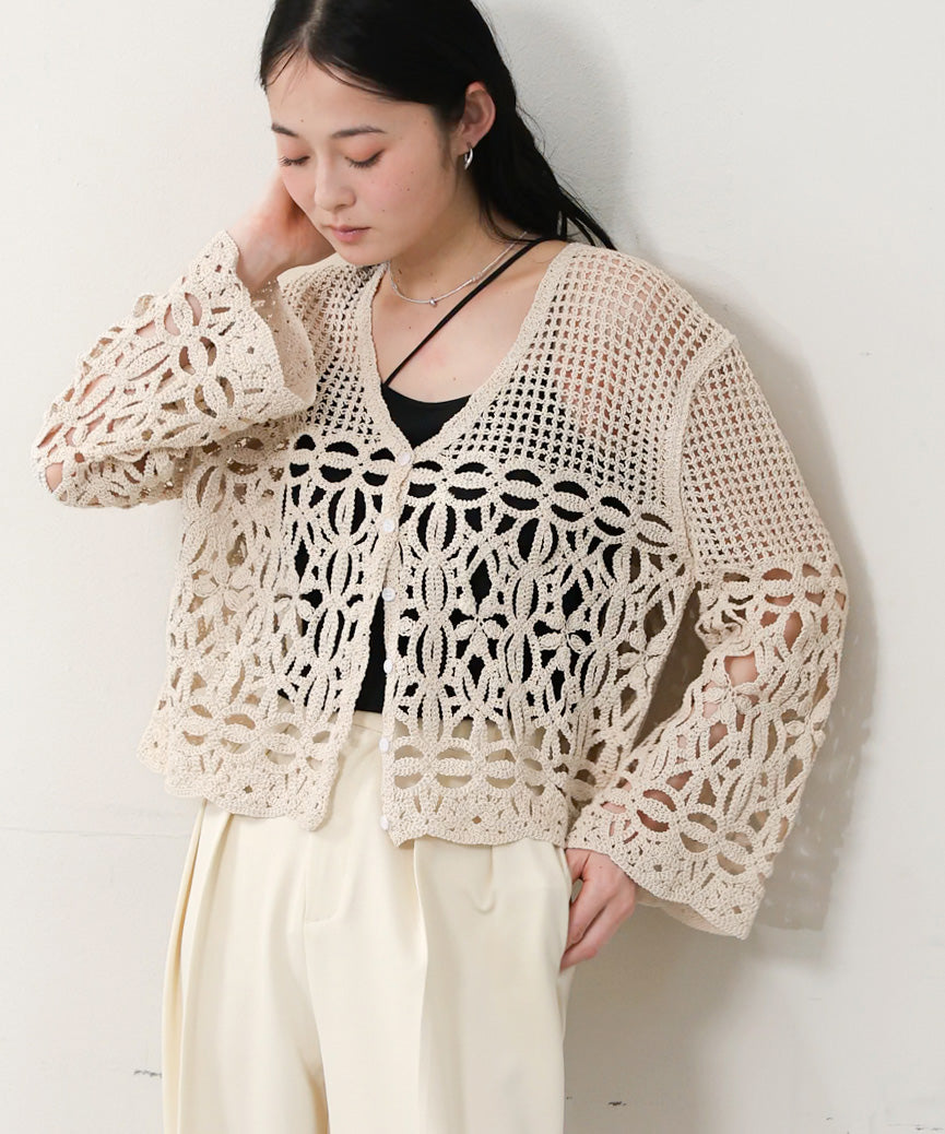 透かし編みニットカーディガン