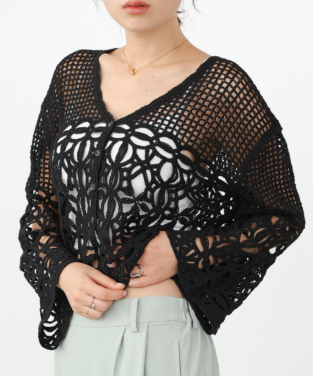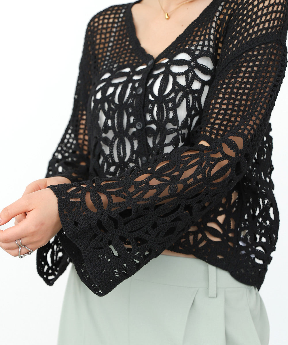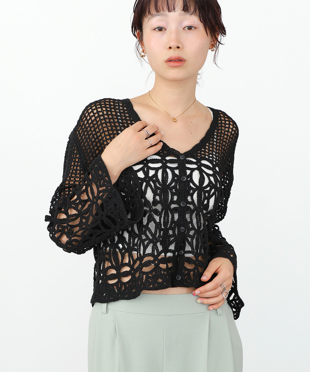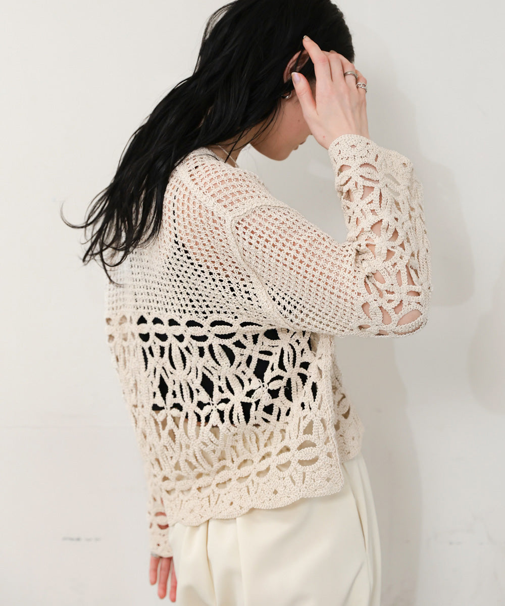 さらっとした柔らかい肌触りでストレスなくお召し頂けます。繊細なクロシェ編みの為、引っ掛けには充分ご注意ください。