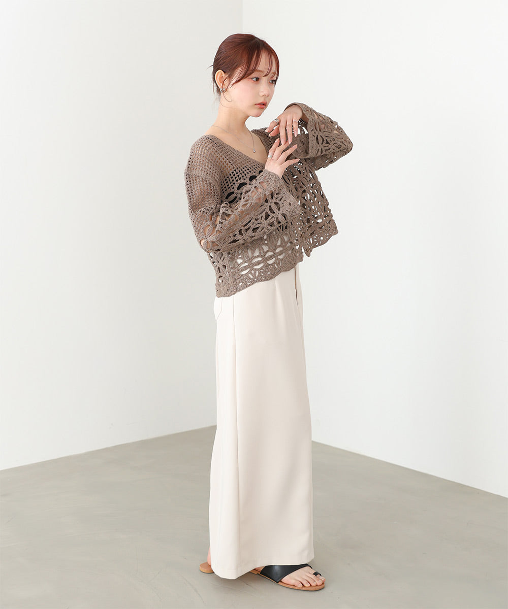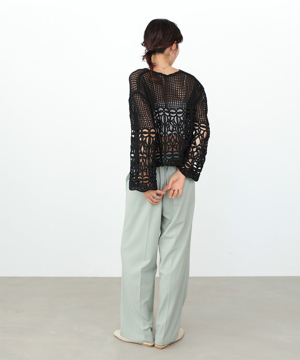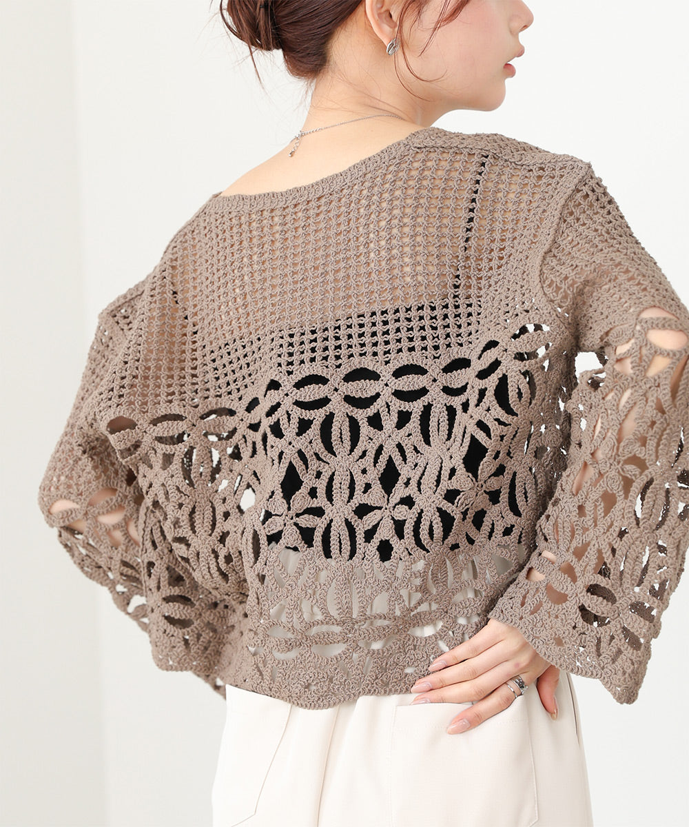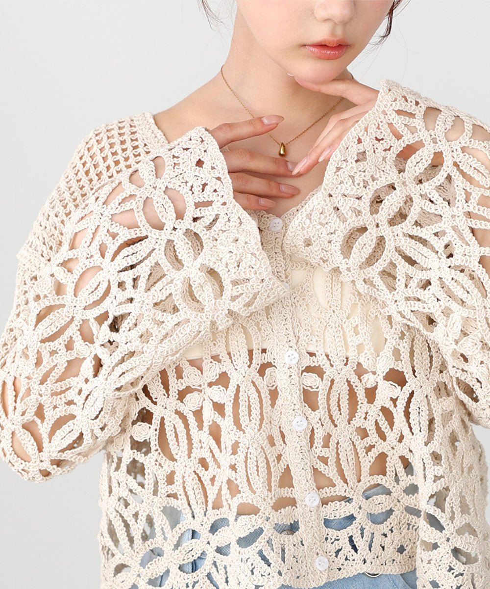 さらっとした柔らかい肌触りでストレスなくお召し頂けます。繊細なクロシェ編みの為、引っ掛けには充分ご注意ください。