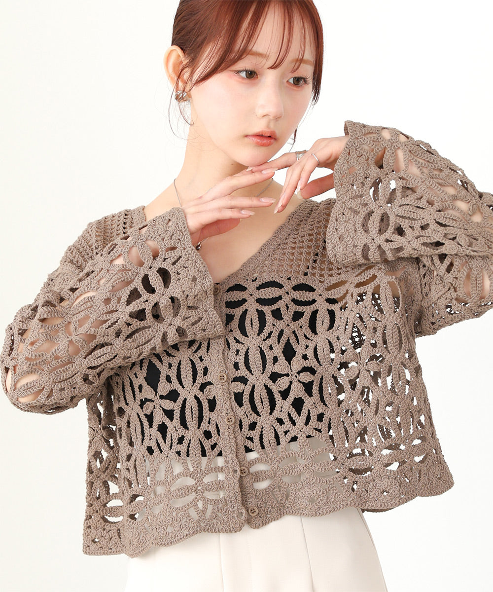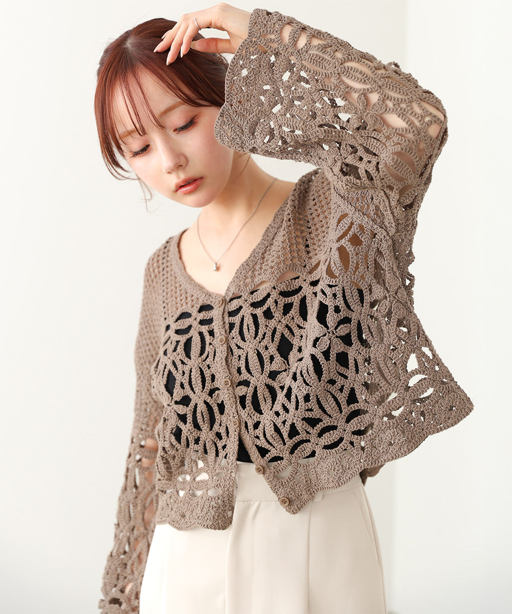 クロシェミックス編みカーディガン