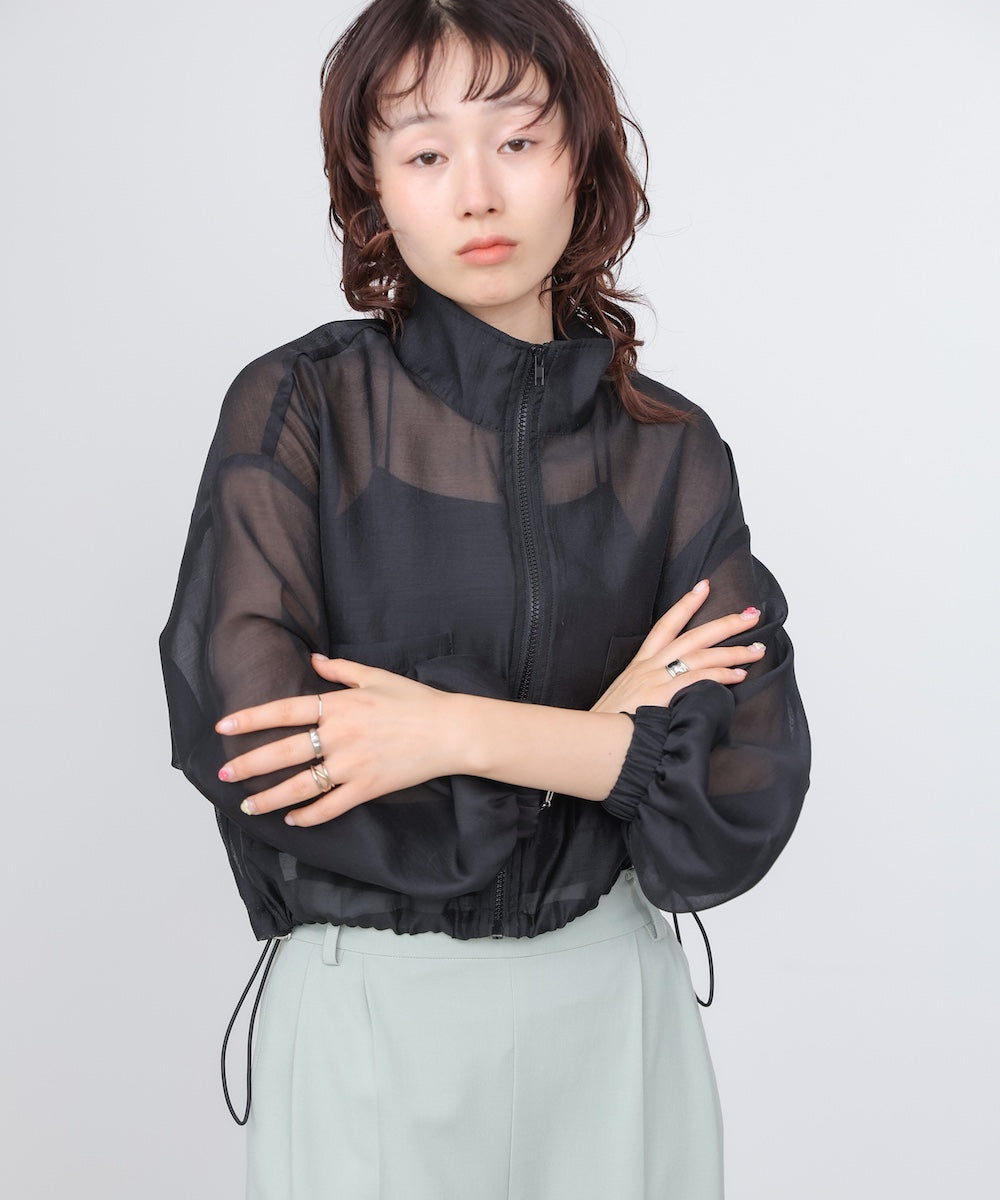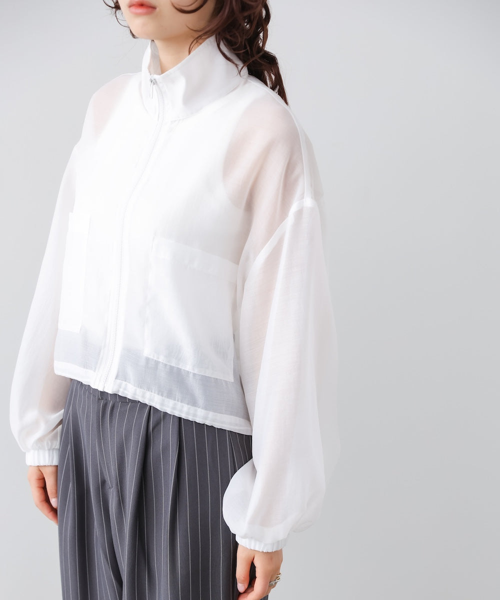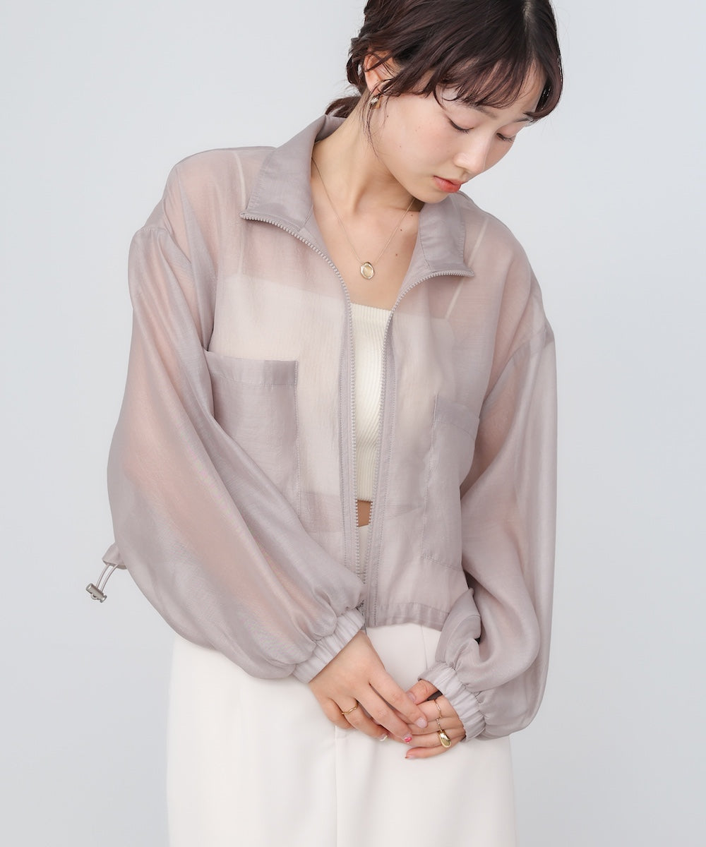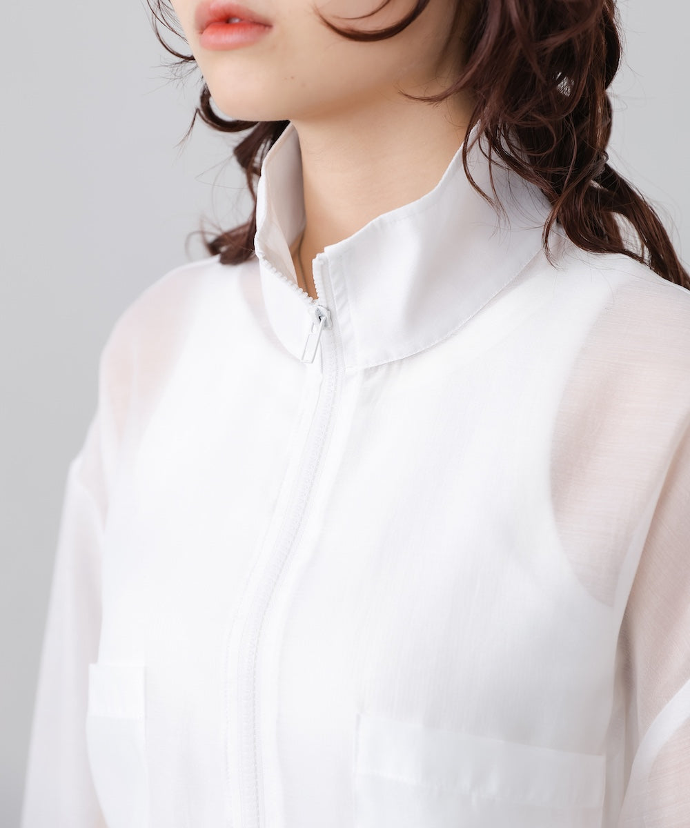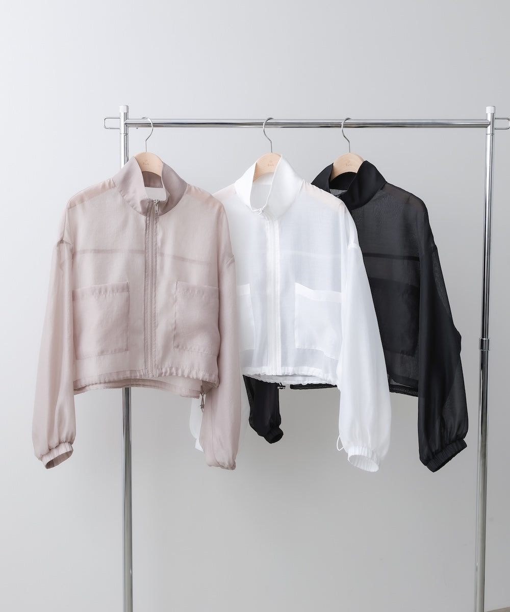 軽やかな透け感が魅力の、スタンド襟シアーブルゾン。ほんのりシアーな素材が抜け感を演出し、羽織るだけで旬なスタイルに仕上がる1枚です。コンパクトな丈感でバランスが取りやすく、ワンピースにもパンツにも好相性。アイボリーは柔らかく女性らしく、グレージュはニュアンス感たっぷりに、ブラックはシックで大人っぽい印象に。